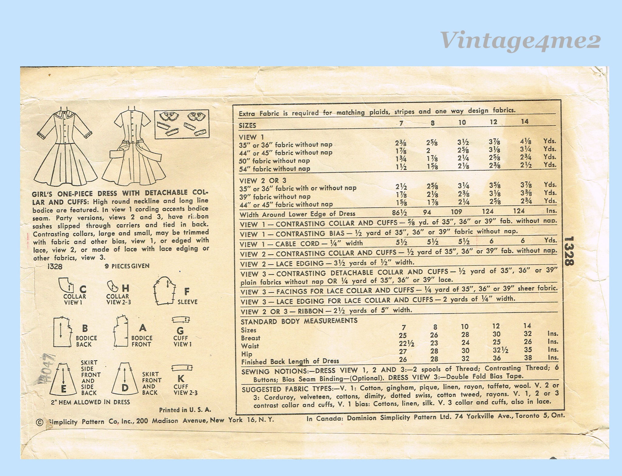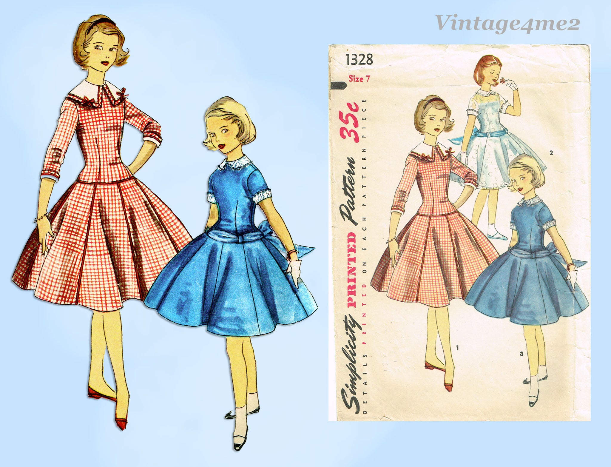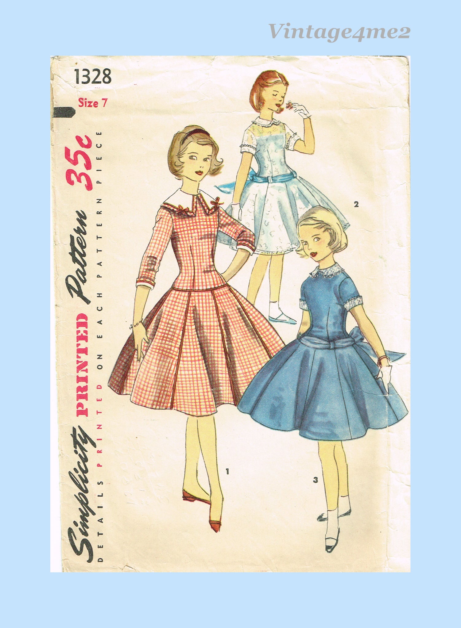 1950s Simplicity Sewing Pattern 1328 Little Girls Day or Party Dress Sz 7