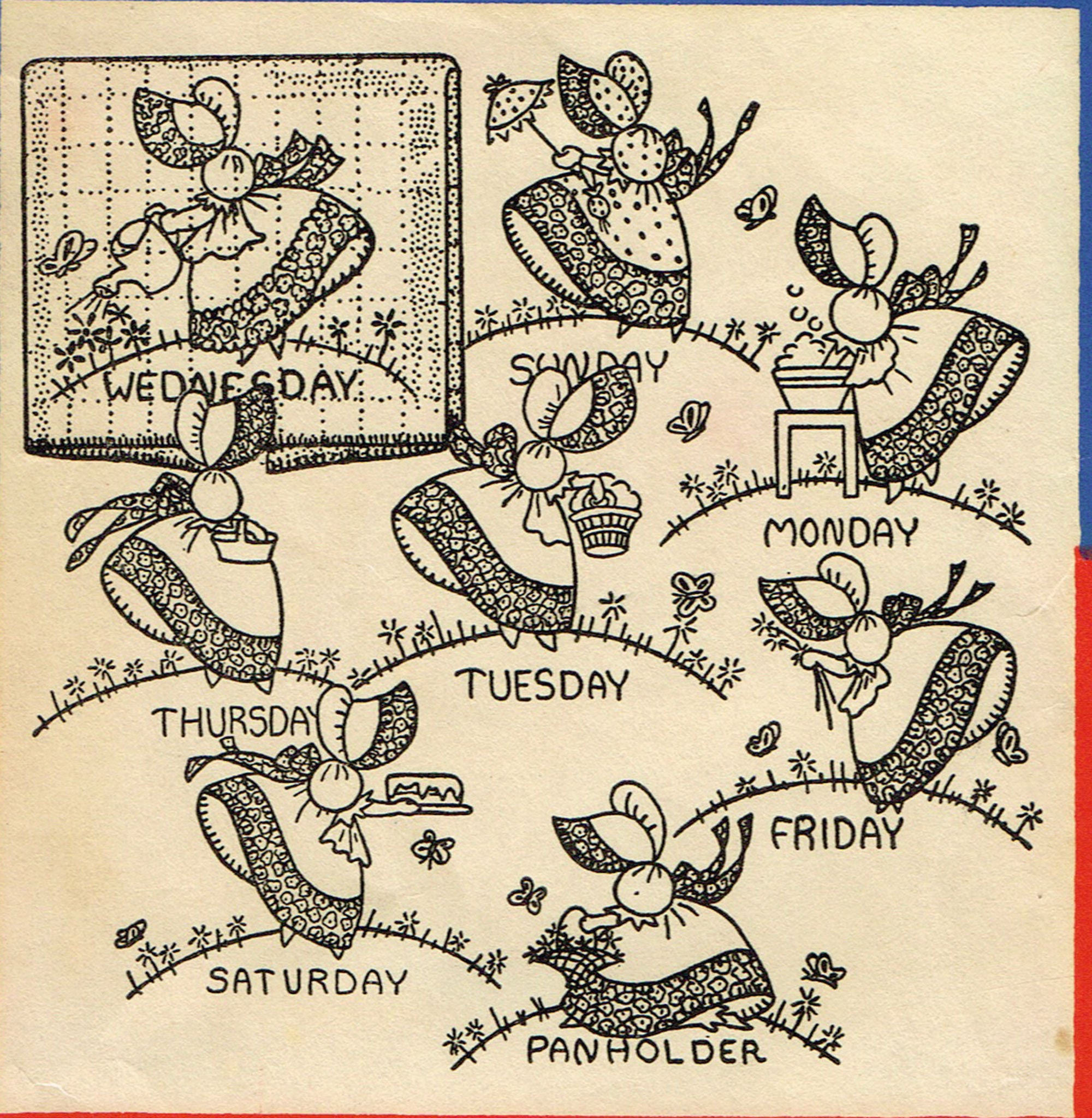 Wonderful Sun Bonnet Sue Day of the Week Motifs