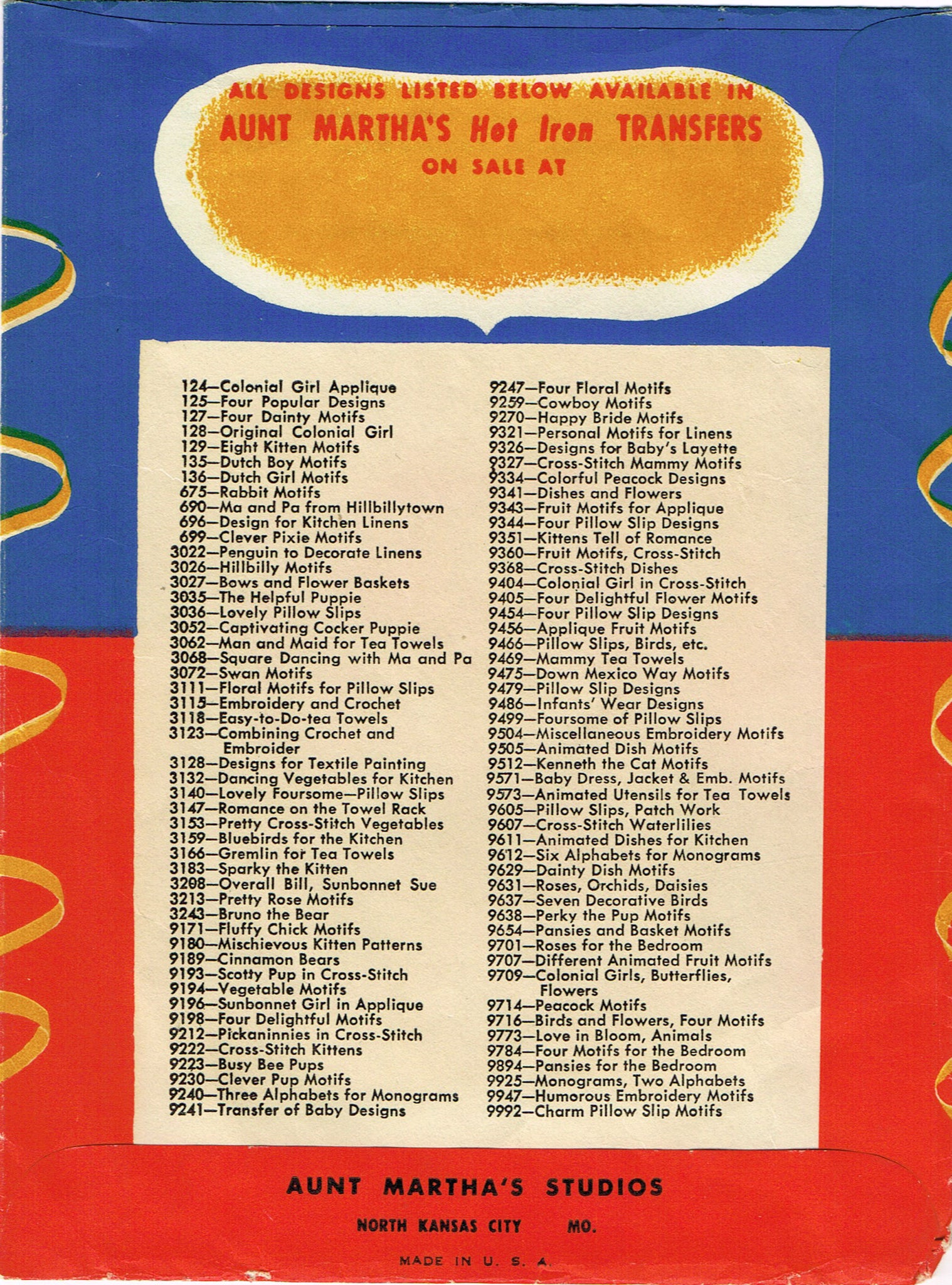 Vintage 1950s Aunt Martha's Hot Iron Transfer 3216