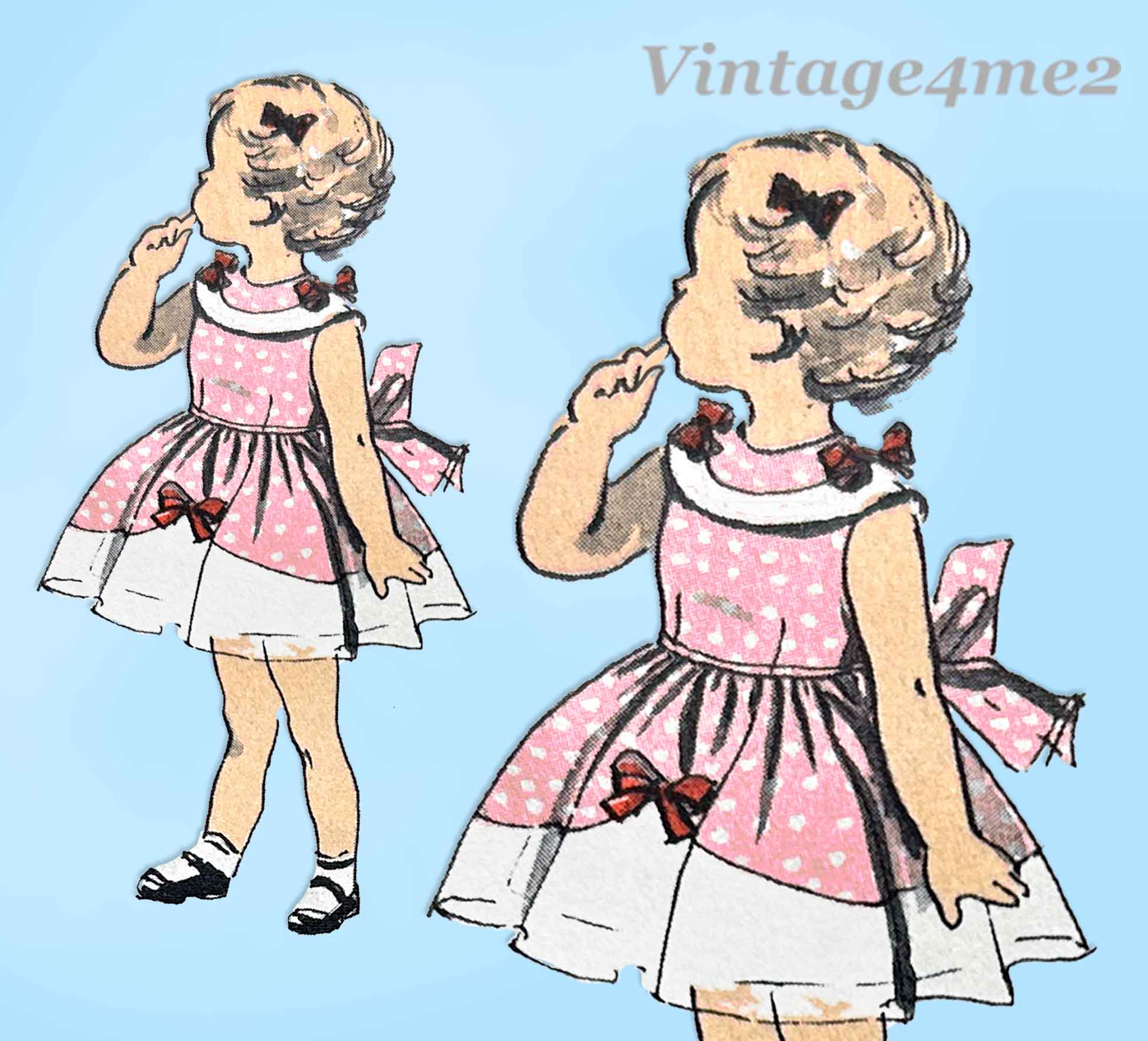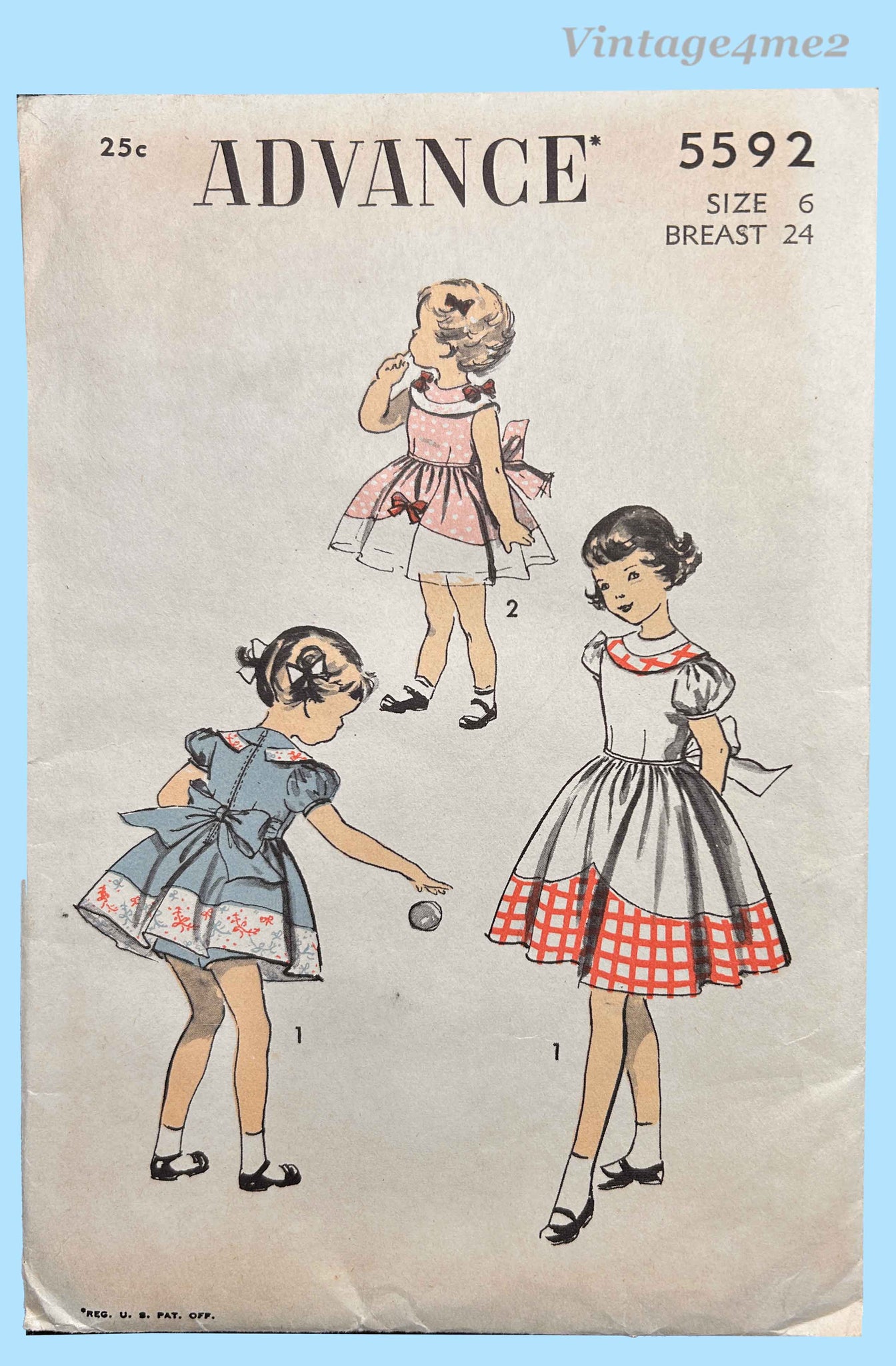 1950s Vintage Advance Sewing Pattern 5592 Uncut Toddler Girls Party Dress Sz6