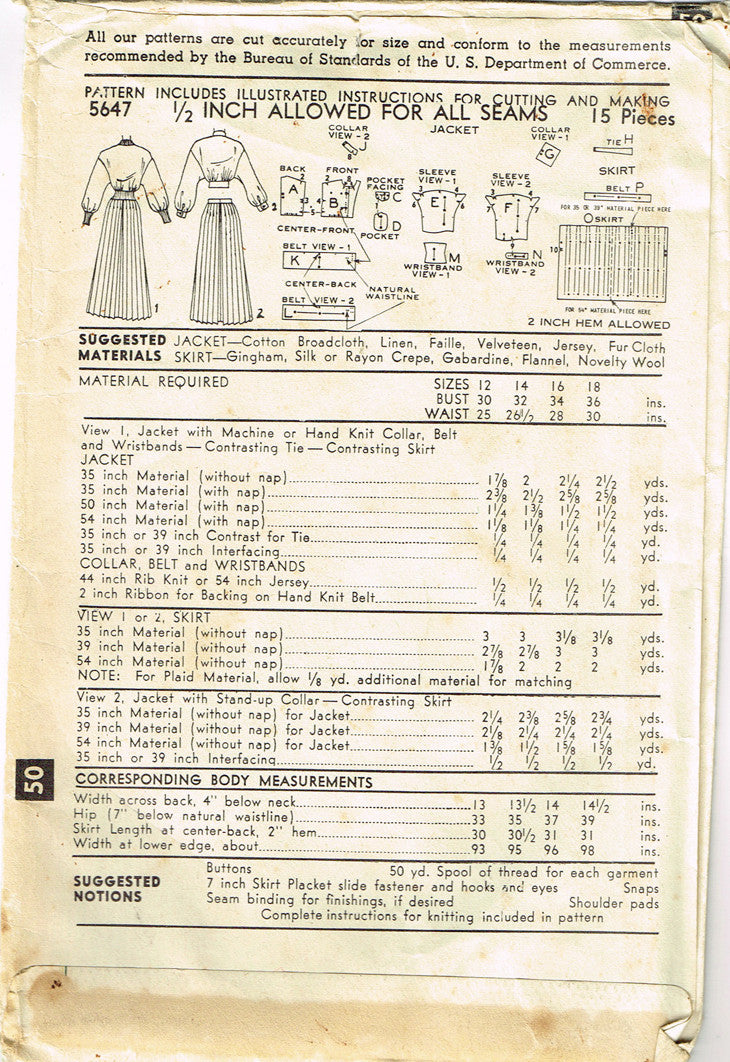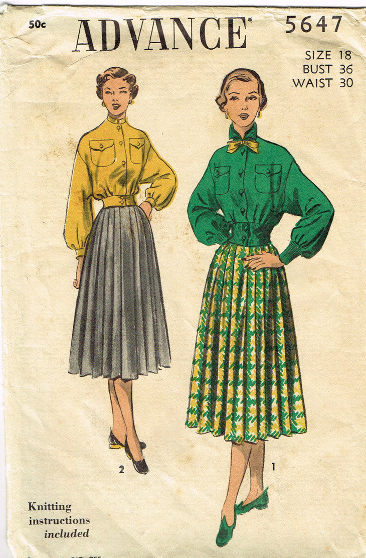1950s Vintage Advance Sewing Pattern 5647 Uncut Misses Suit w Battle Jacket 36B