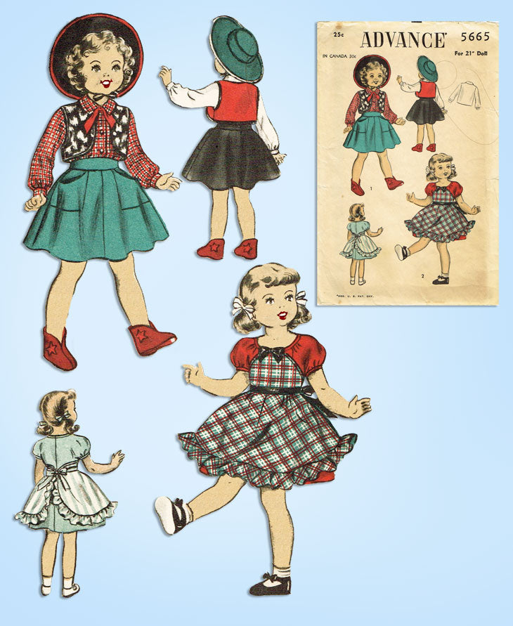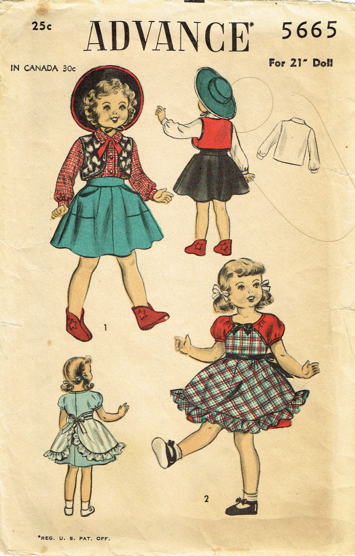1950s Vintage Advance Sewing Pattern 5665 21 Inch Little Girl Doll Clothes Set
