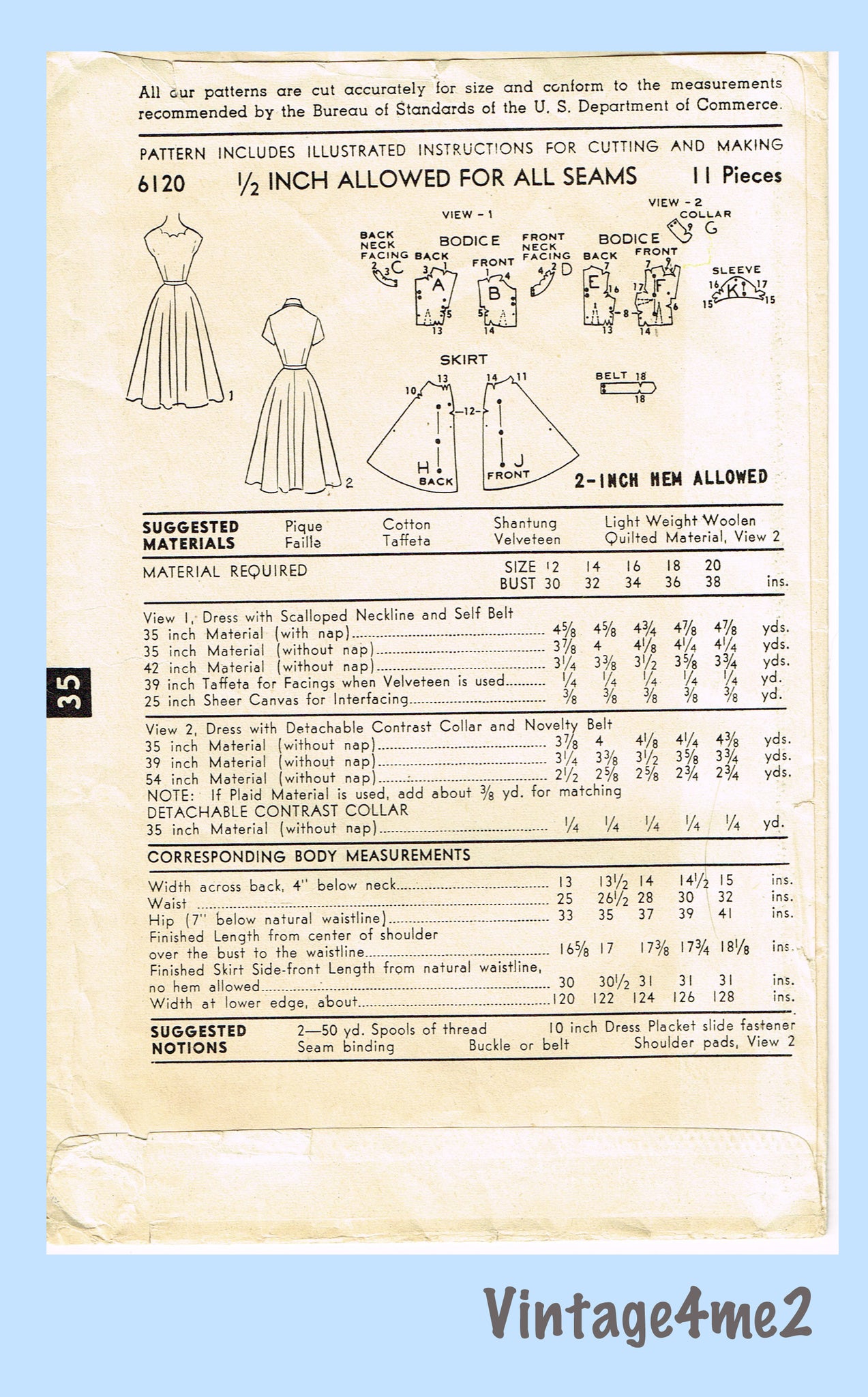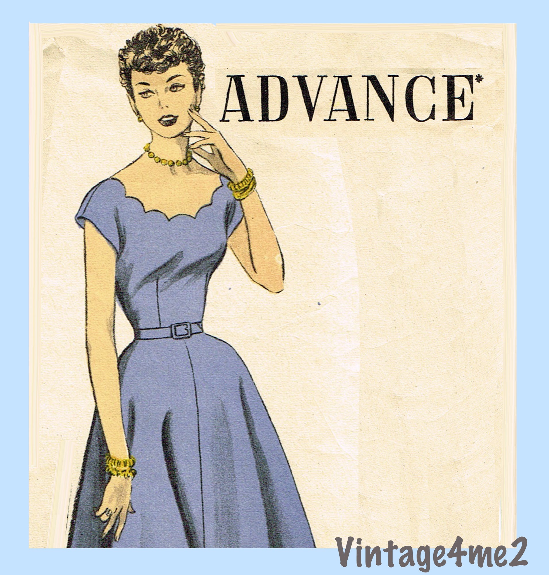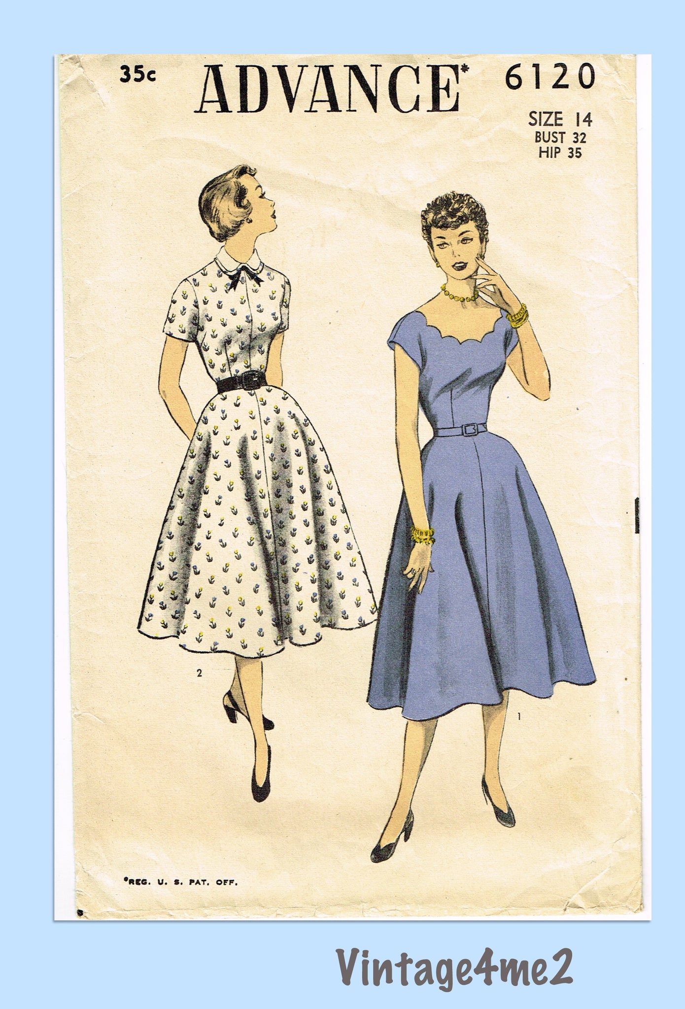 1950s Vintage Advance Sewing Pattern 6120 Misses Scalloped Cocktail Dress 32 B