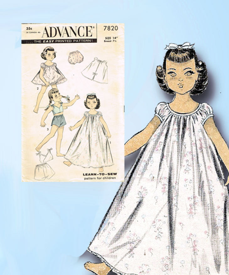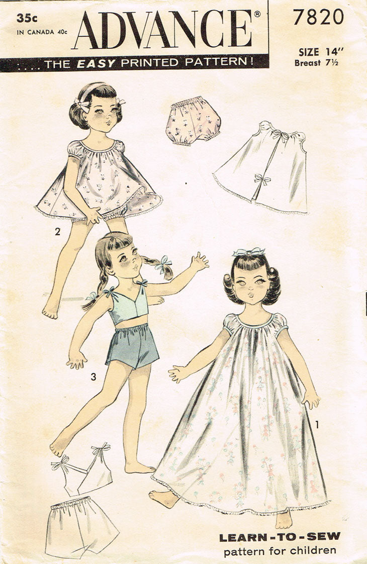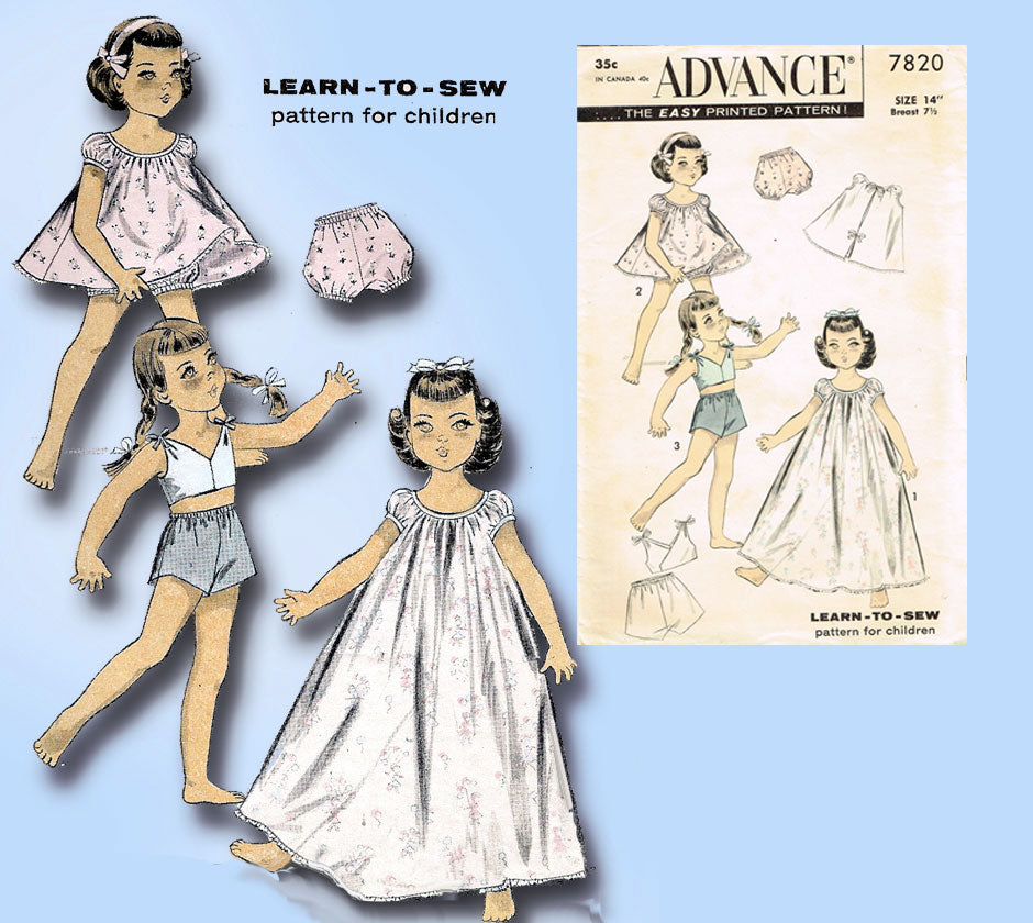 1950s Vintage Advance Sewing Pattern 7820 Learn to Sew 14 Inch Doll Clothes Set