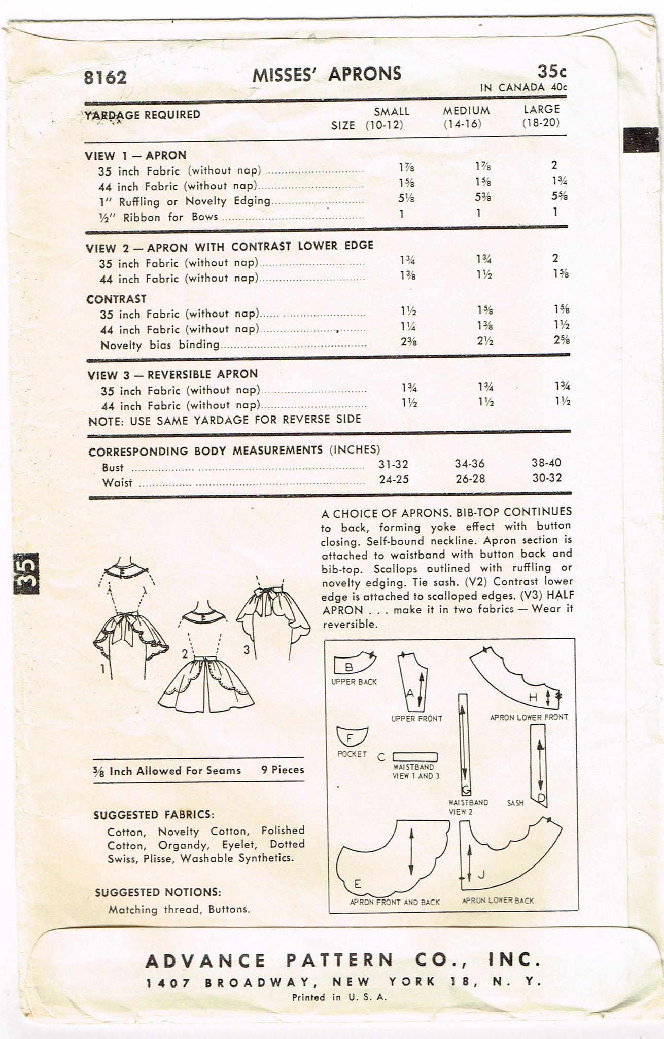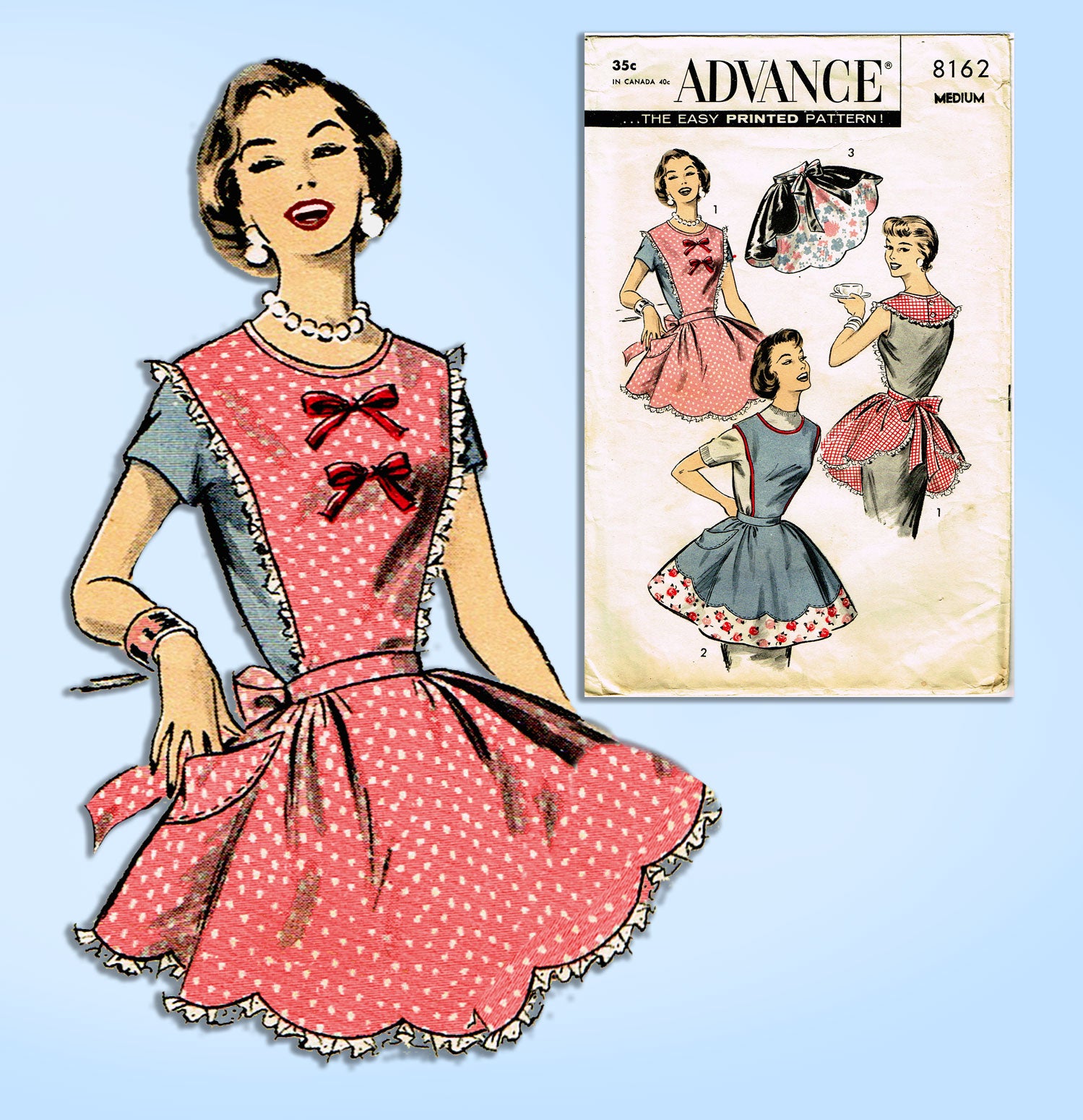 1950s Vintage Advance Sewing Pattern 8162 Misses Scalloped Apron Size Medium