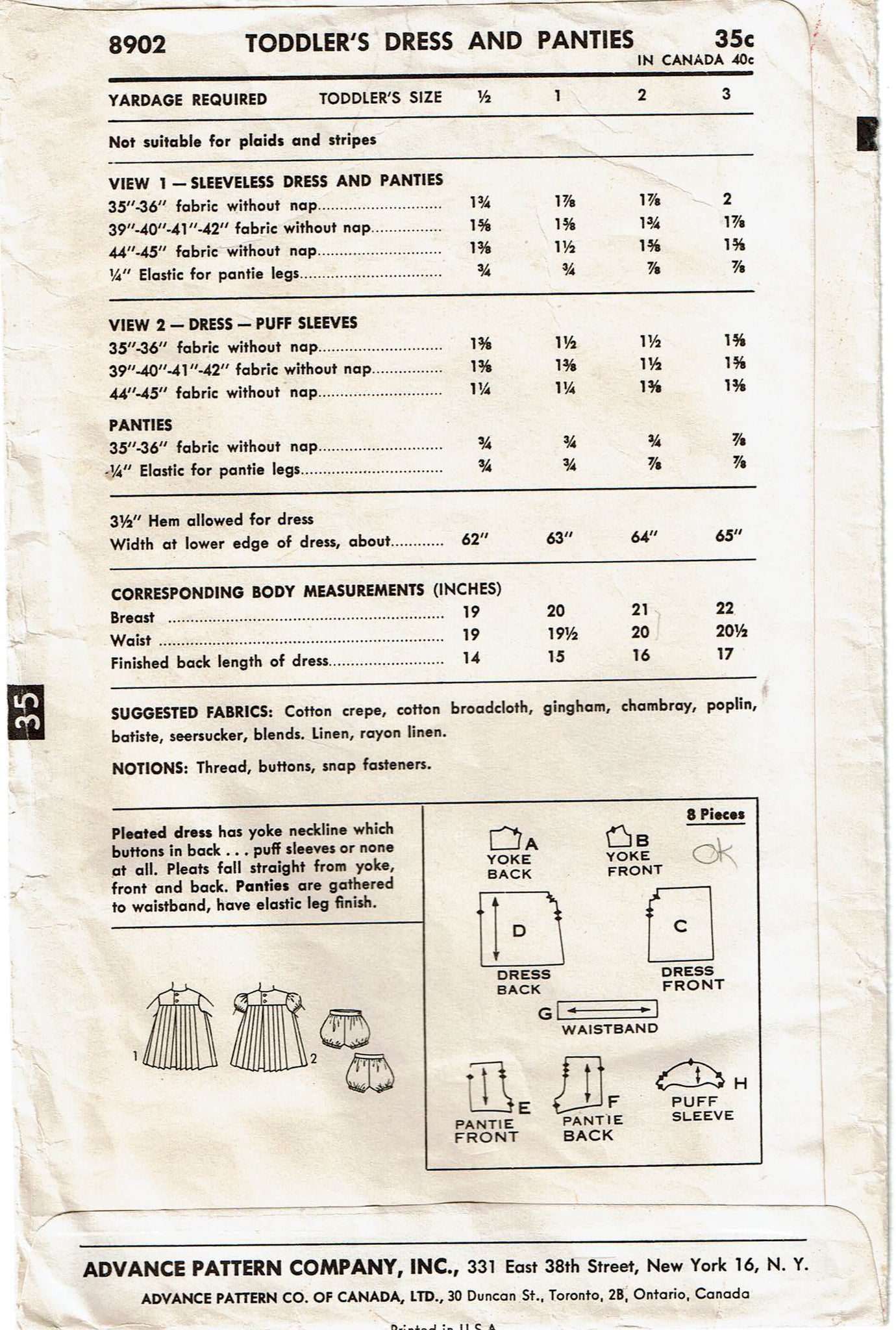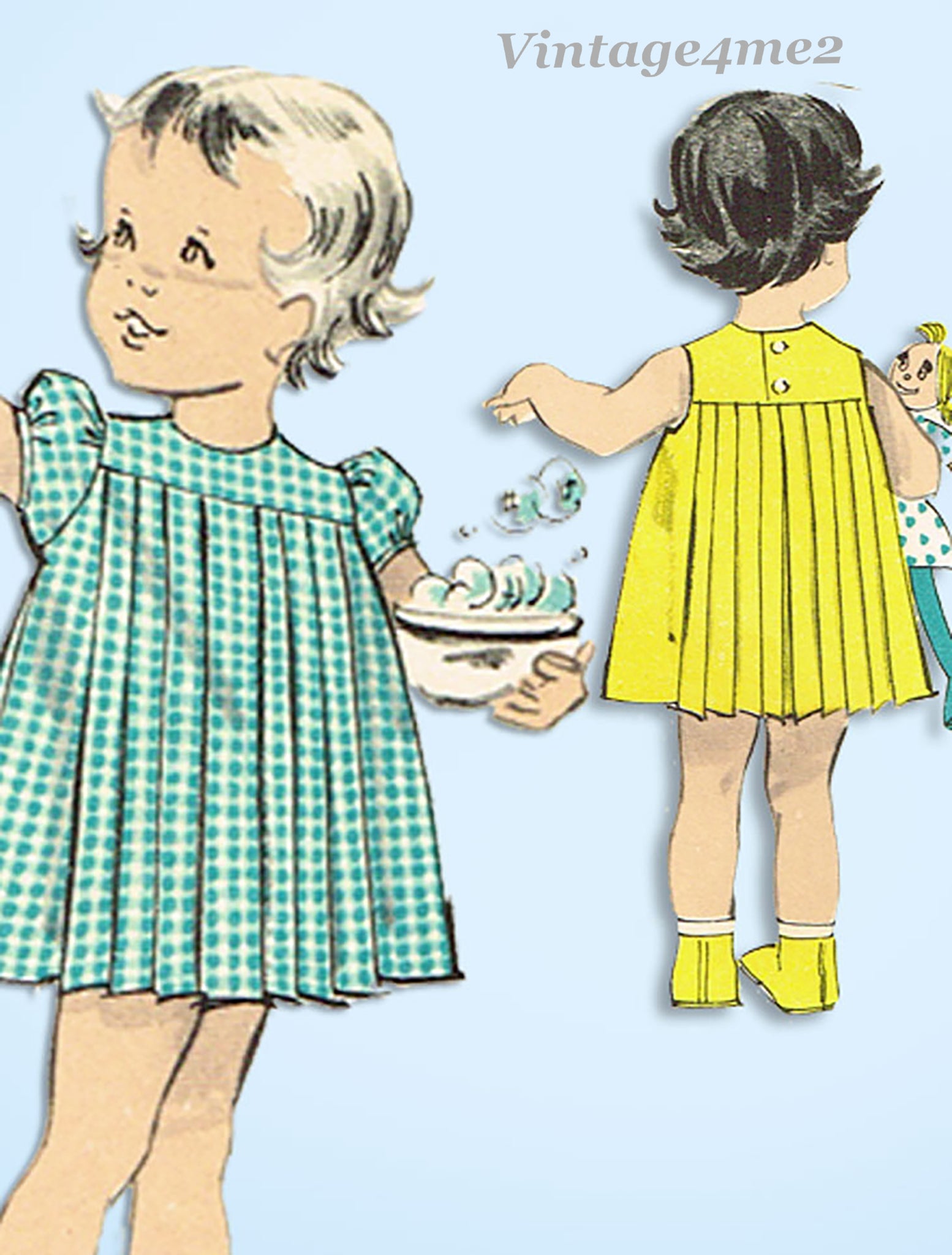 1950s Vintage Advance Sewing Pattern 8902 Cute Baby Girls Pleated Dress Size 2