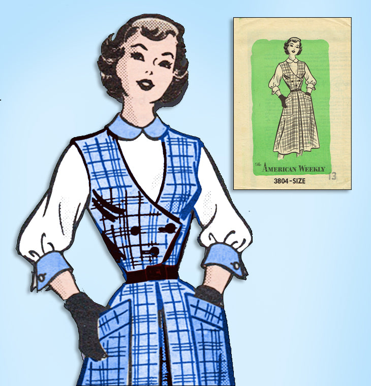 1950s Vintage American Weekly Sewing Pattern 3804 Uncut Misses Jumper Dress 31 B