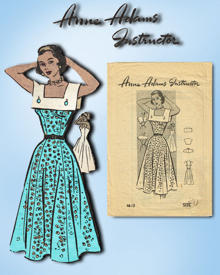 1950s Vintage Anne Adams Sewing Pattern 4613 Misses Sun Dress and Collars Sz 38B