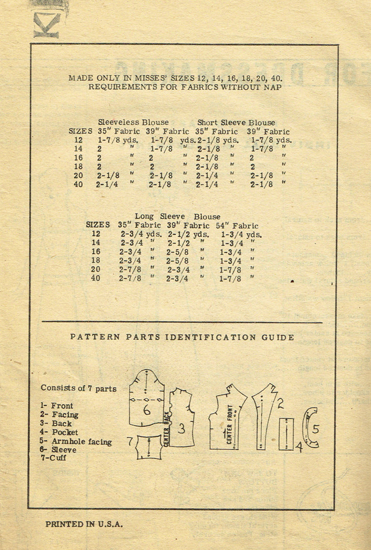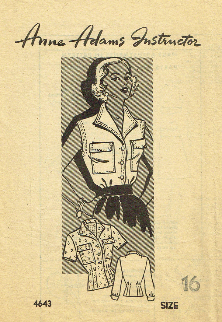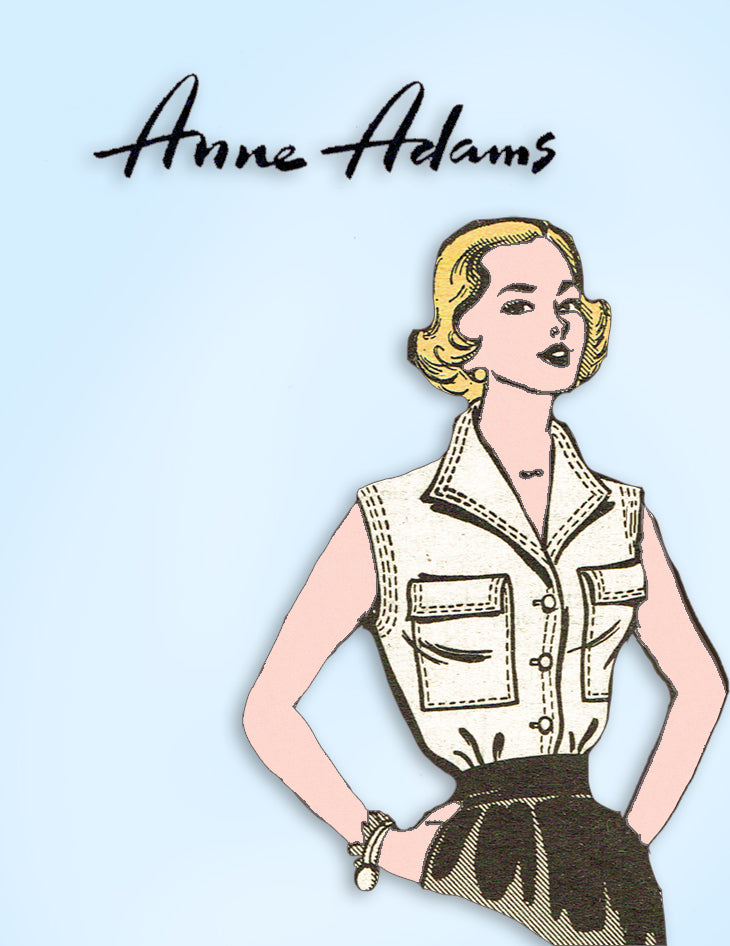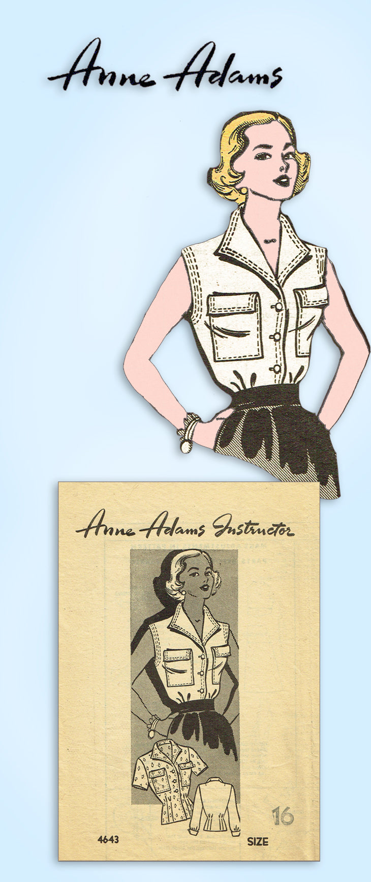 1950s Vintage Anne Adams Sewing Pattern 4643 Misses Sleeveless Blouse Sz 34 Bust