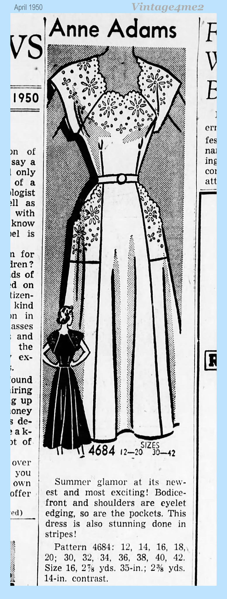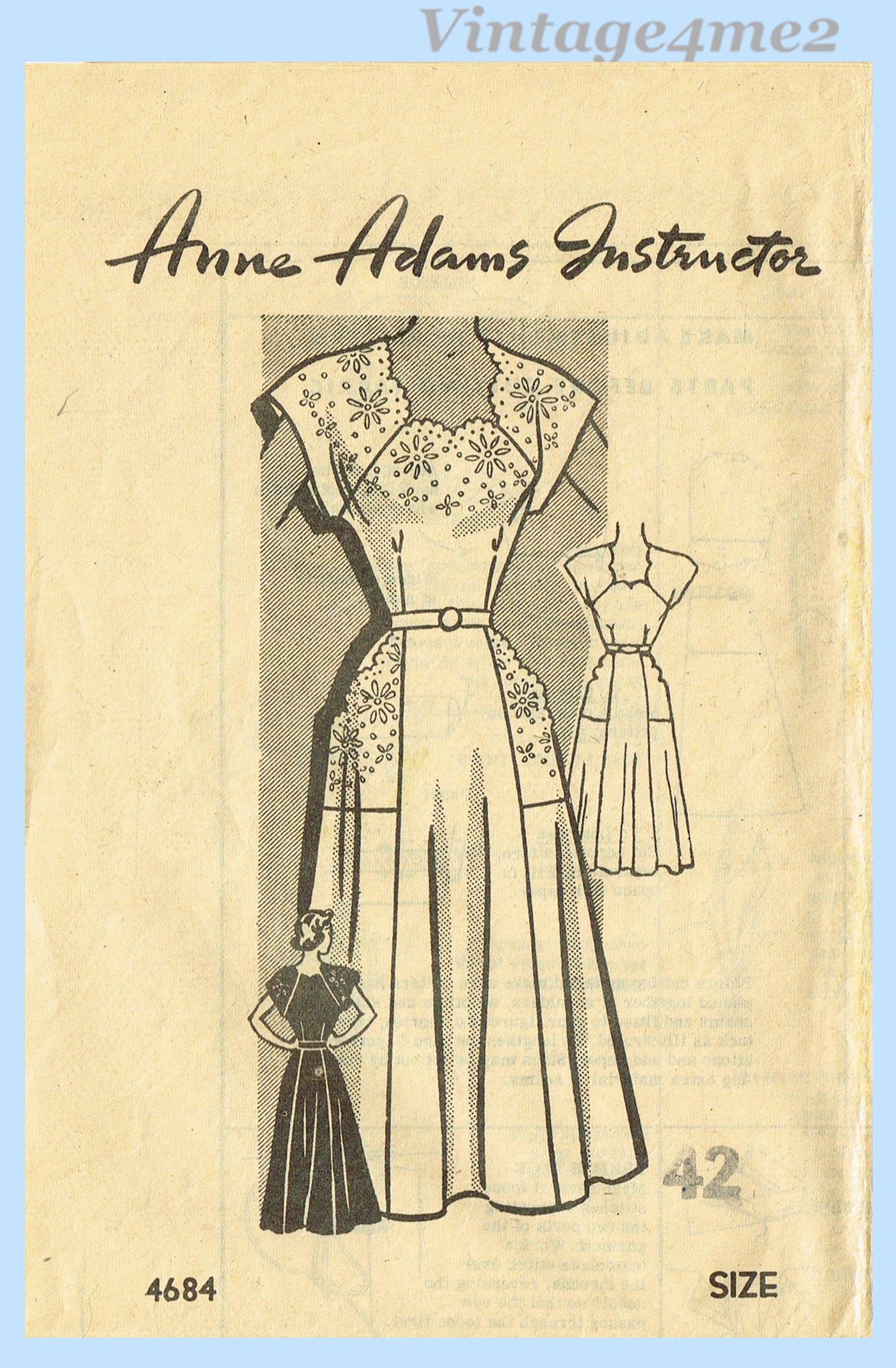 1950s Vintage Anne Adams Sewing Pattern 4684 Plus Size Ladies Dress Sz 42 B
