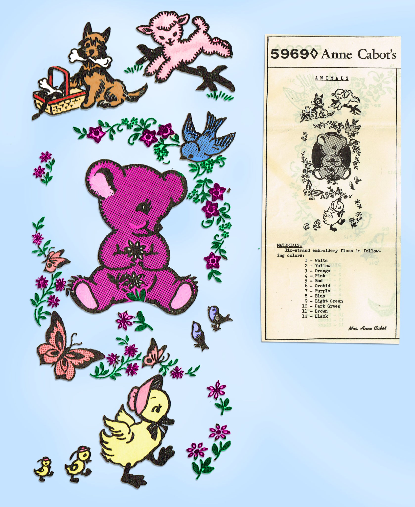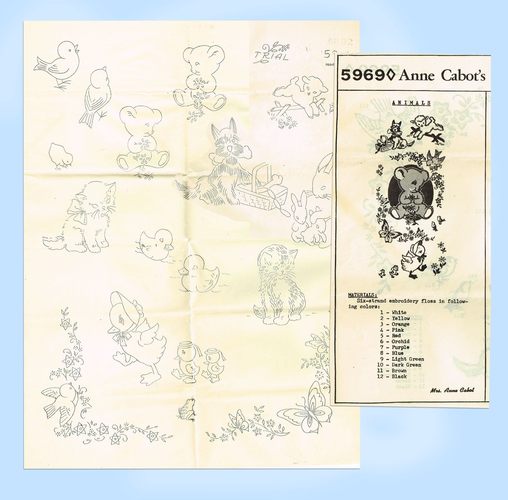 1950s Vintage Anne Cabot Embroidery Transfer 5969 Uncut Baby Animal Nursery Motifs