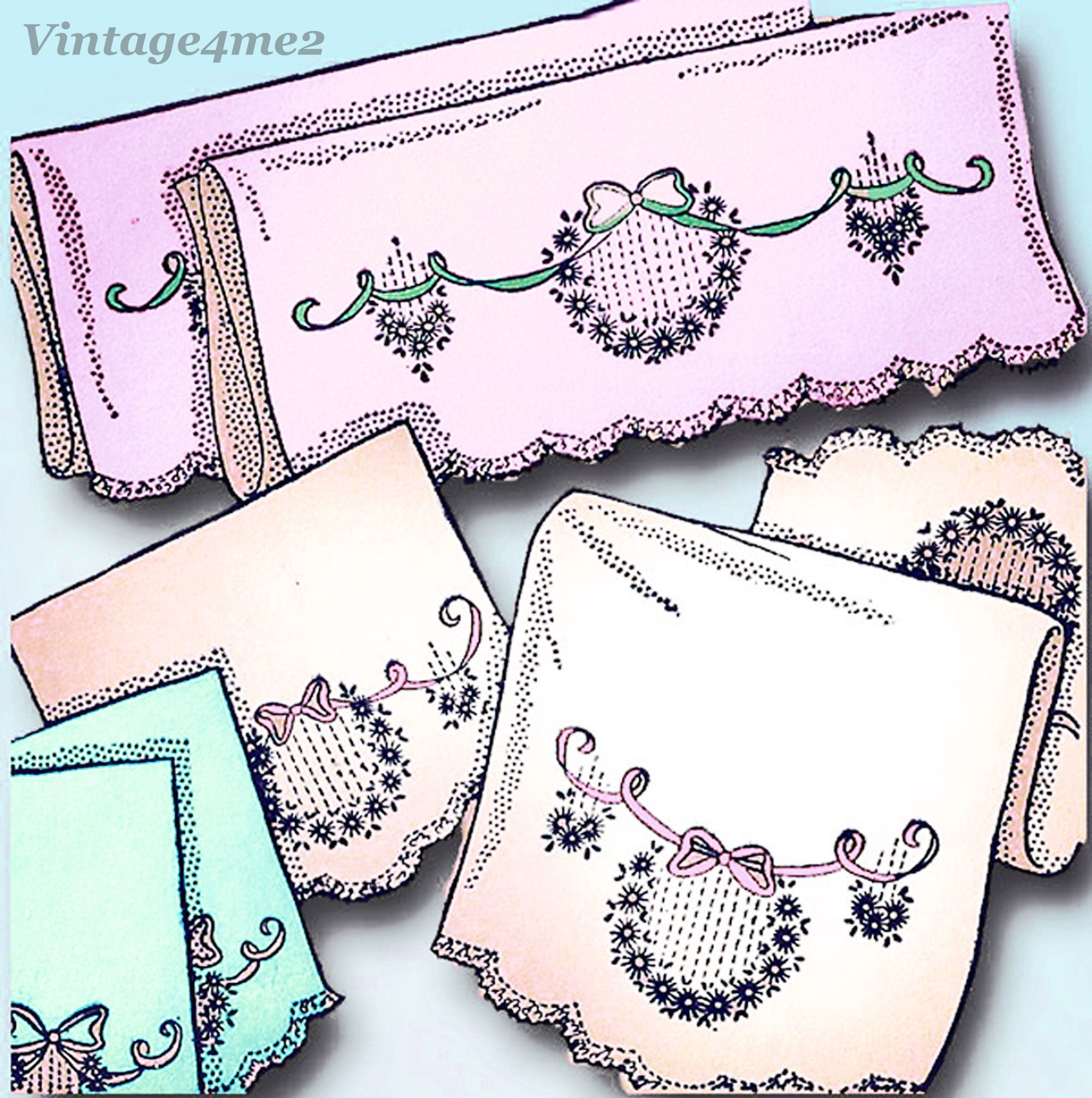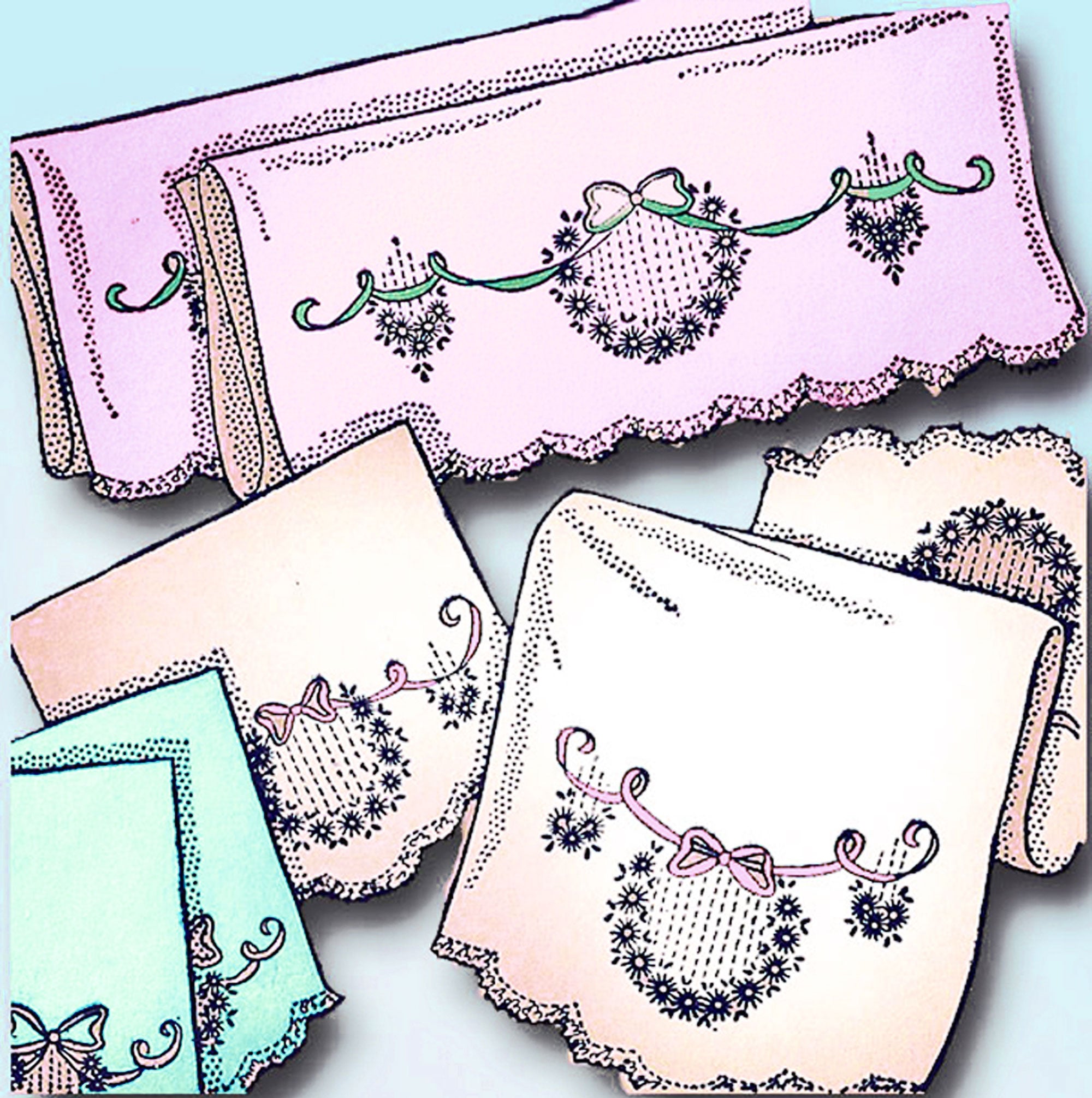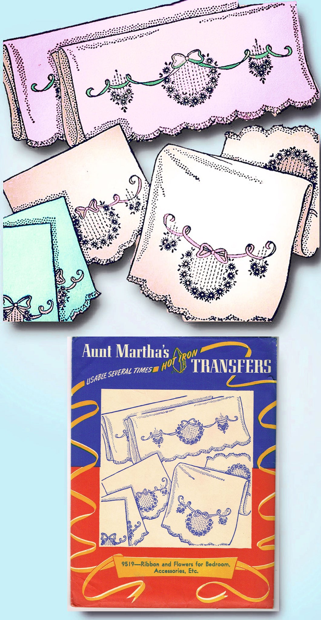 1950s Vintage Aunt Marthas Embroidery Transfer 9519 Uncut Bowknot Bedroom Set