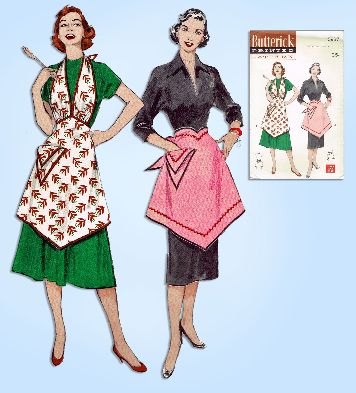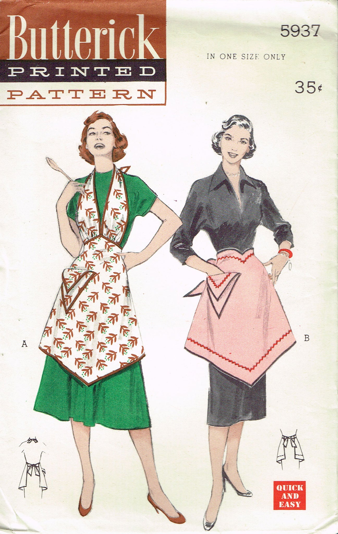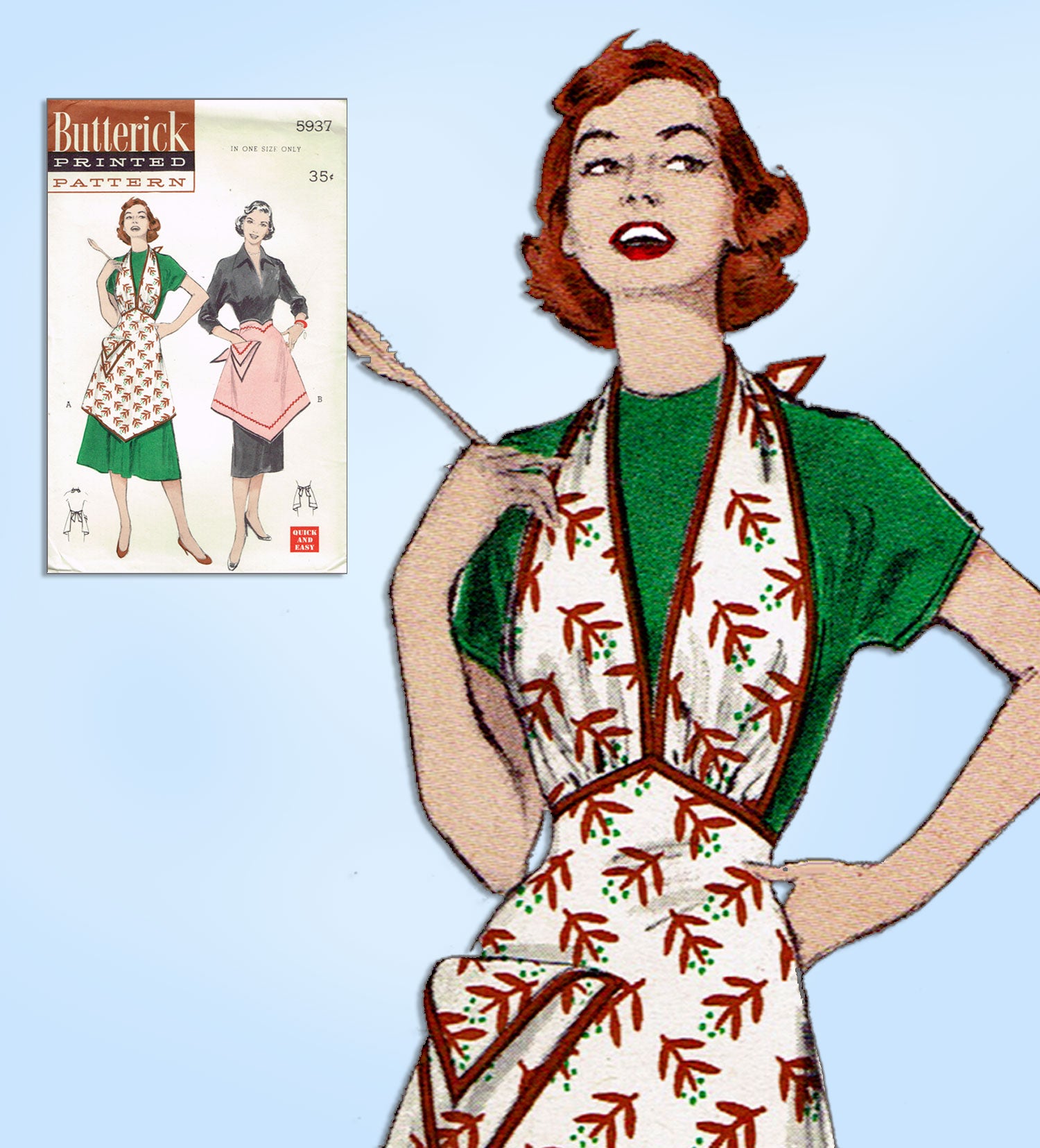 1950s Vintage Butterick Sewing Pattern 5937 Easy Misses Halter Apron Fits All