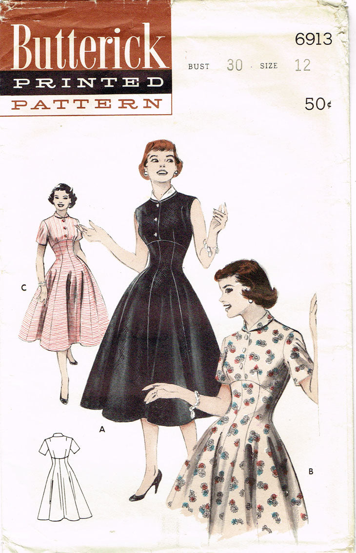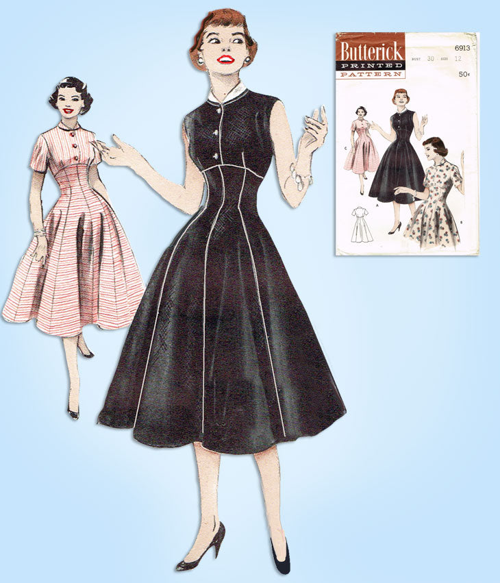 1950s Vintage Butterick Sewing Pattern 6913 Uncut Empire Princess Dress Sz 30 B