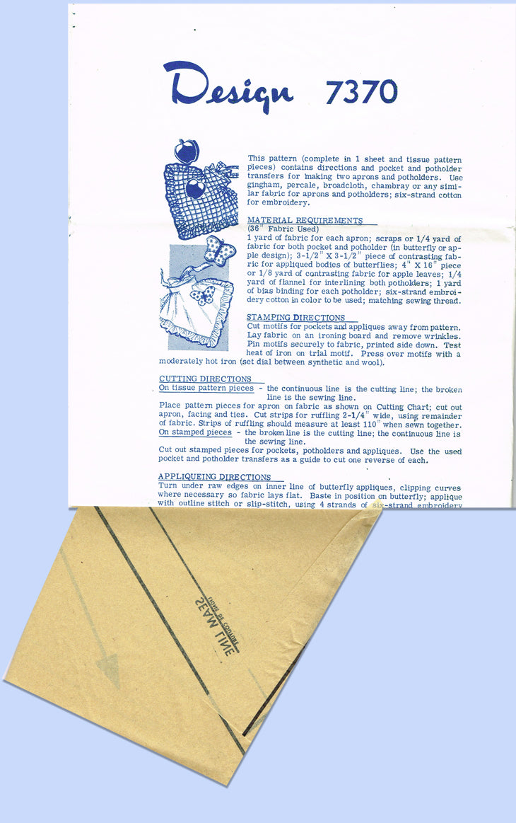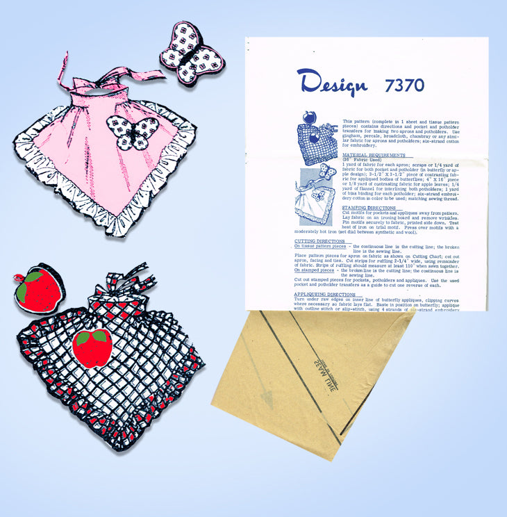 1950s Vintage Design Sewing Pattern 7370 Uncut Misses Shaped Cocktail Apron
