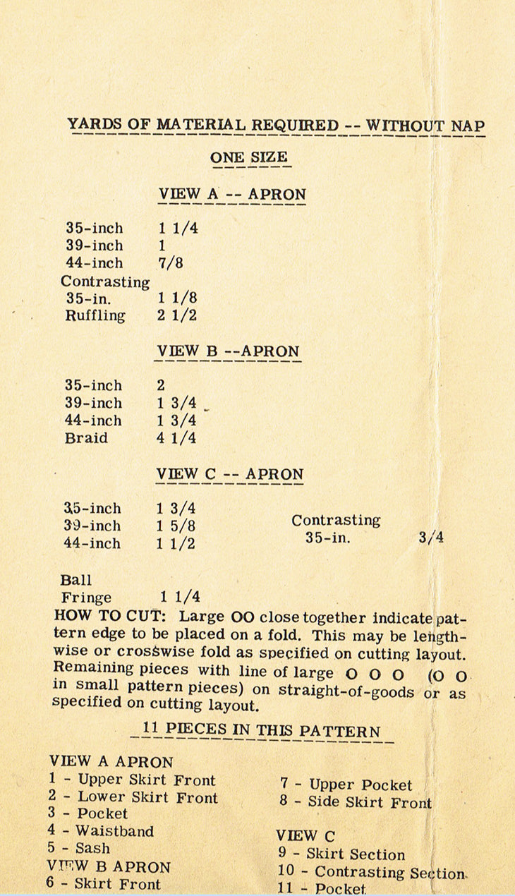 Misses' Cocktail Apron Pattern