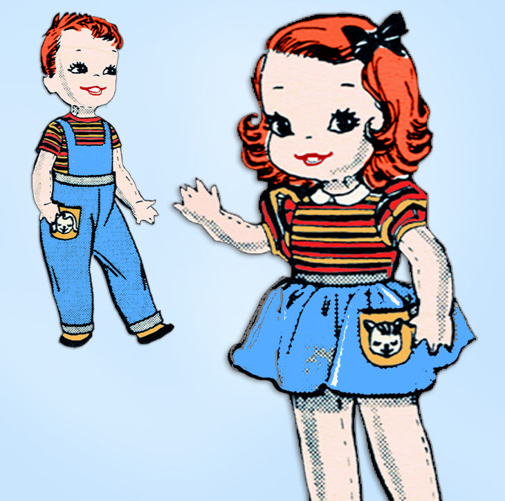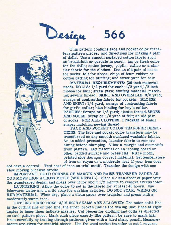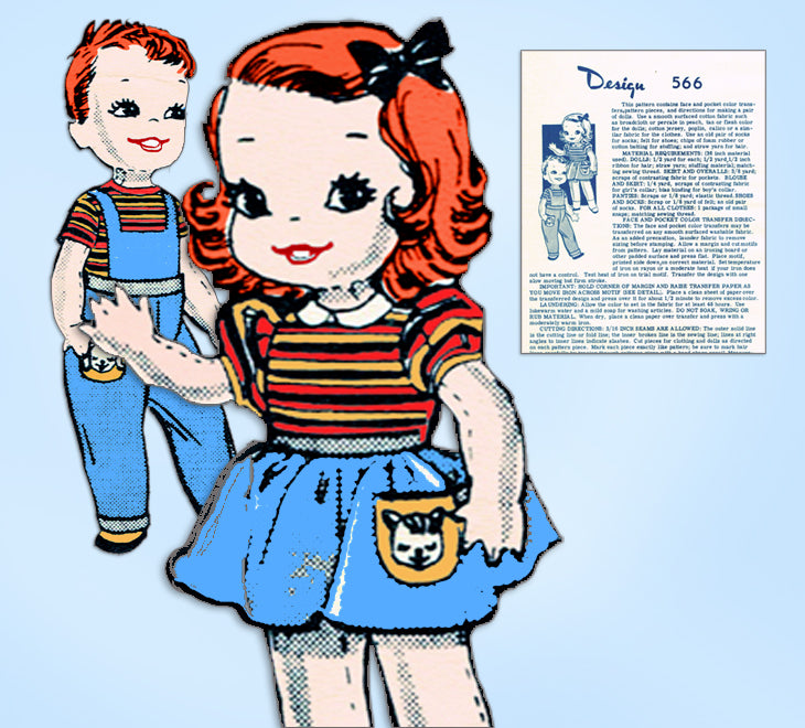 1950s Vintage Laura Wheeler Transfer Pattern 566 Uncut Brother Sister Sock Dolls