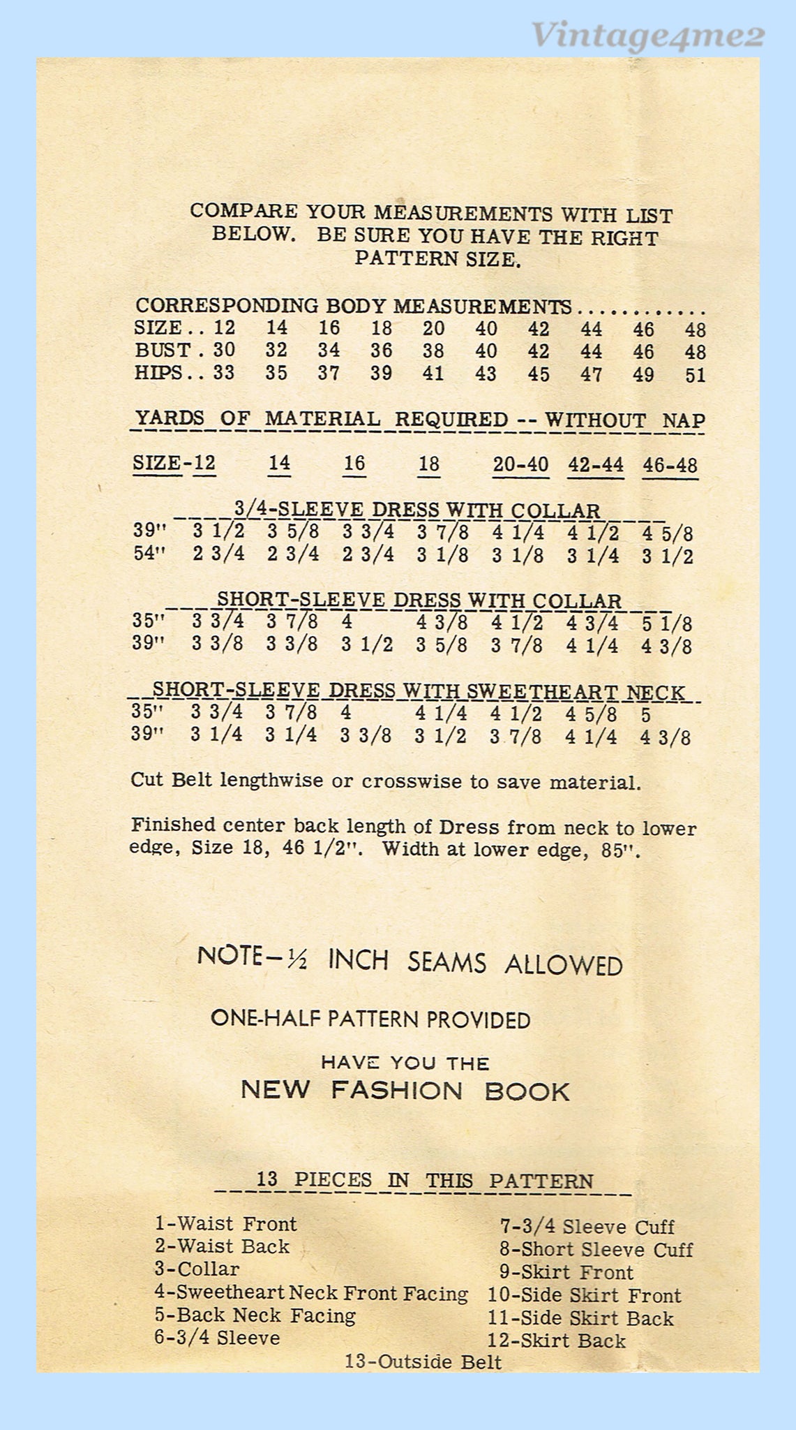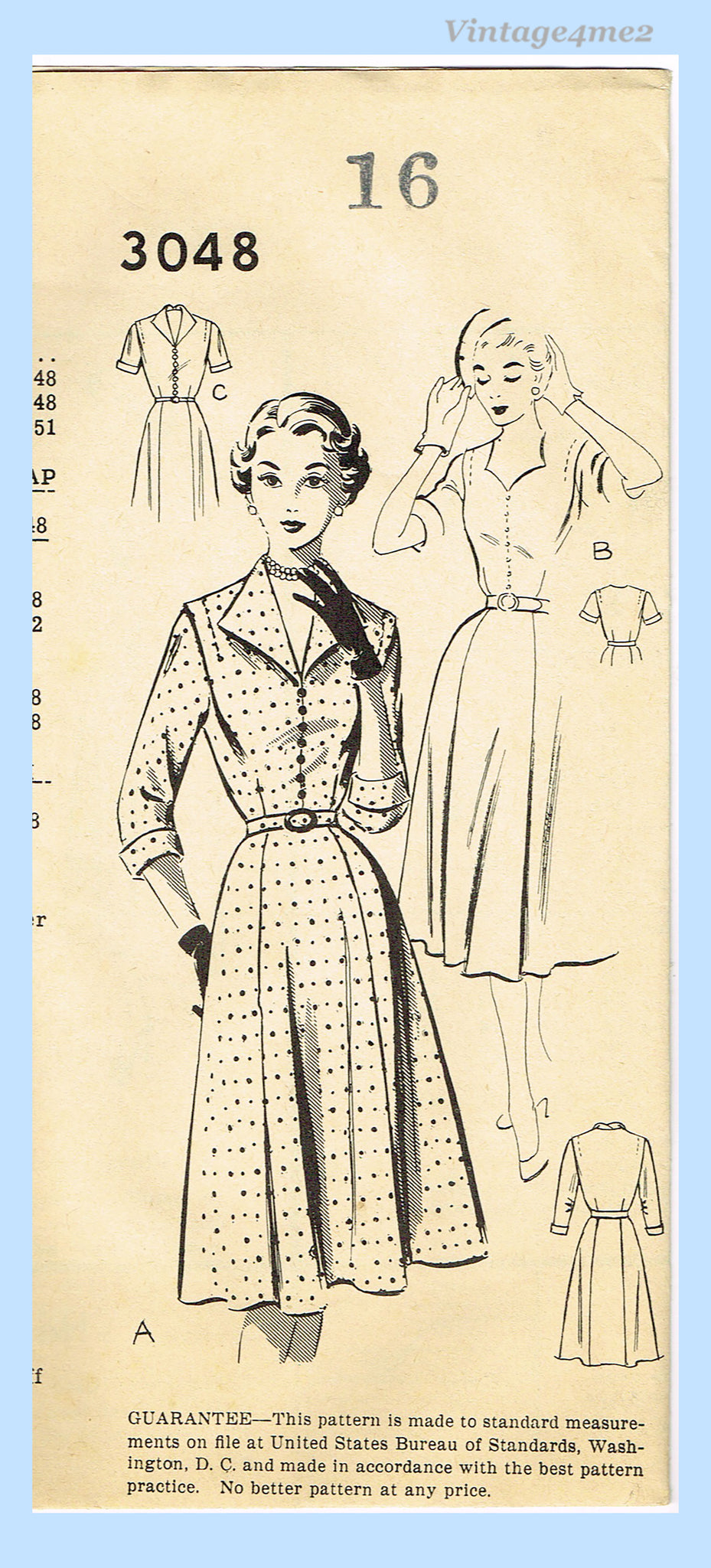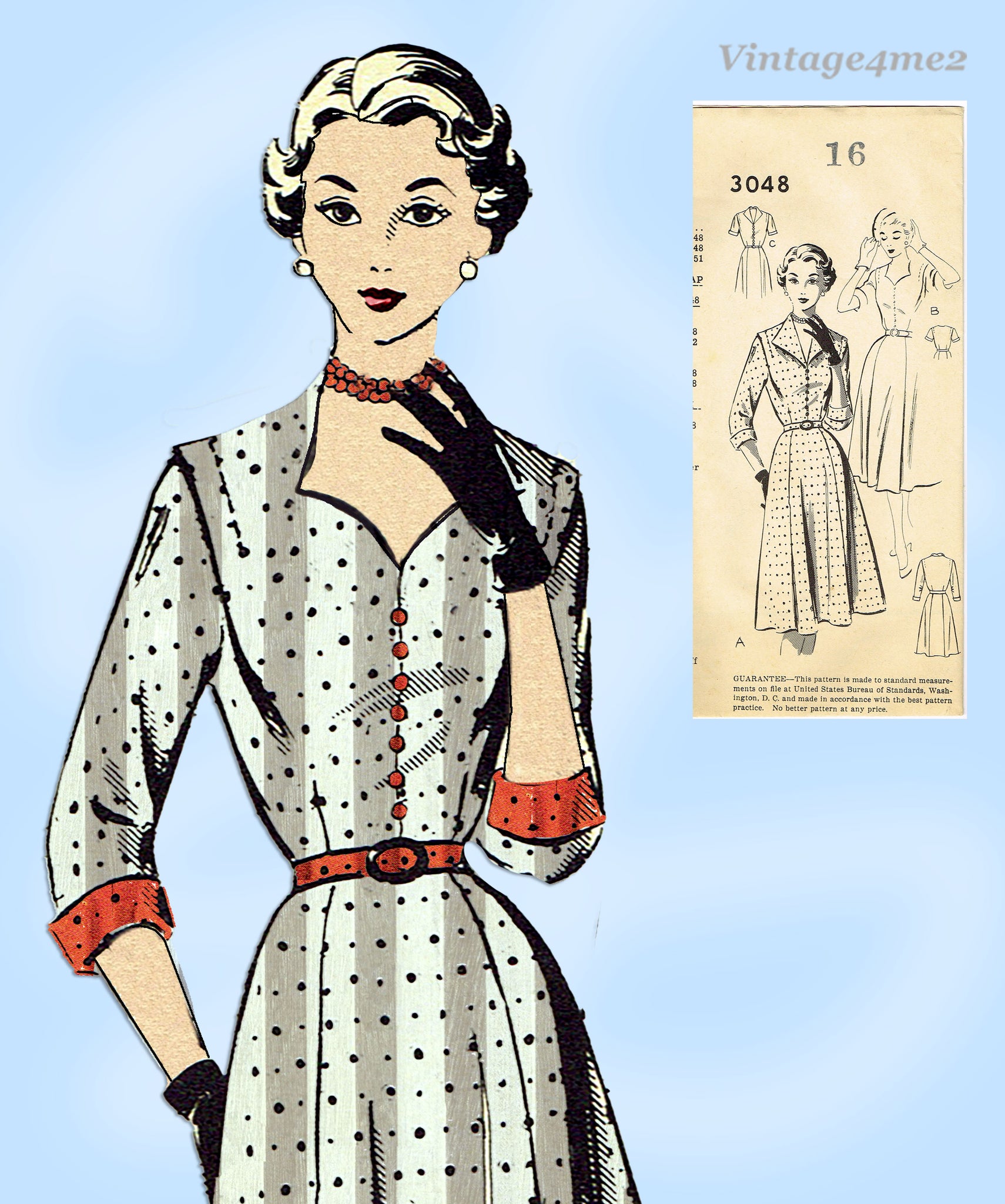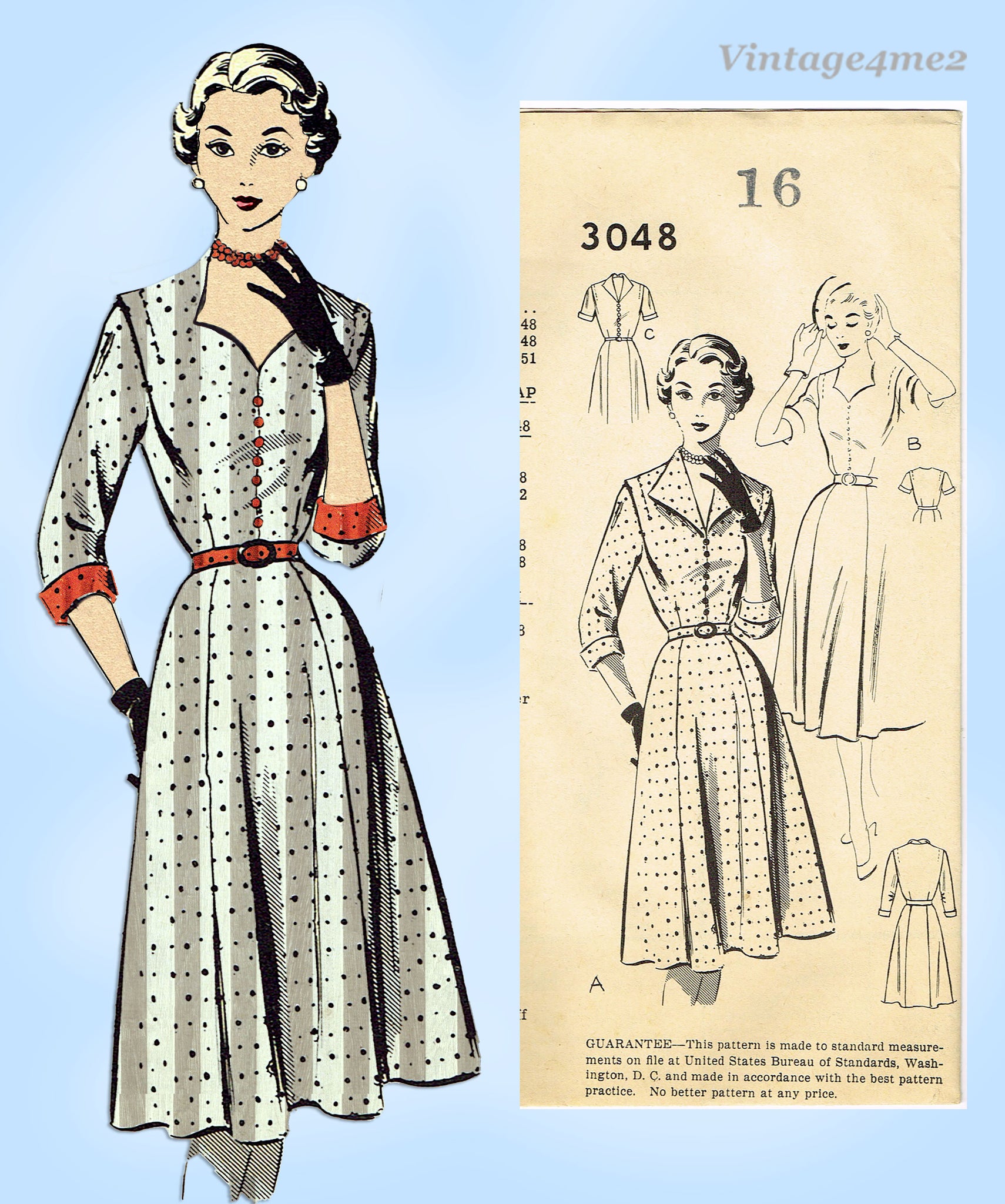 1950s Vintage Mail Order Sewing Pattern 3048 Uncut Misses Sweetheart Dress 34B