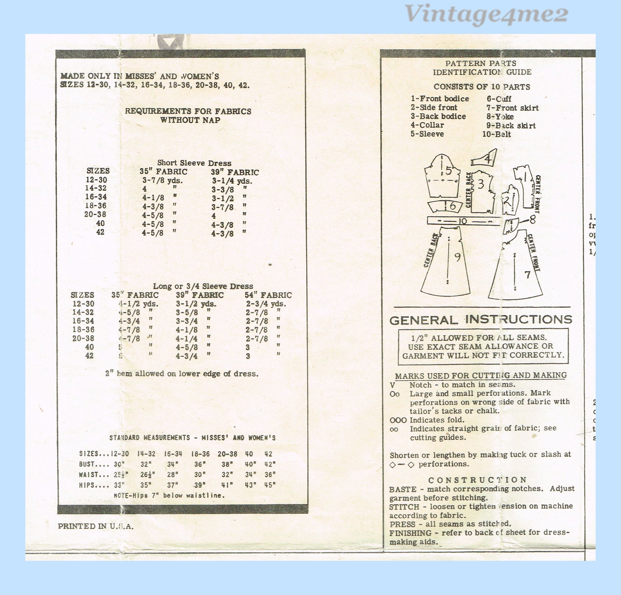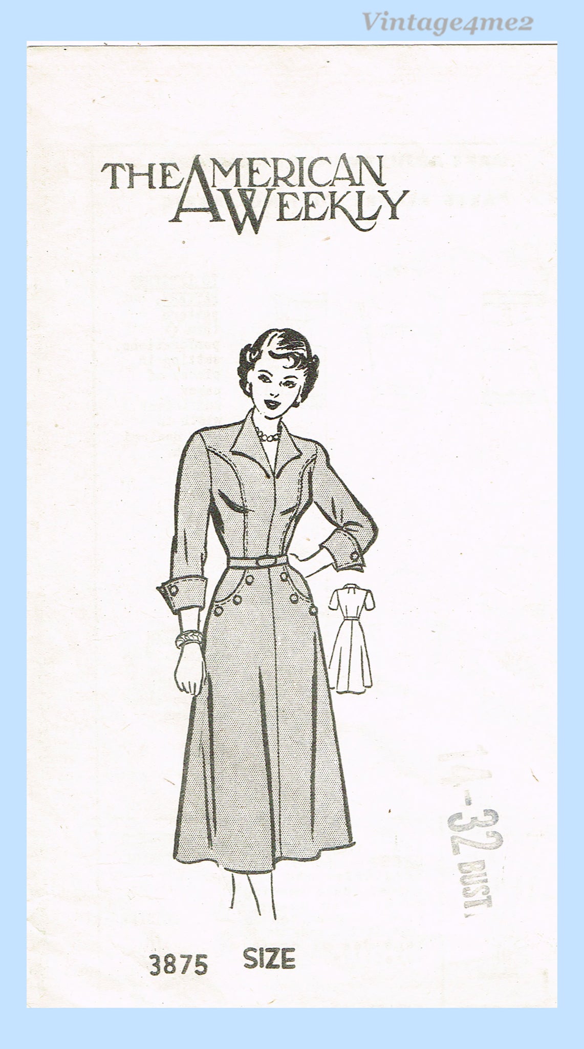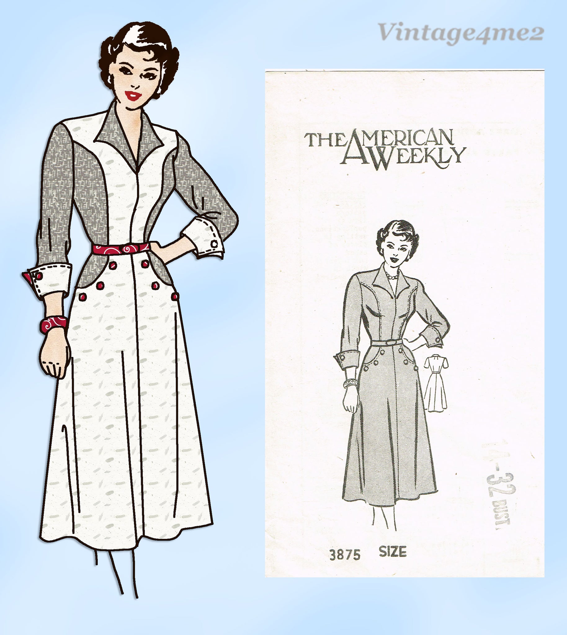 1950s Vintage Mail Order Sewing Pattern 3875 Stunning Misses Dress Sz 32 Bust