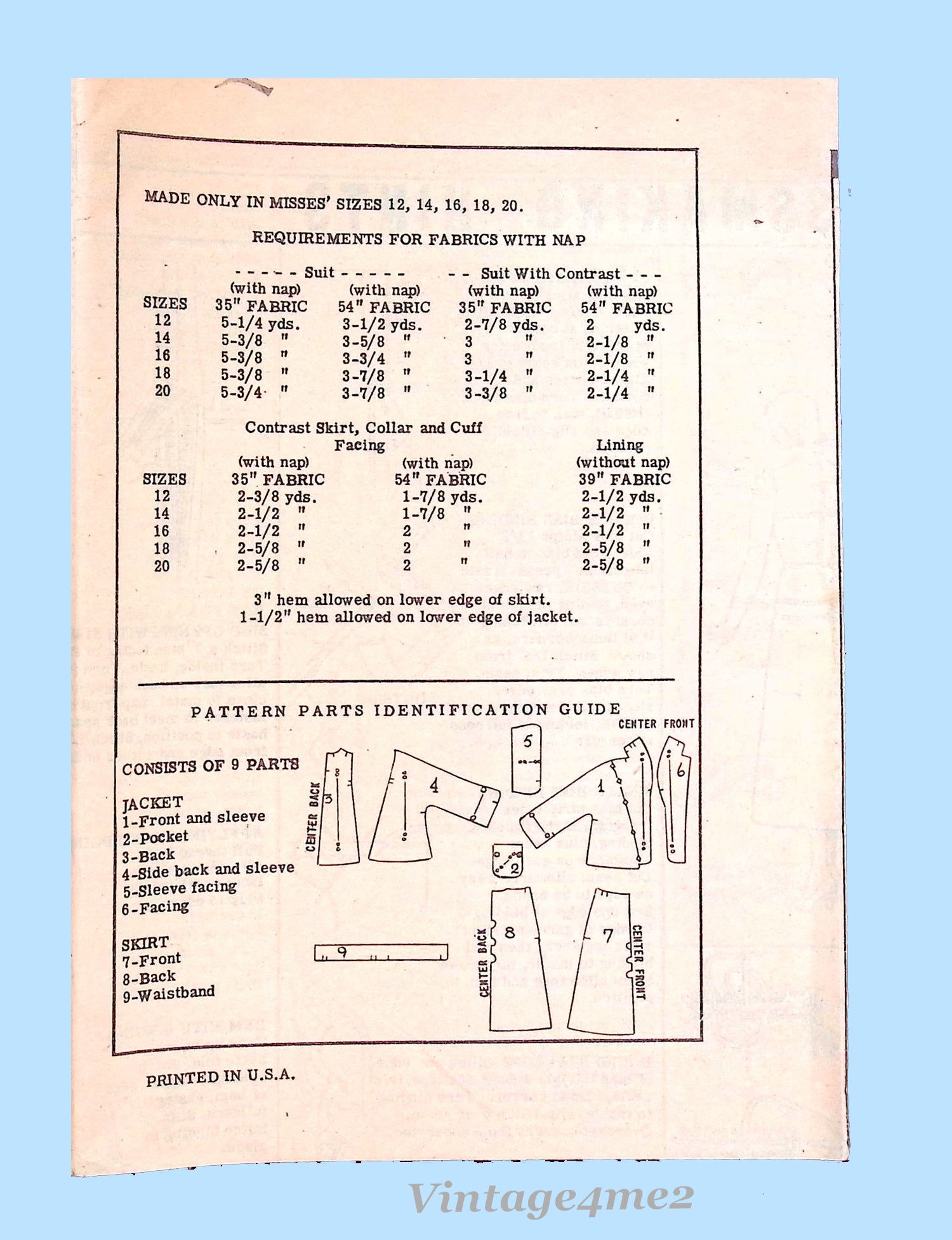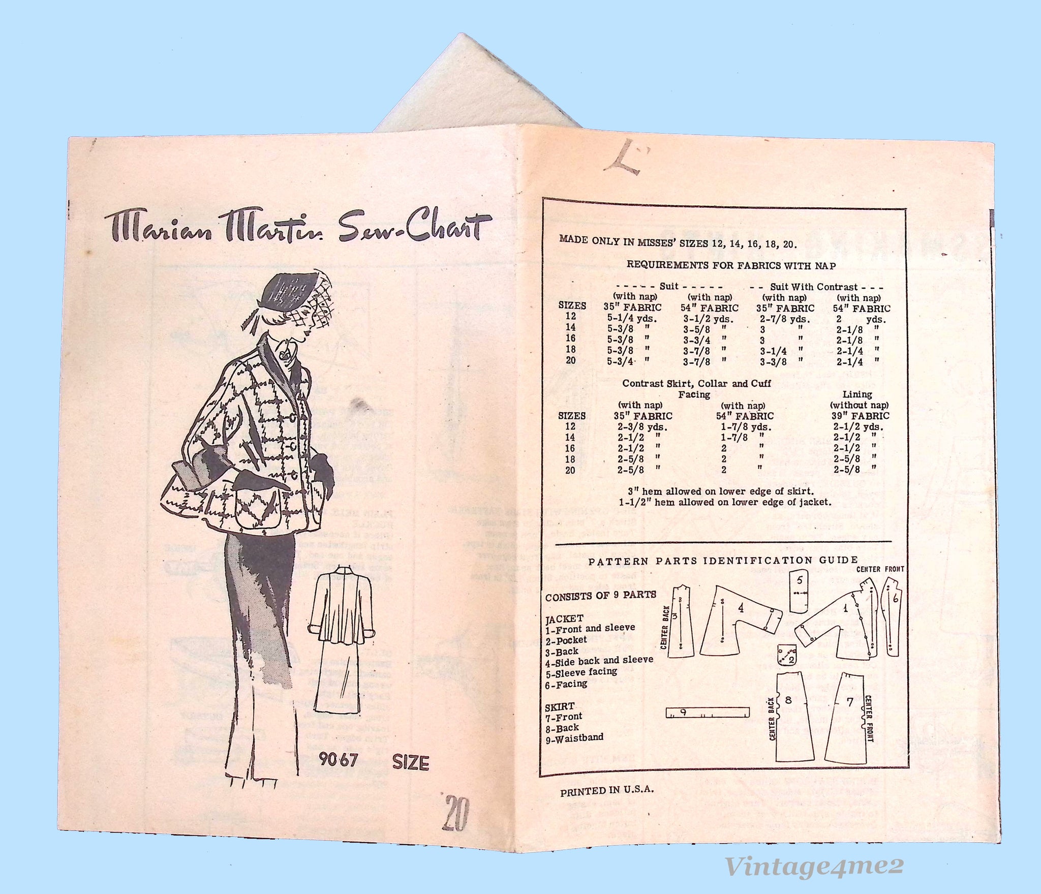 1950s Vintage Marian Martin Sewing Pattern 9067 Ripple Back Suit UNCUT 38 Bust