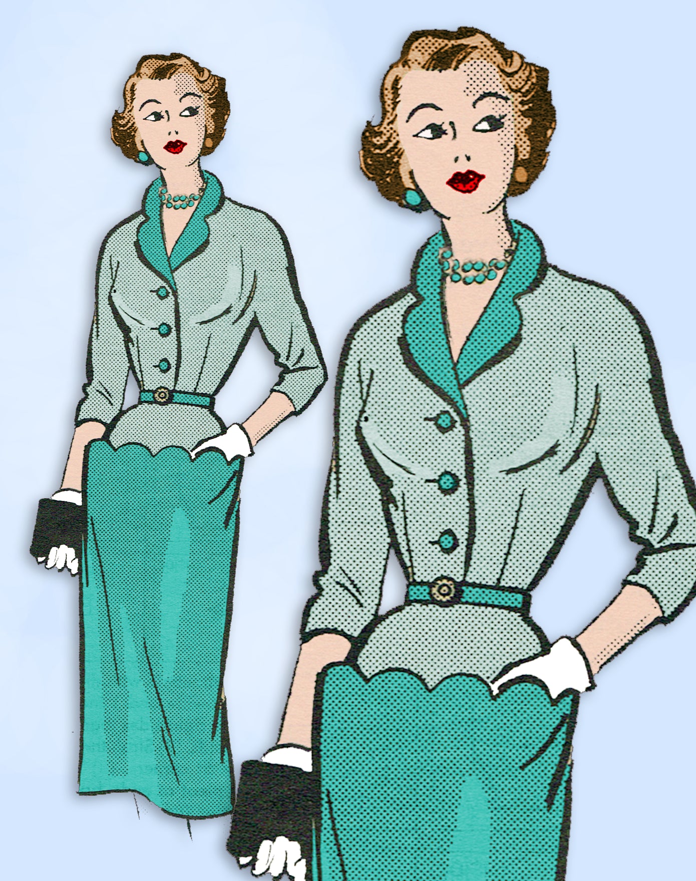 1950s Vintage Marian Martin Sewing Pattern 9115 Dress w Scalloped Pockets Sz 30B