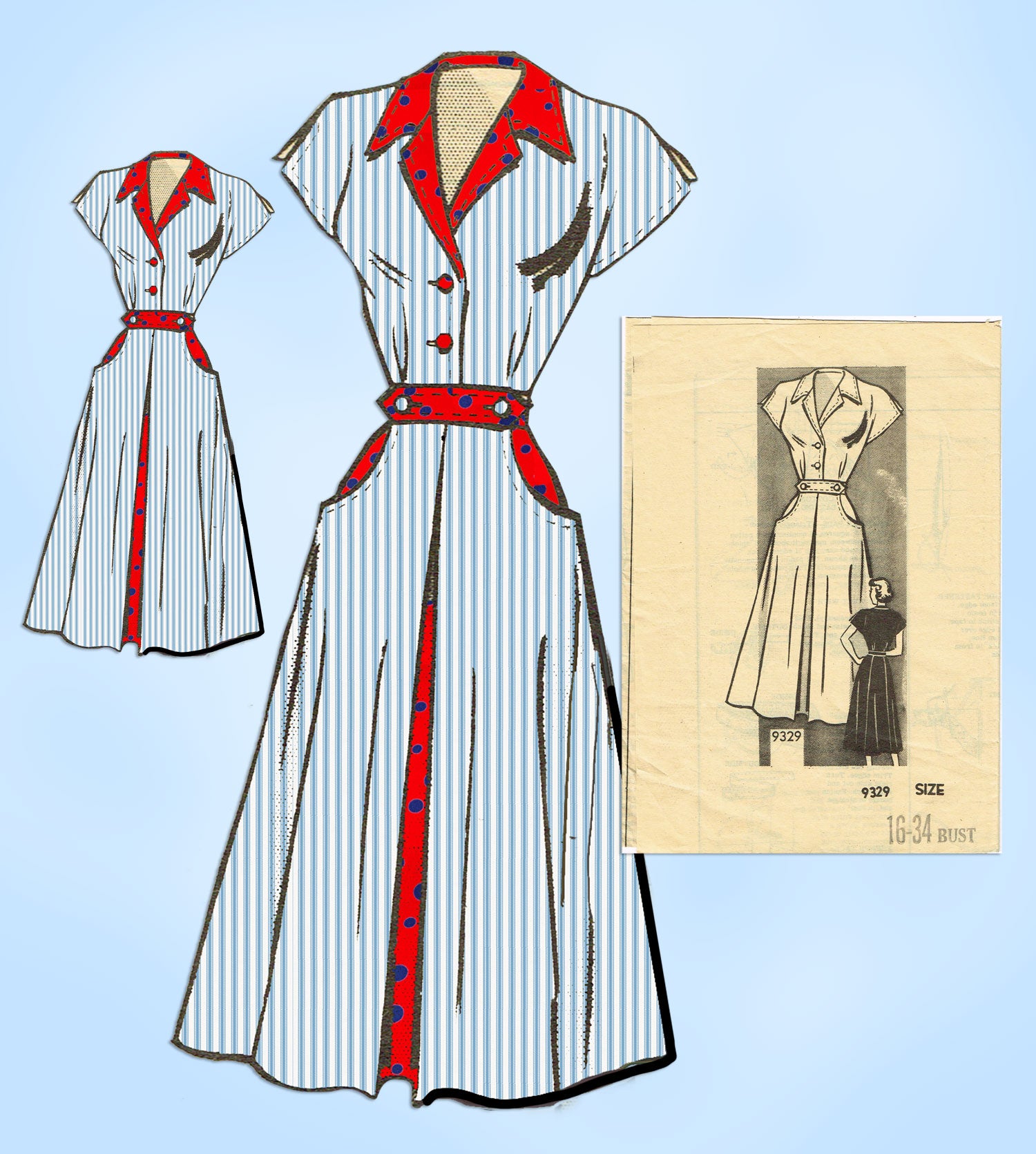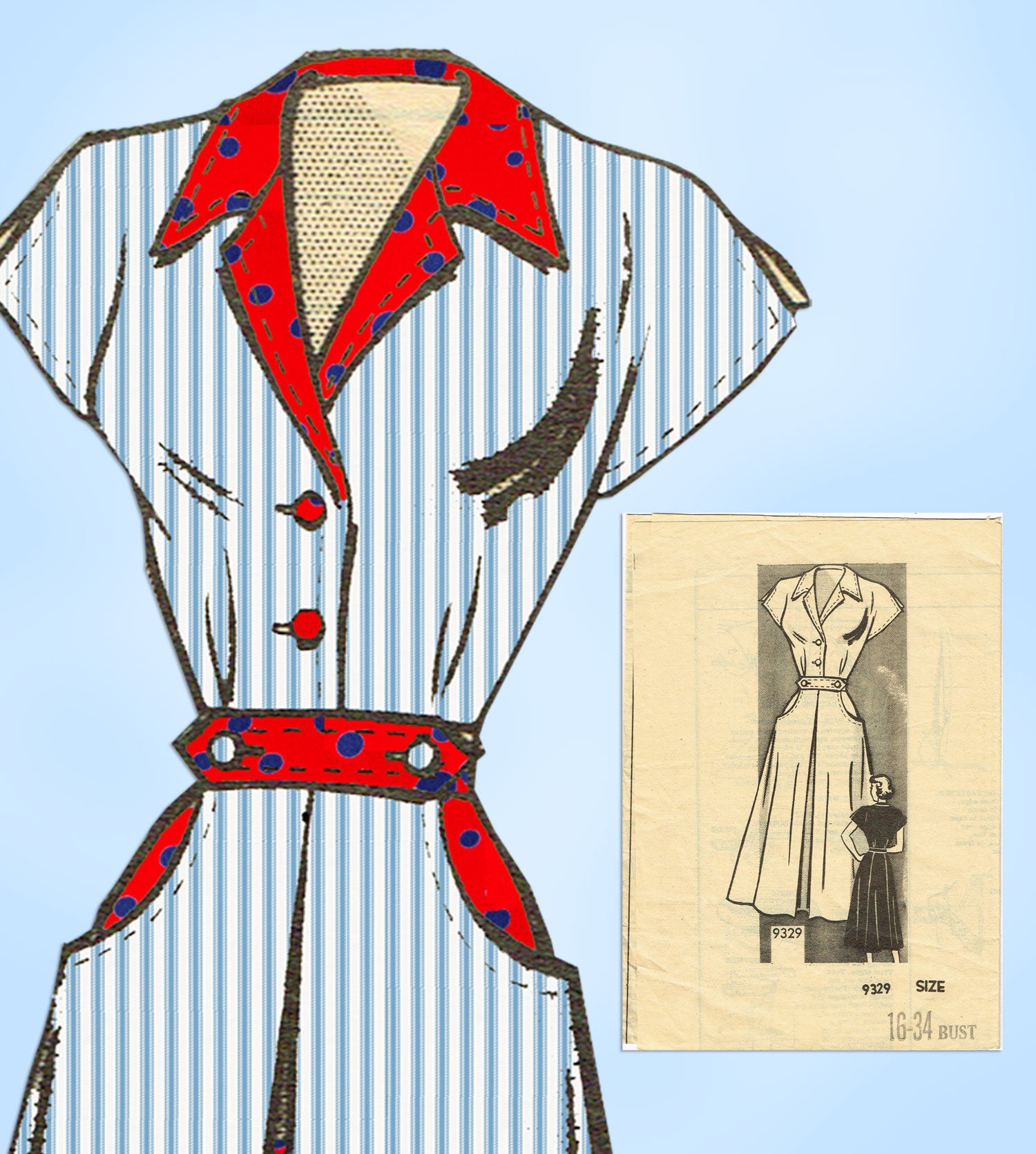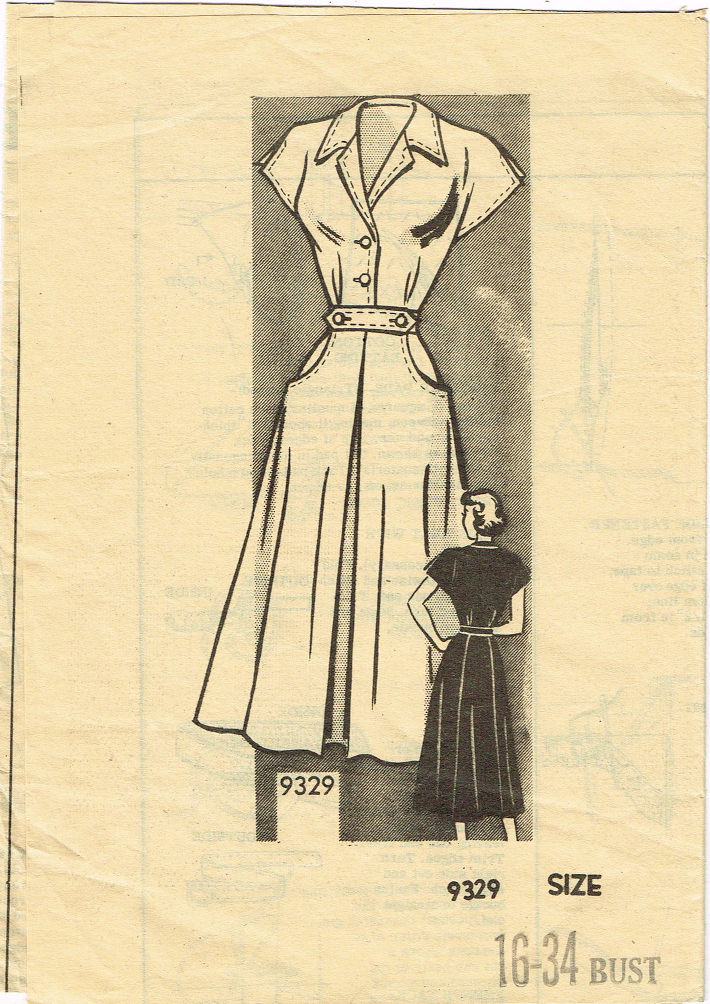 1950s Vintage Marian Martin Sewing Pattern 9329 Misses Dress w Cap Sleeves 34 B