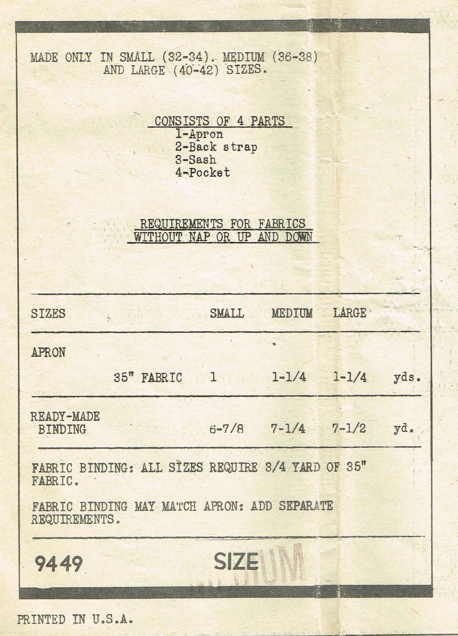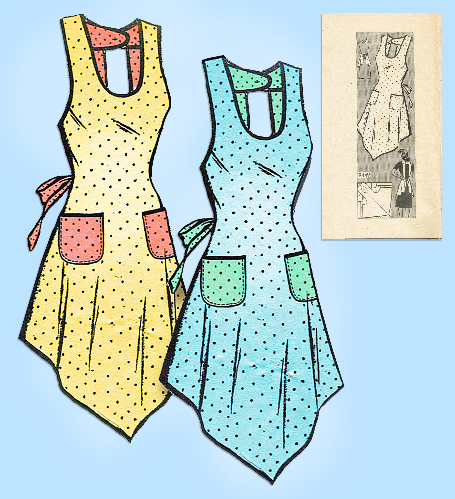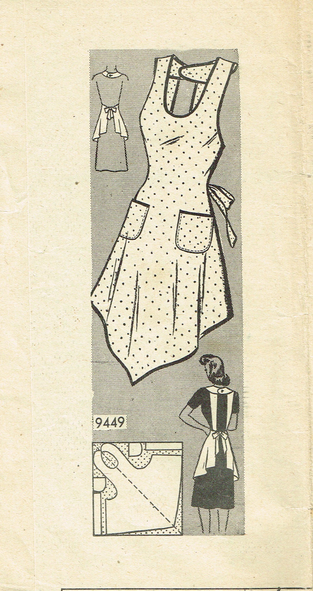 1940s Vintage Marian Martin Sewing Pattern 9449 Misses Farm Kitchen Apron Sz MED