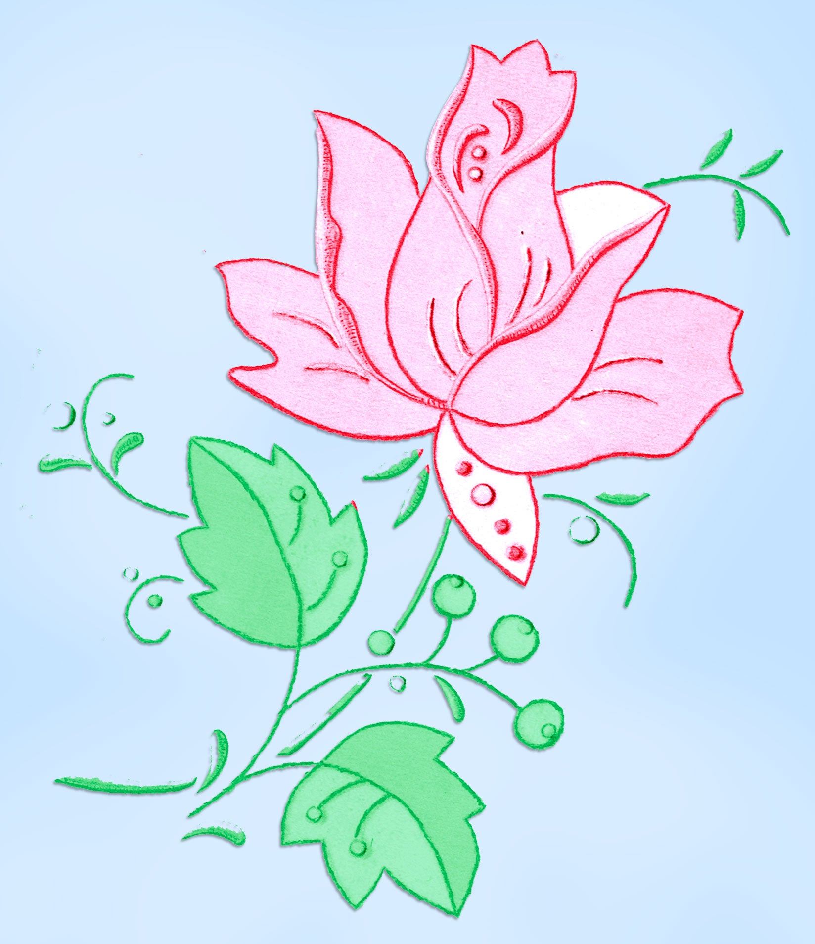 This is a wonderful transfer with a variety of full rose and rosebud motifs in applique.