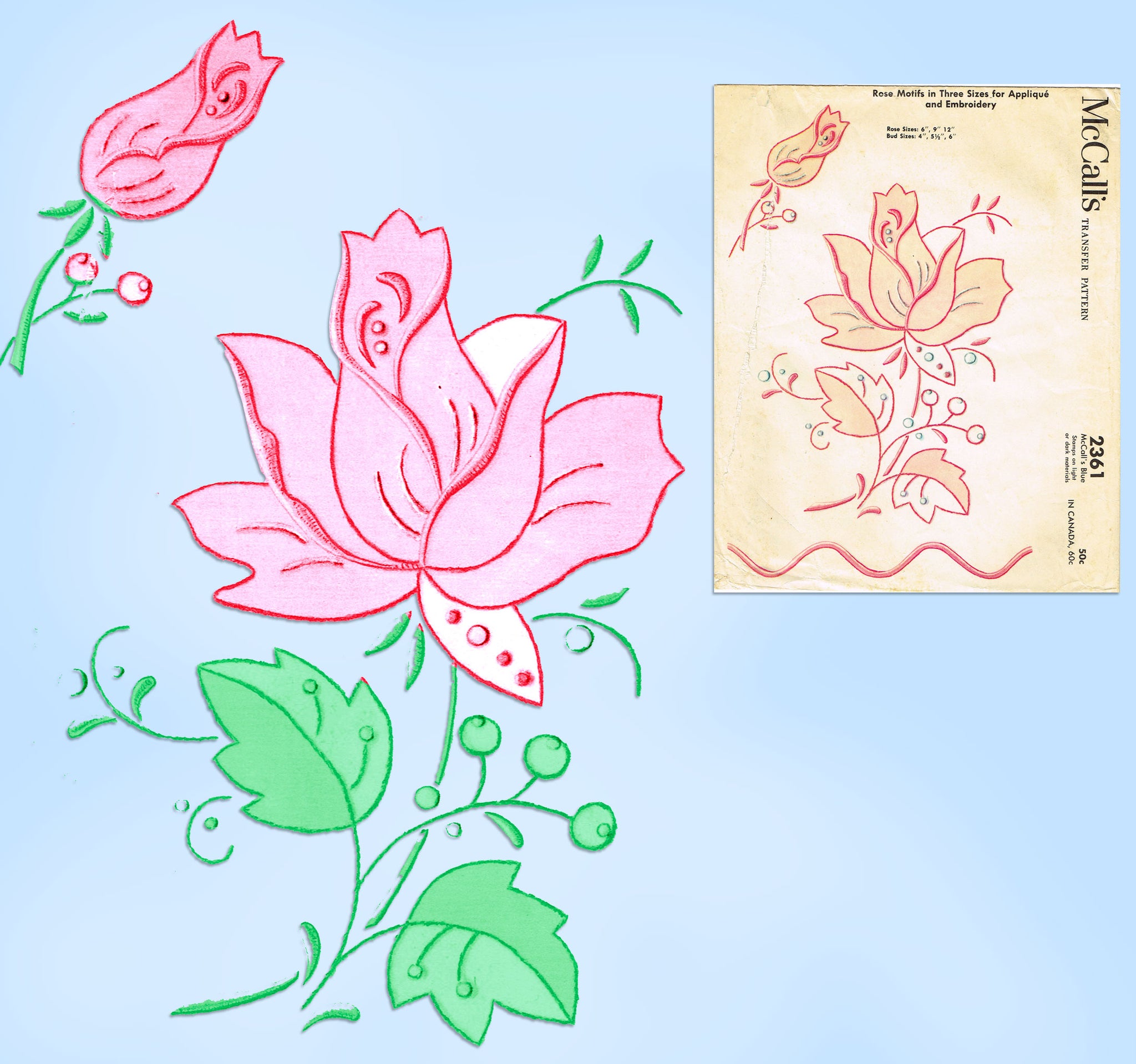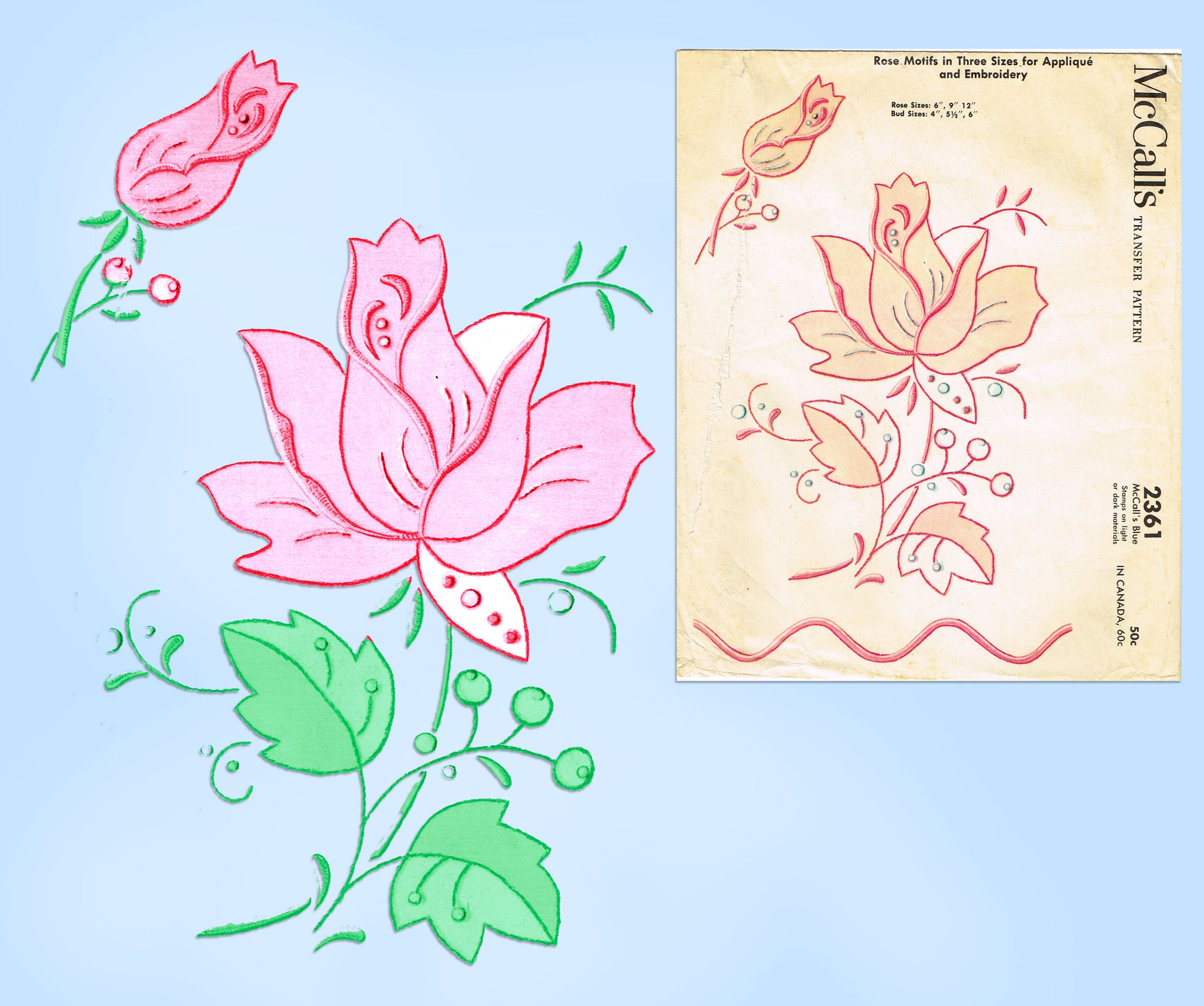 1950s Vintage McCall Kaumagraph Embroidery Transfer 2361 Large Uncut Applique Flowers