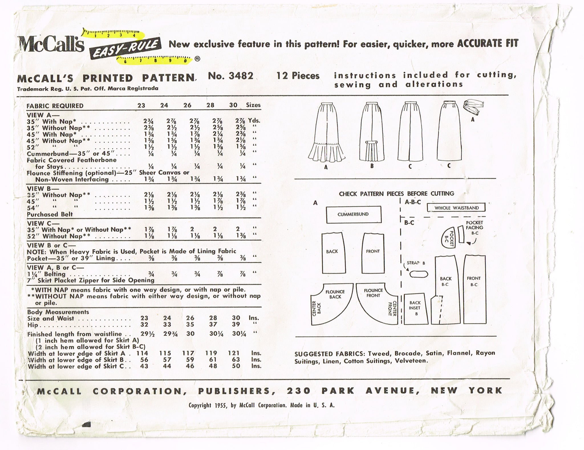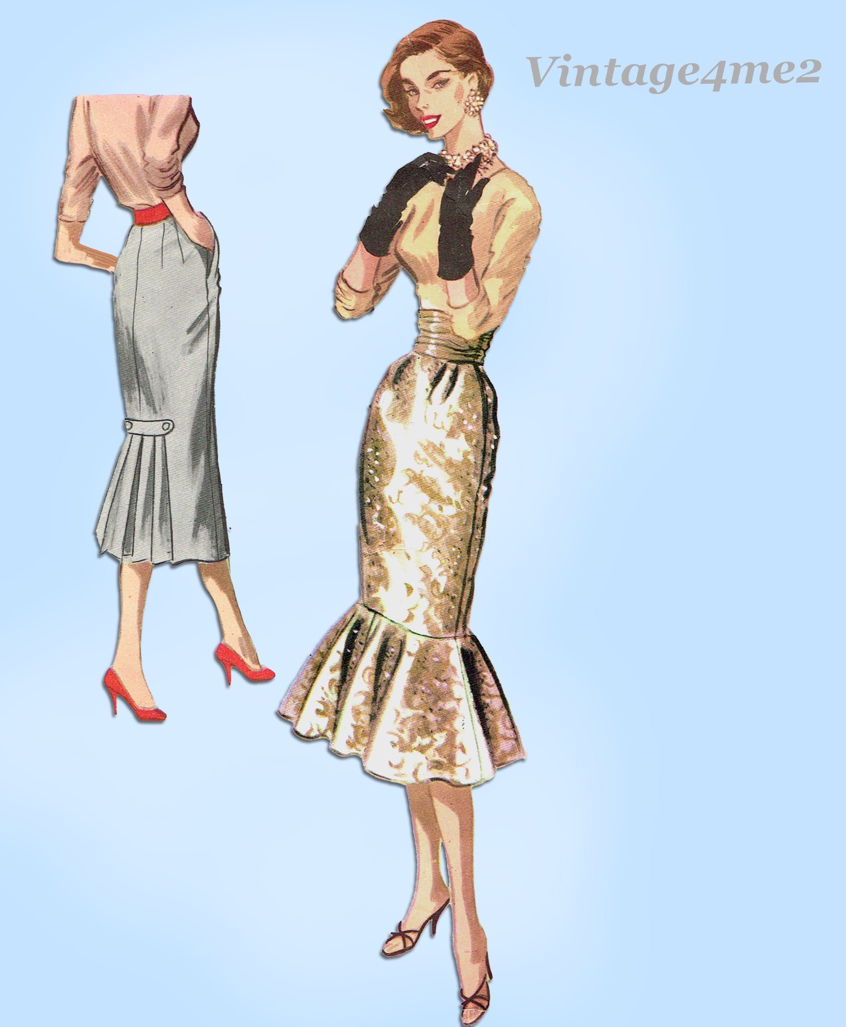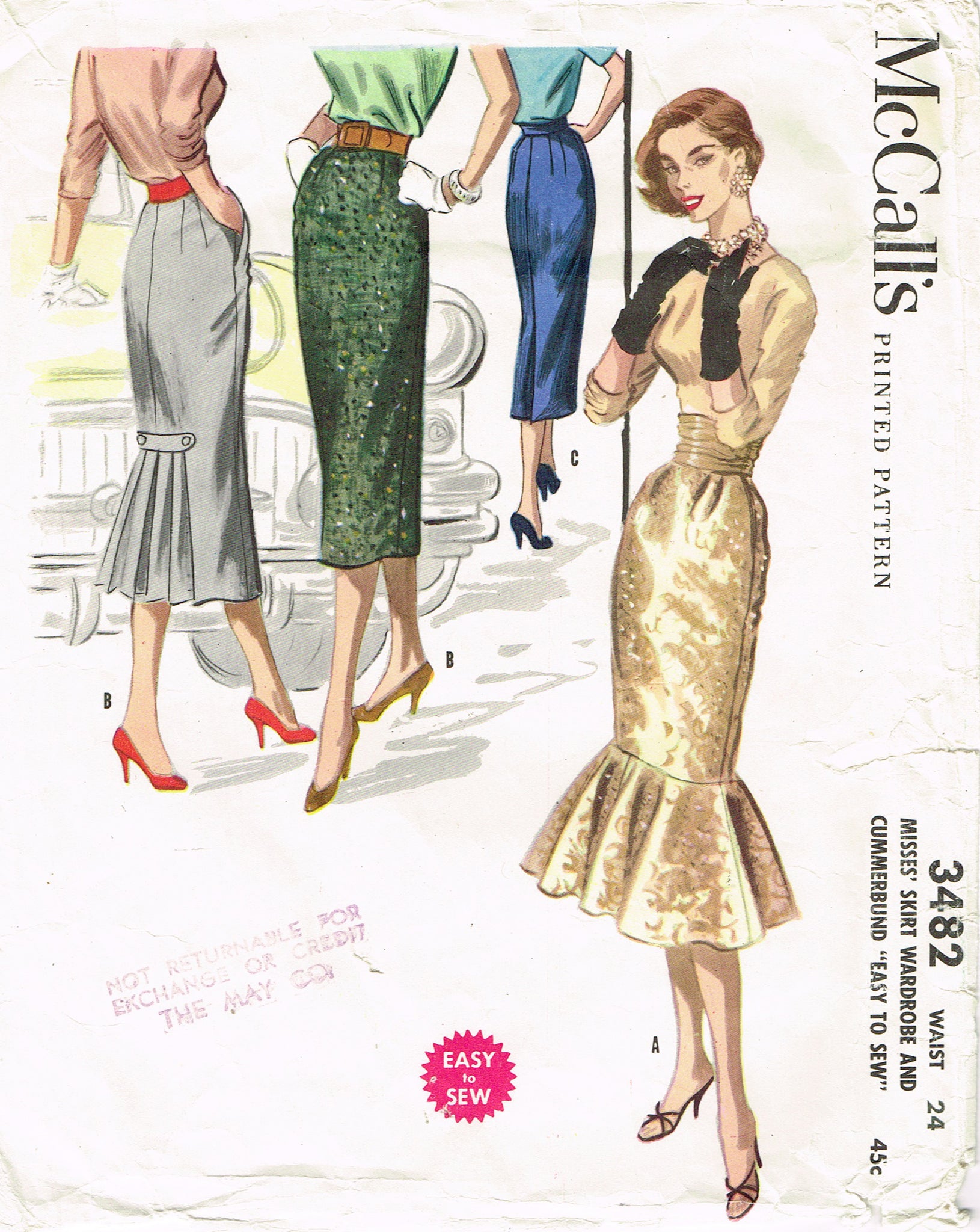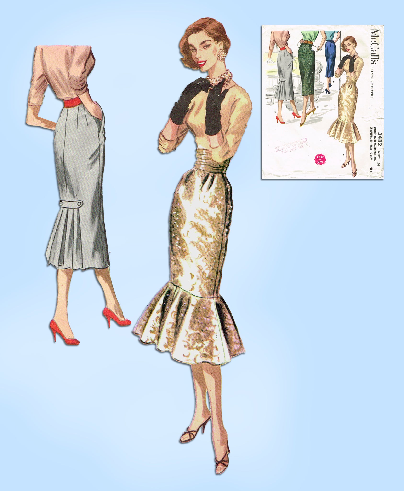 1950s Vintage McCall Sewing Pattern 3482 Misses Pencil Skirt w Flounce Sz 24 W