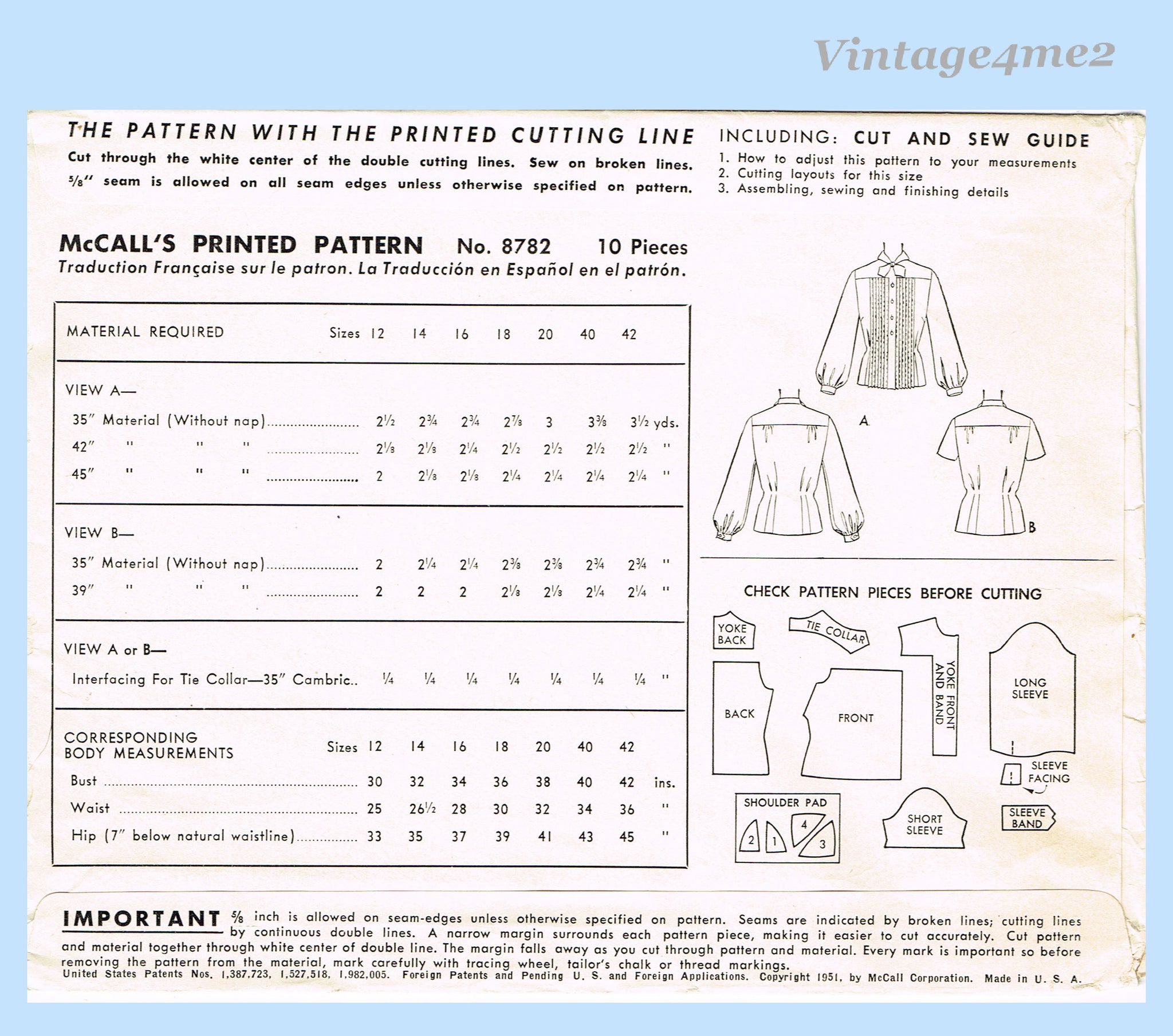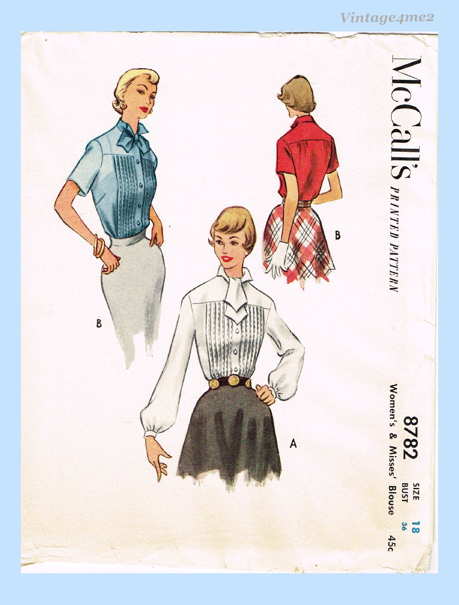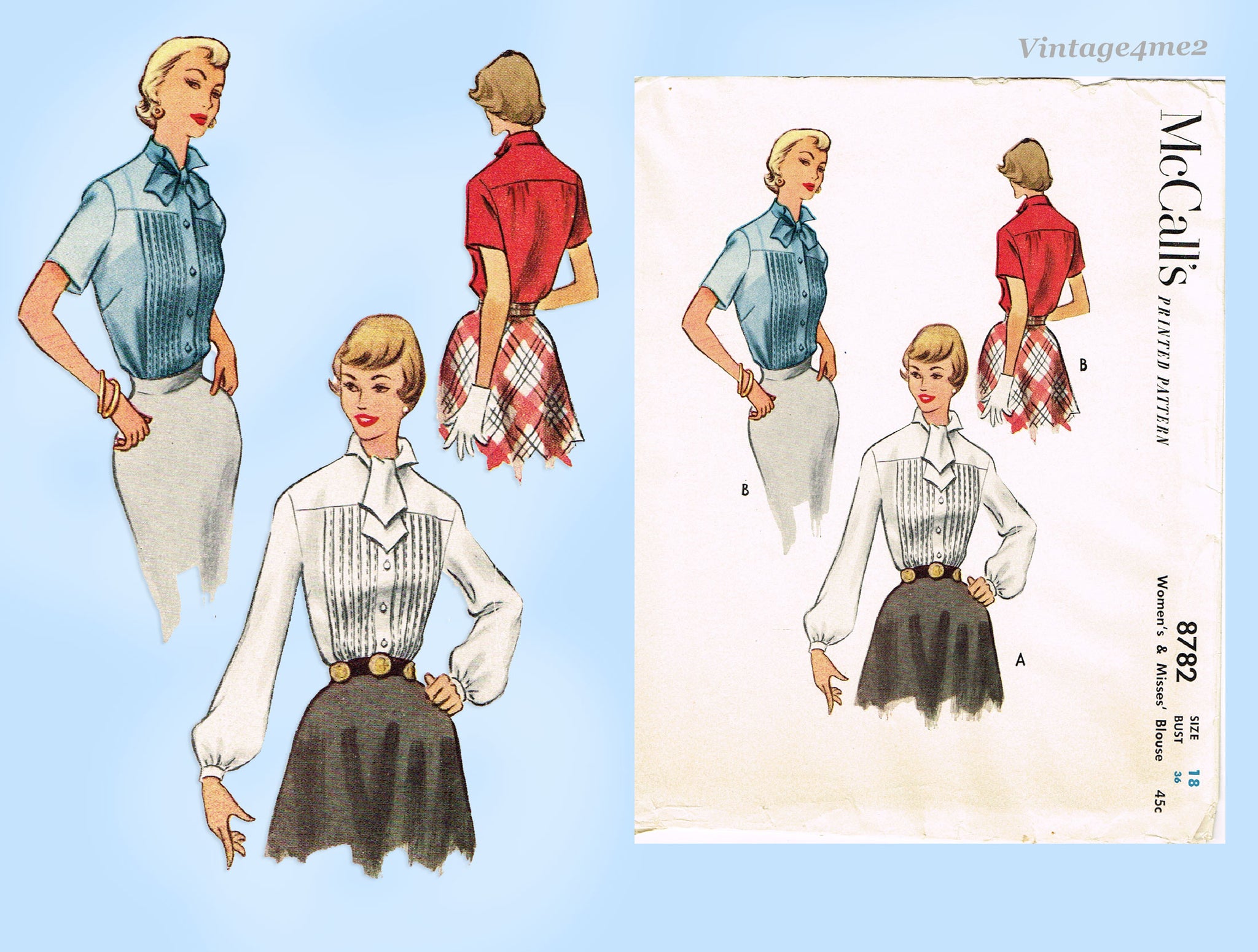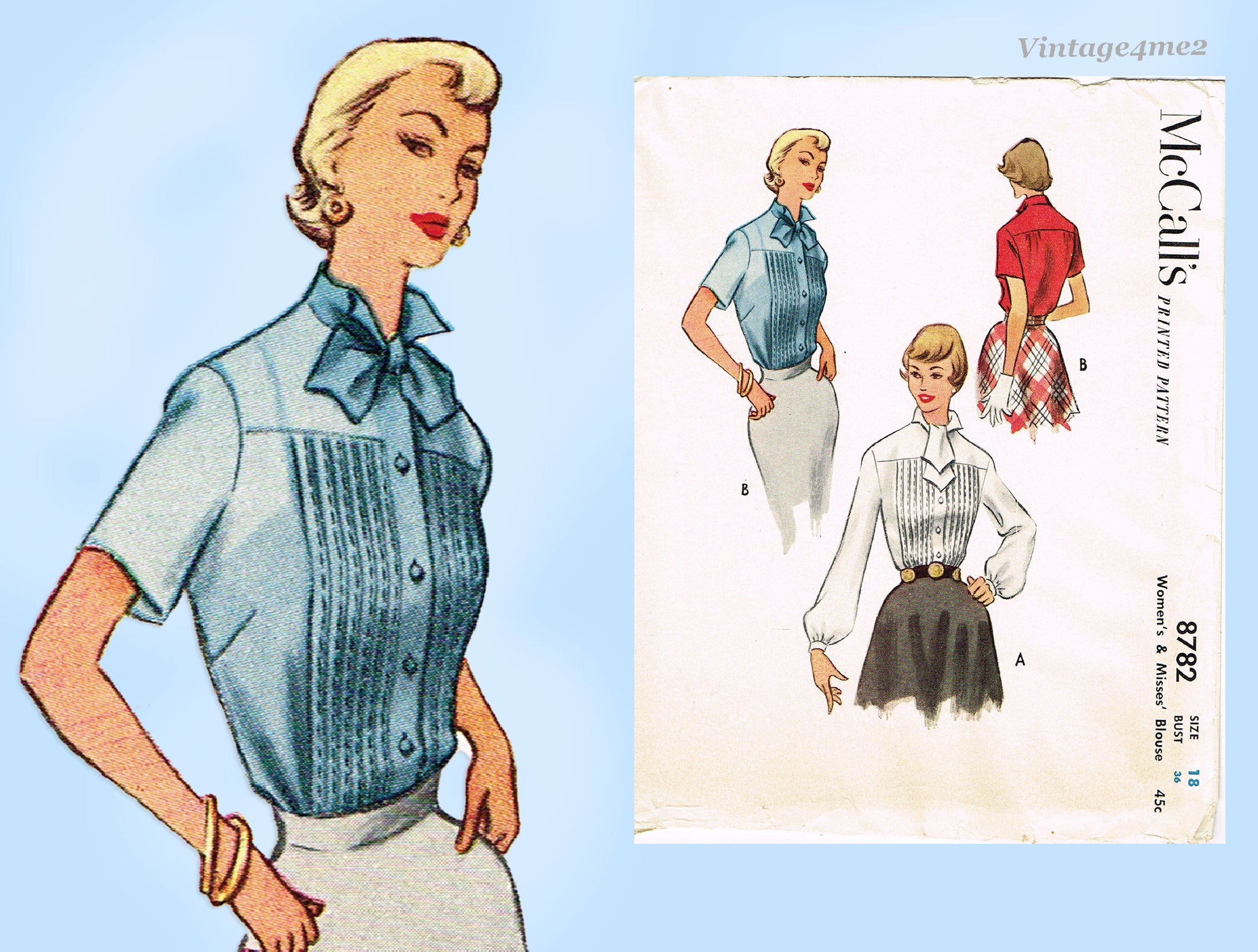 1950s Vintage McCall Sewing Pattern 8782 Stunning Uncut Misses Blouse Sz 36 Bust
