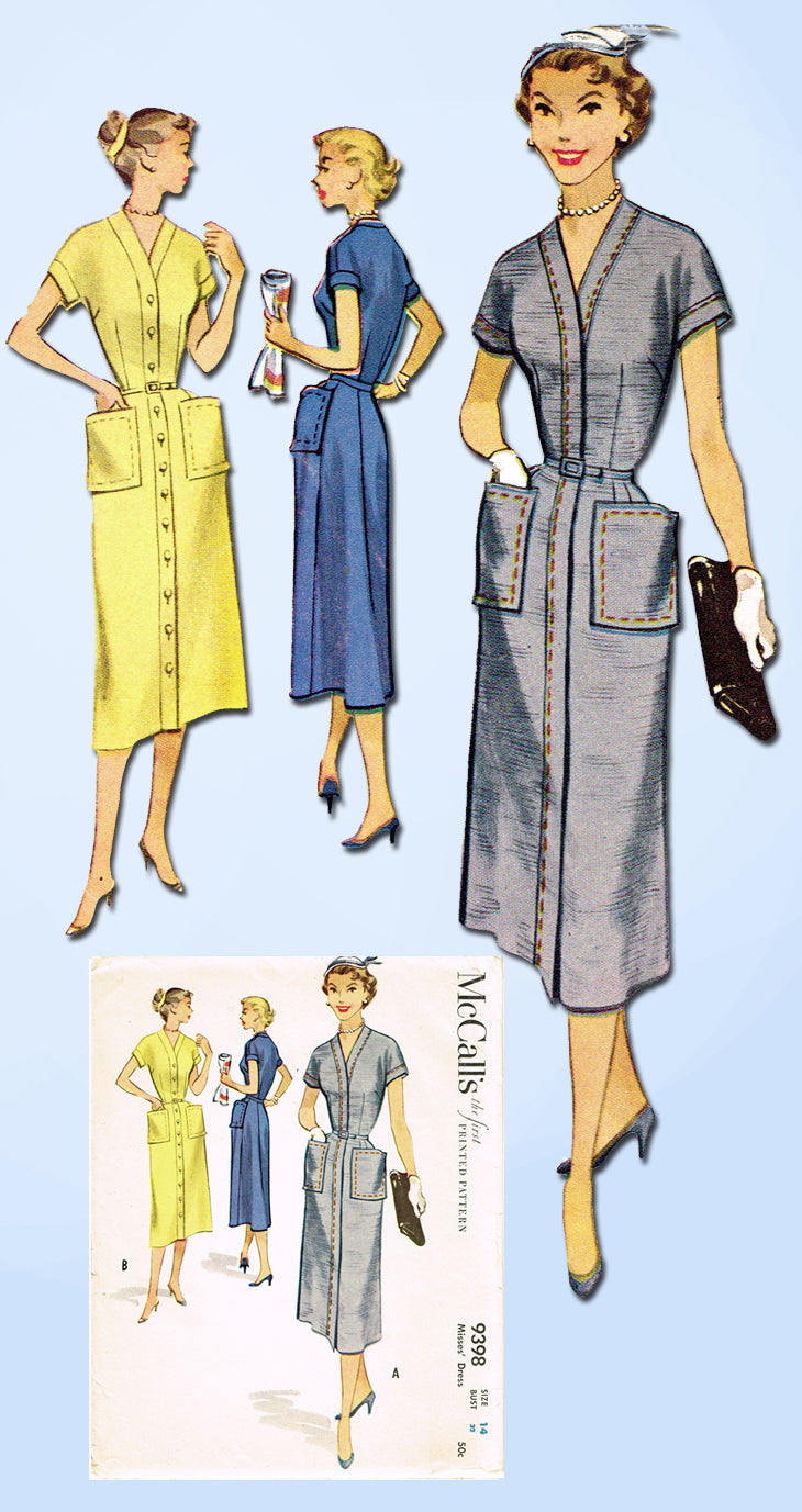 1950s Vintage McCall Sewing Pattern 9398 Misses Slender Street Dress Size 32 B