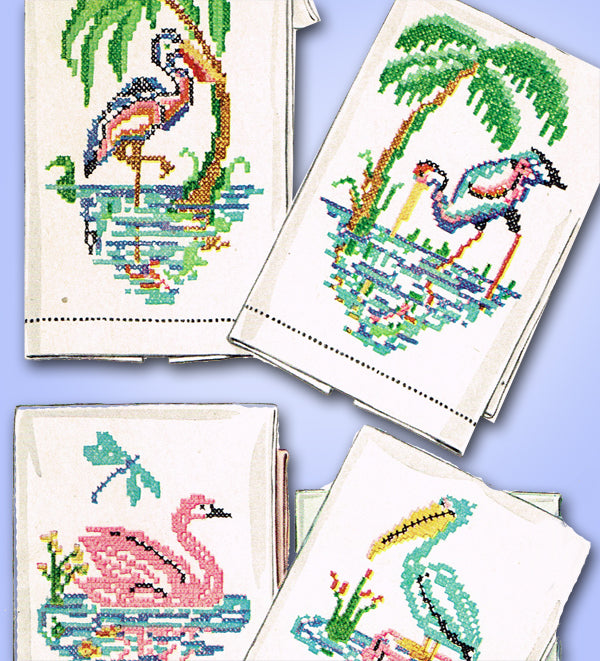 1950s Vintage McCall's Embroidery Transfer 1624 Uncut X-Stitch Tropical Birds