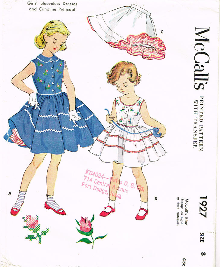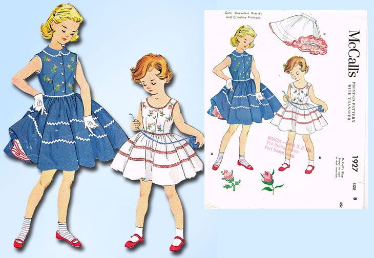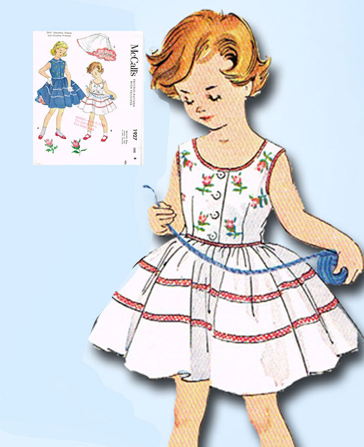 1950s Vintage McCall's Sewing Pattern 1927 Cute Girls Sun Dress & Petticoat Sz 8