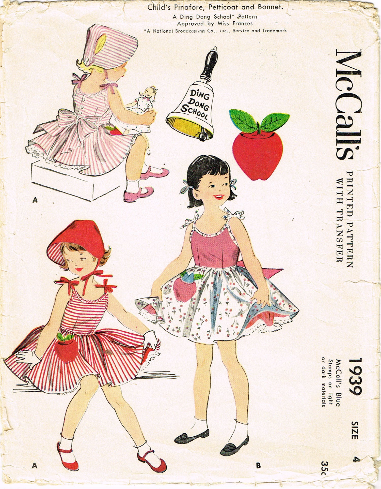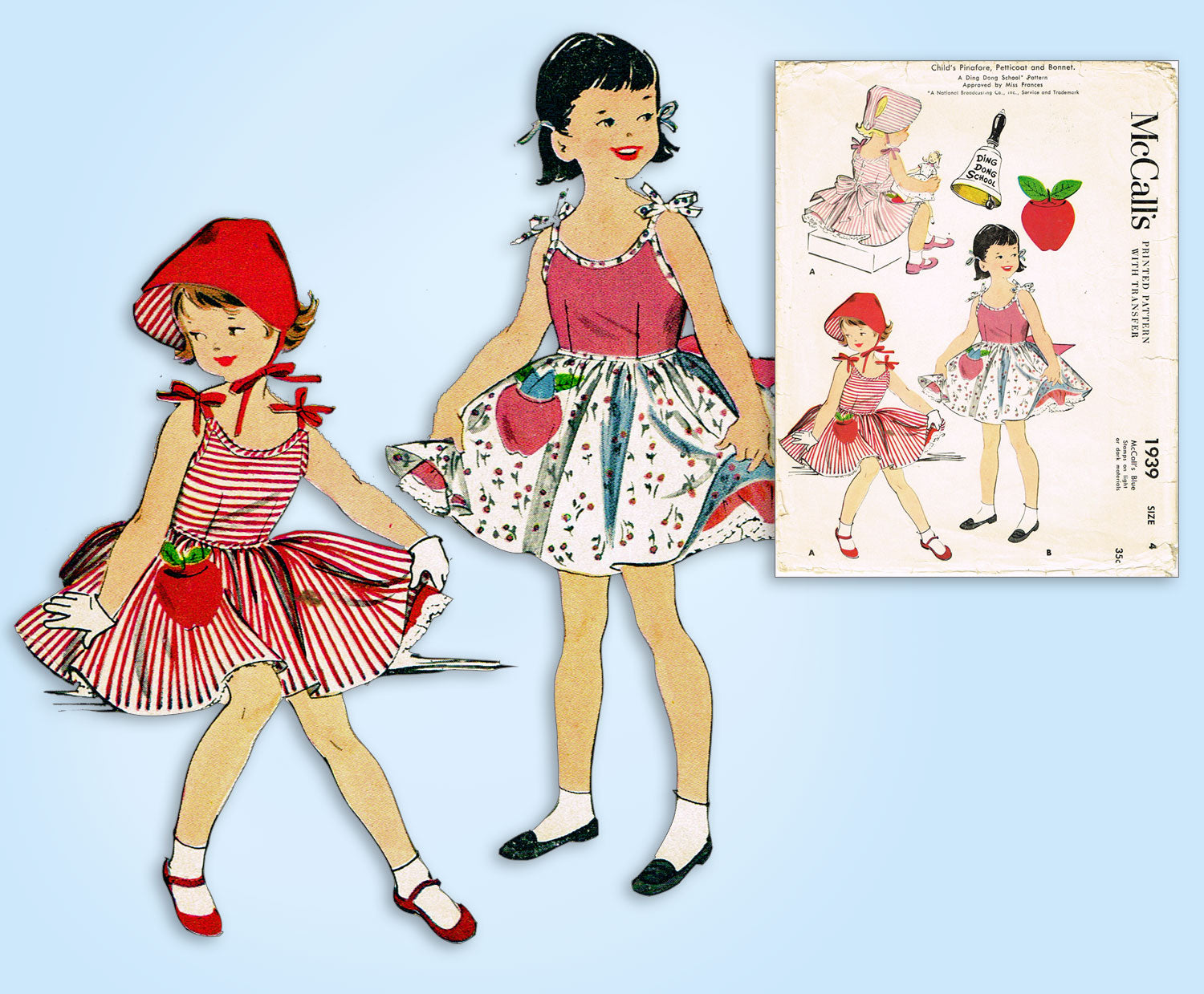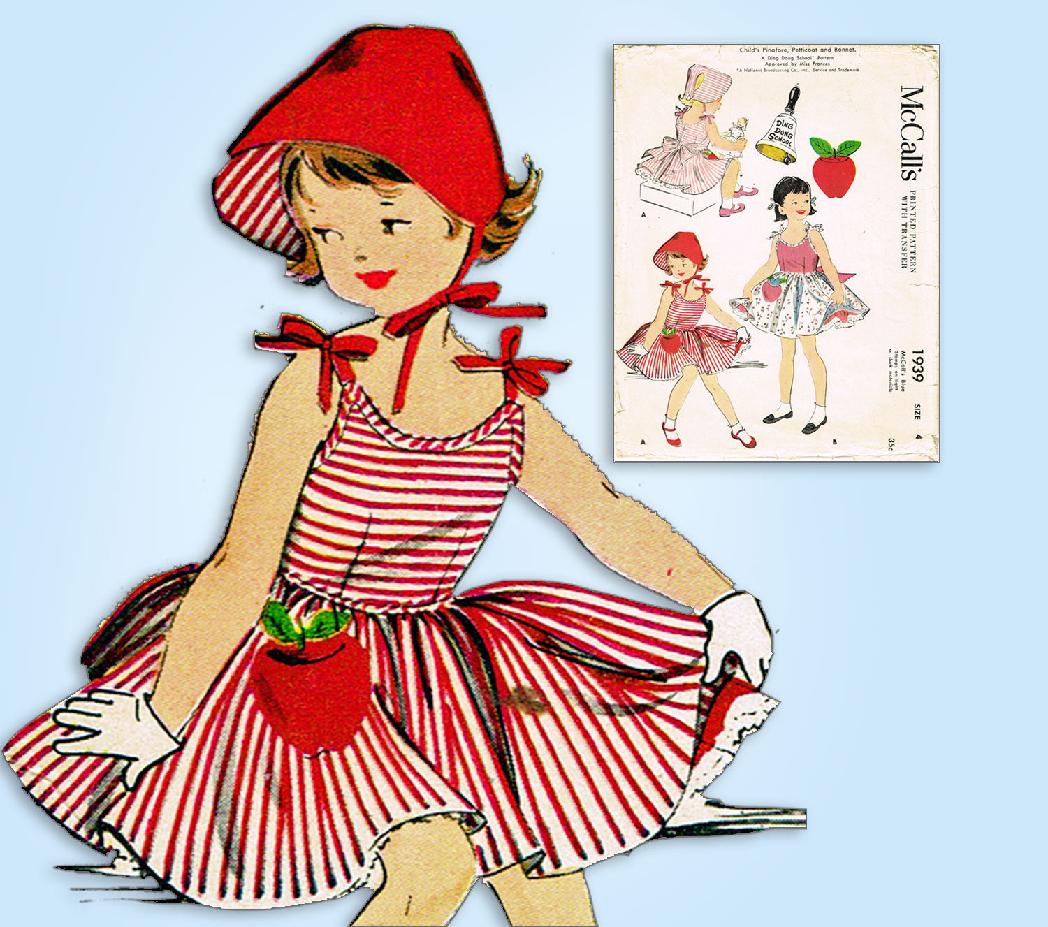 1950s Vintage McCalls Sewing Pattern 1939 Toddler Girls Ding Dong Sun Dress Sz4