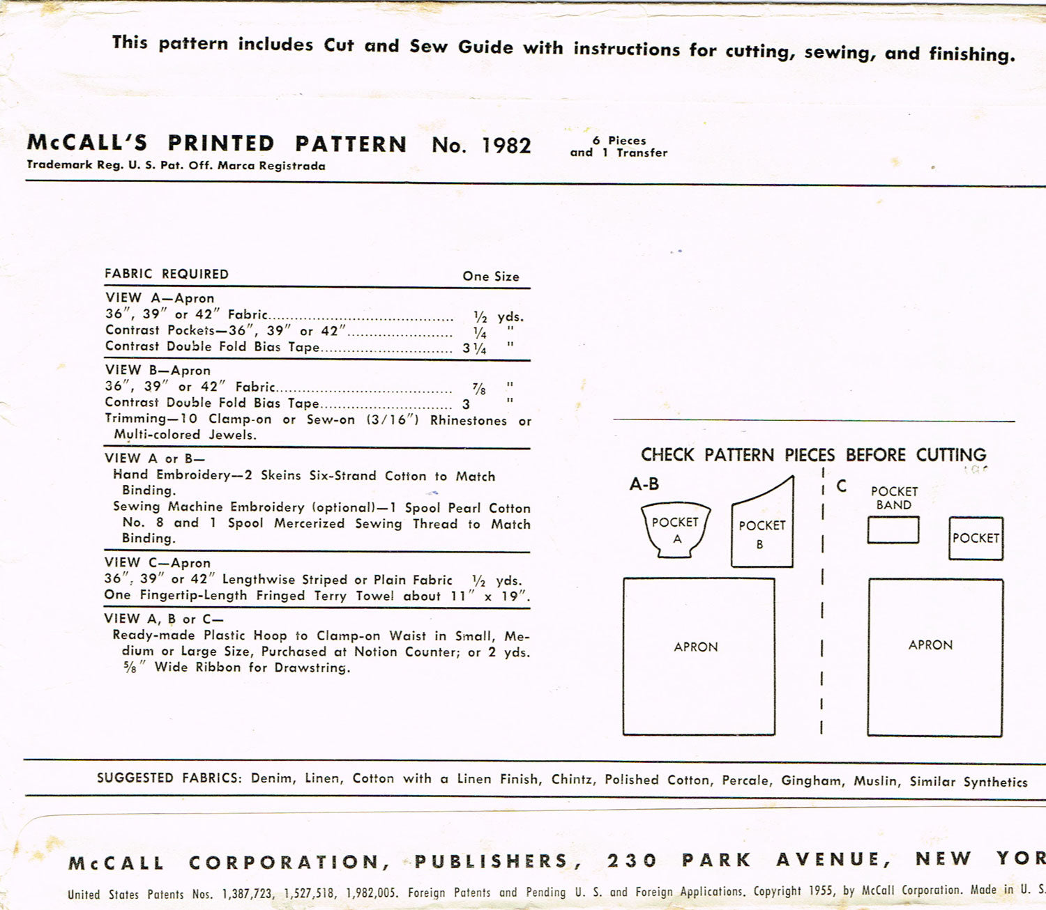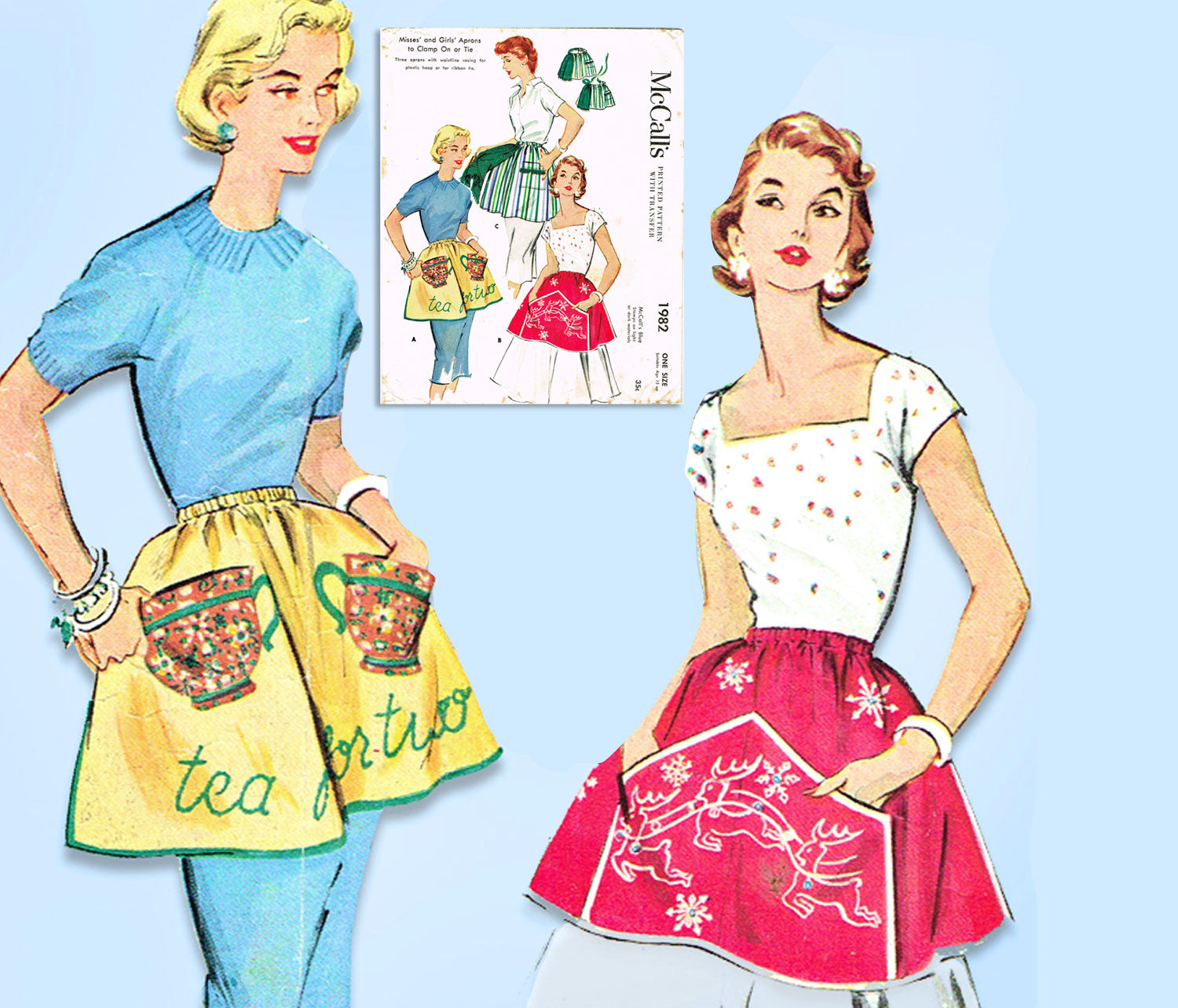 1950s Vintage McCalls Sewing Pattern 1982 Misses Clamp On Apron Set Fits All