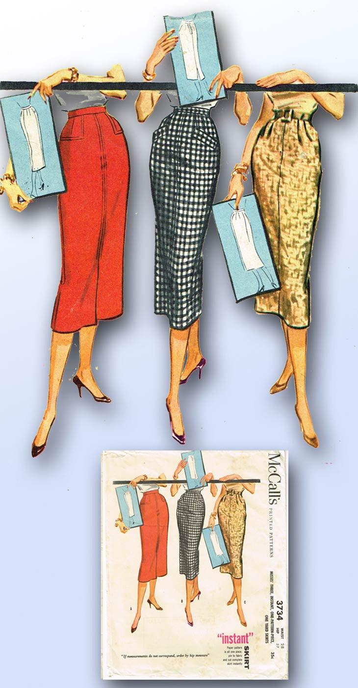 1950s Vintage McCalls Sewing Pattern 3734 Easy Misses Instant Skirt Sz 28 Waist