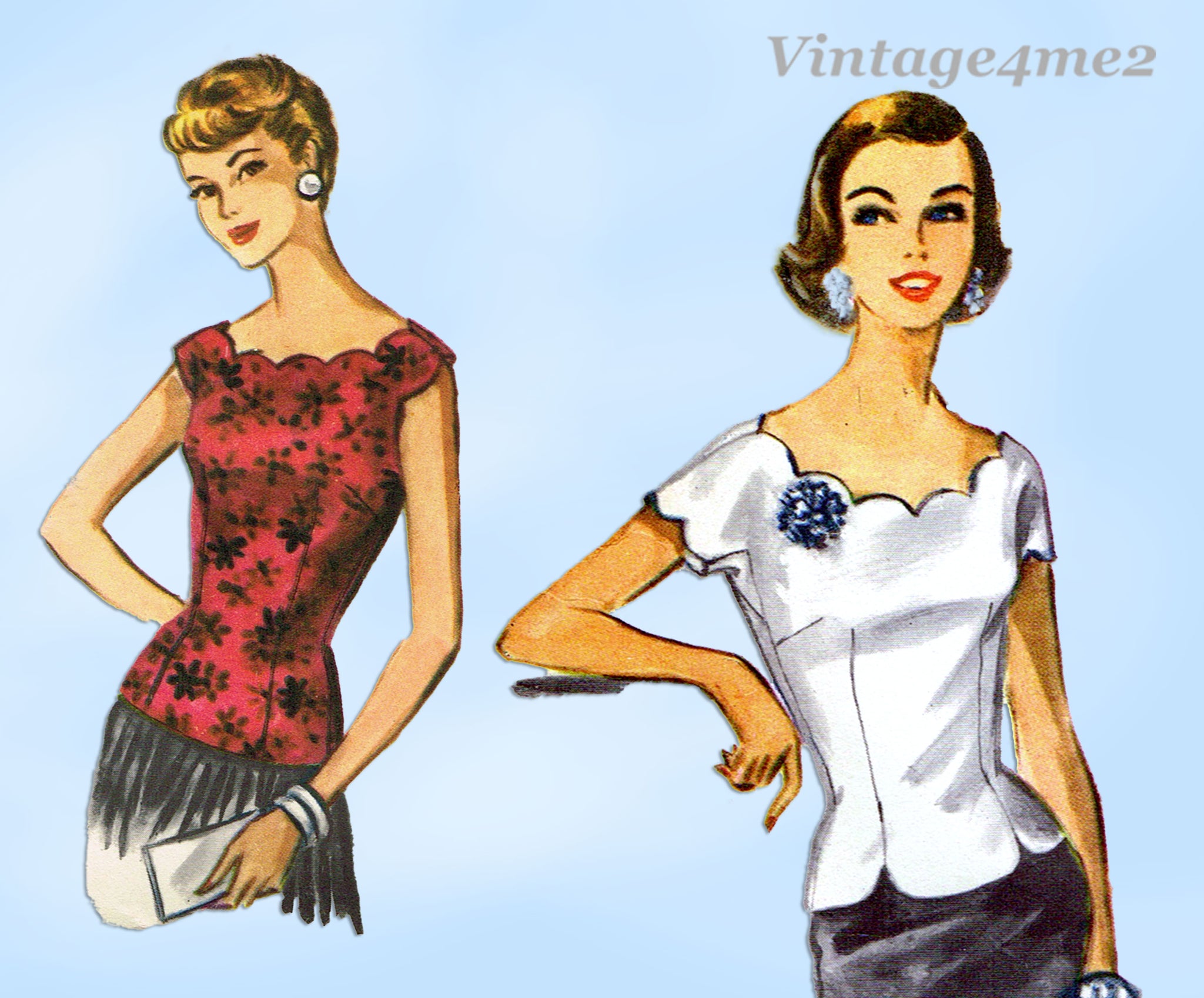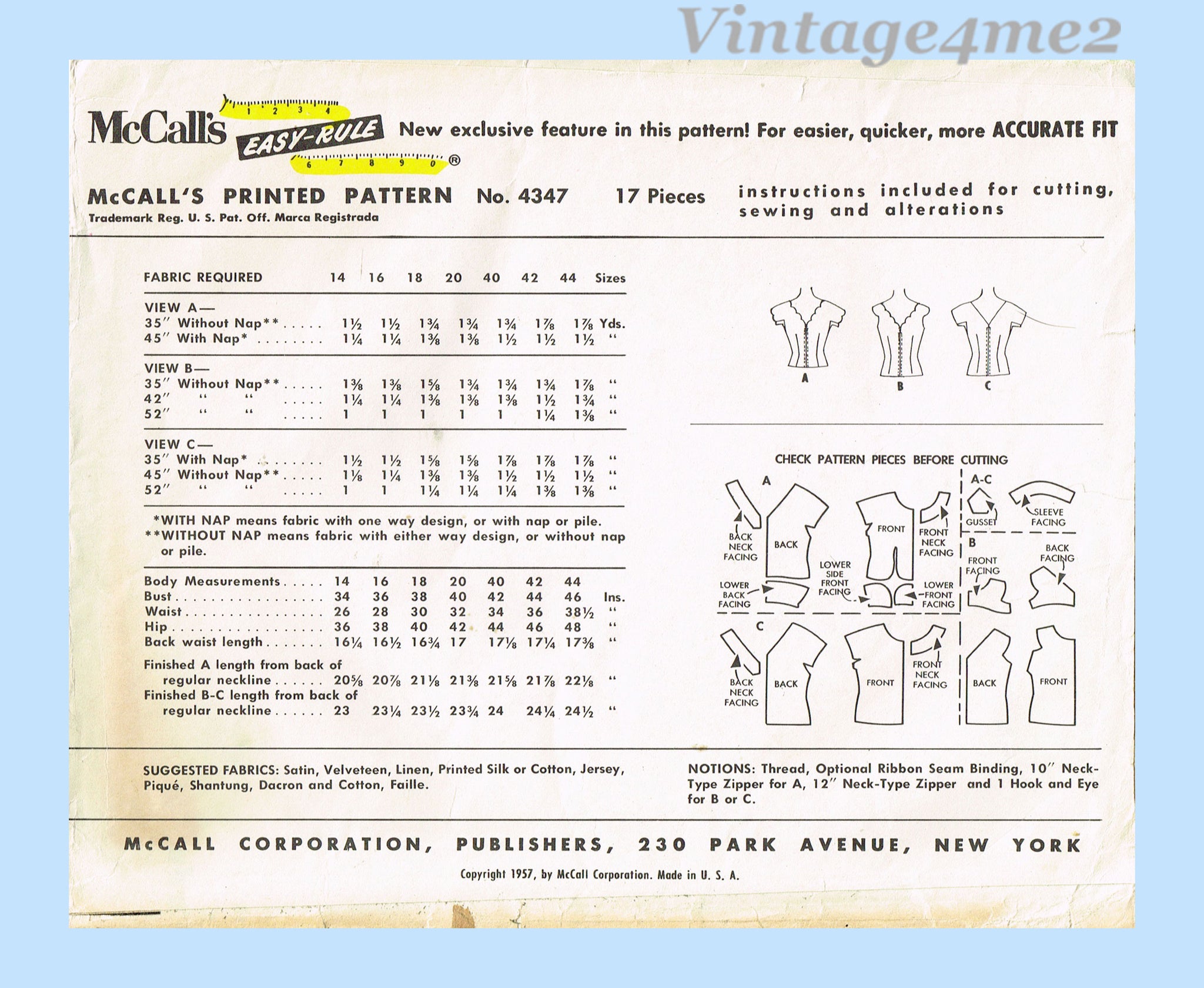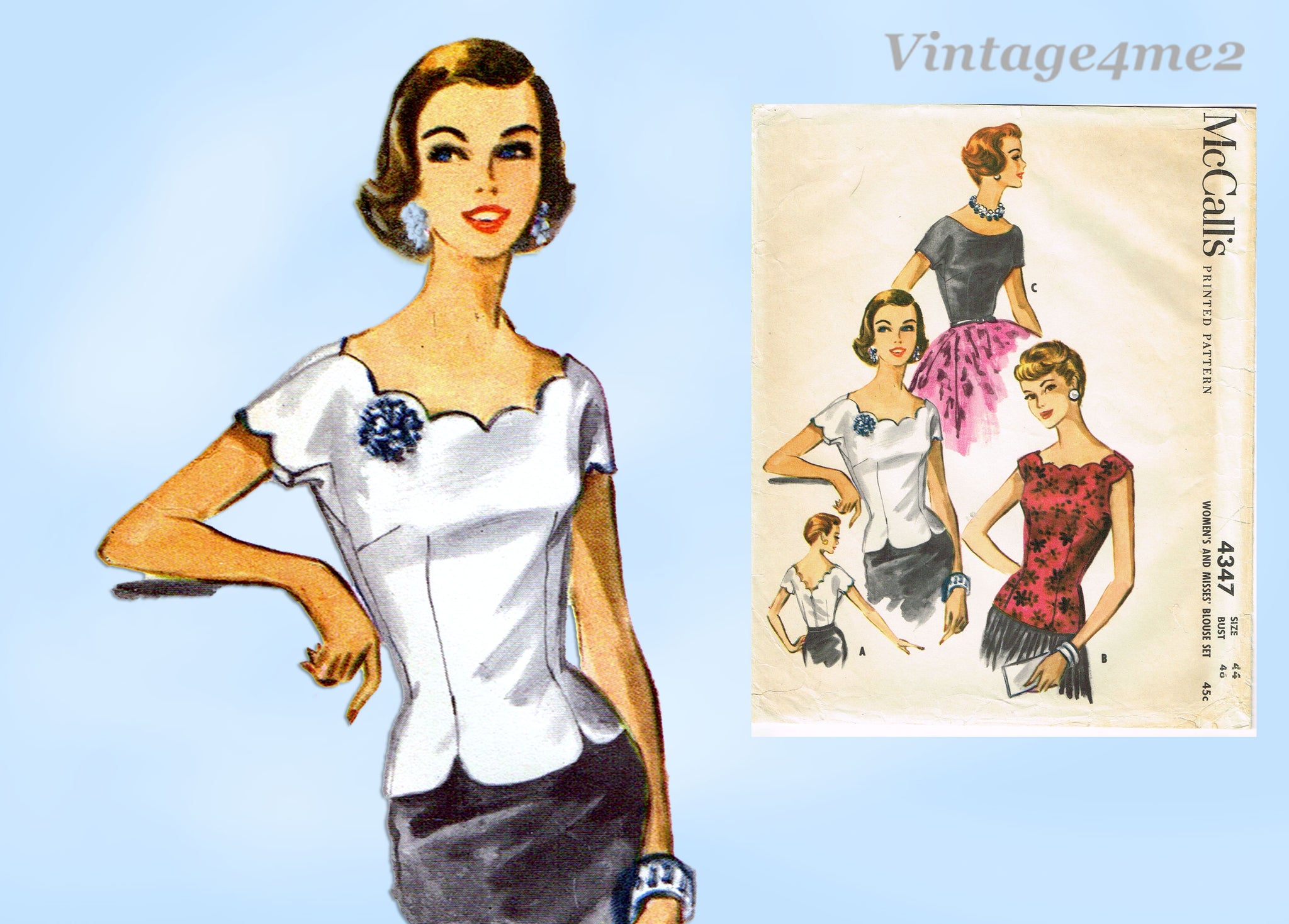 1950s Vintage McCalls Sewing Pattern 4347 Uncut Plus Size Ladies Blouse 46 Bust