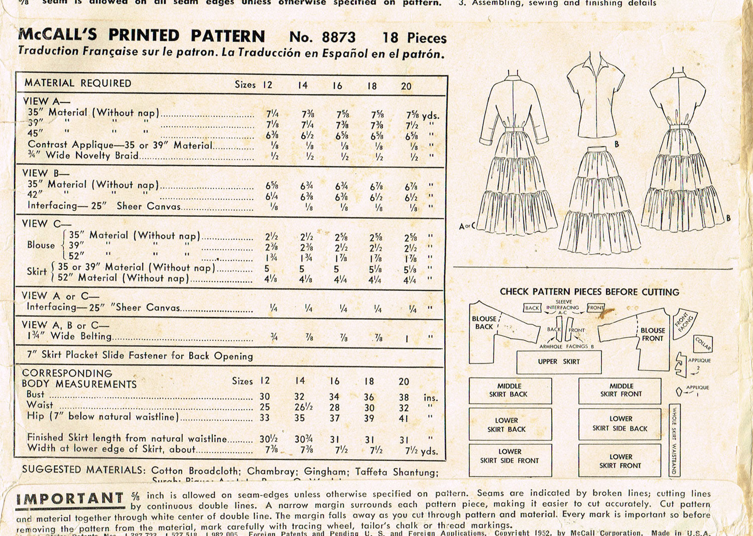 1950s Vintage McCalls Sewing Pattern 8873 Misses 2 PC Squaw Dress Sz 30 B