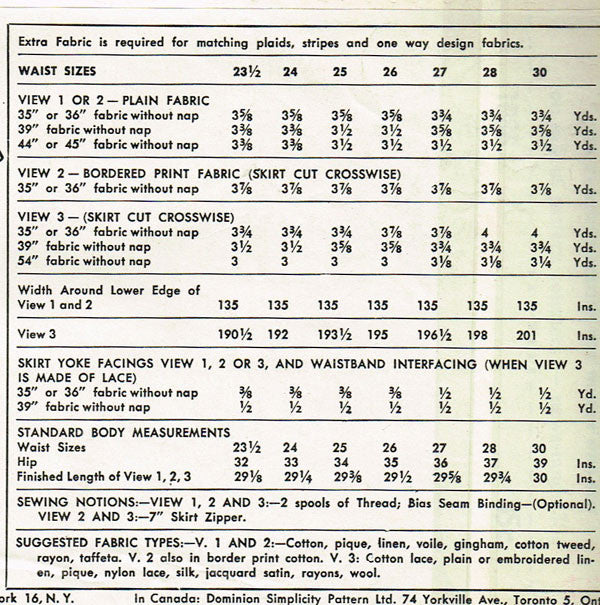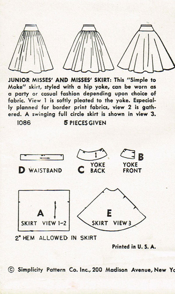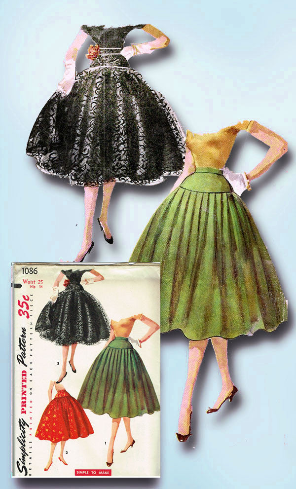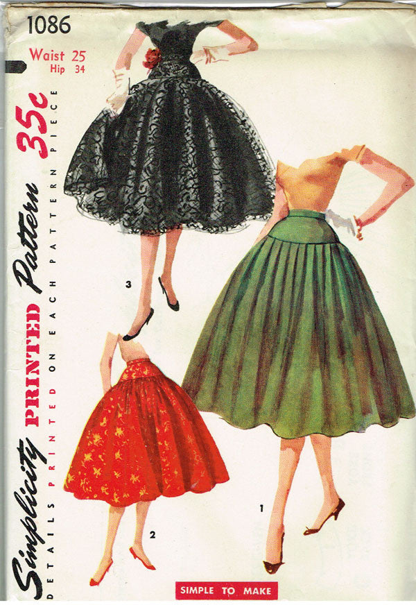 1950s Vintage Misses Simple Skirt Uncut 1955 Simplicity Sewing Pattern 1086 25W