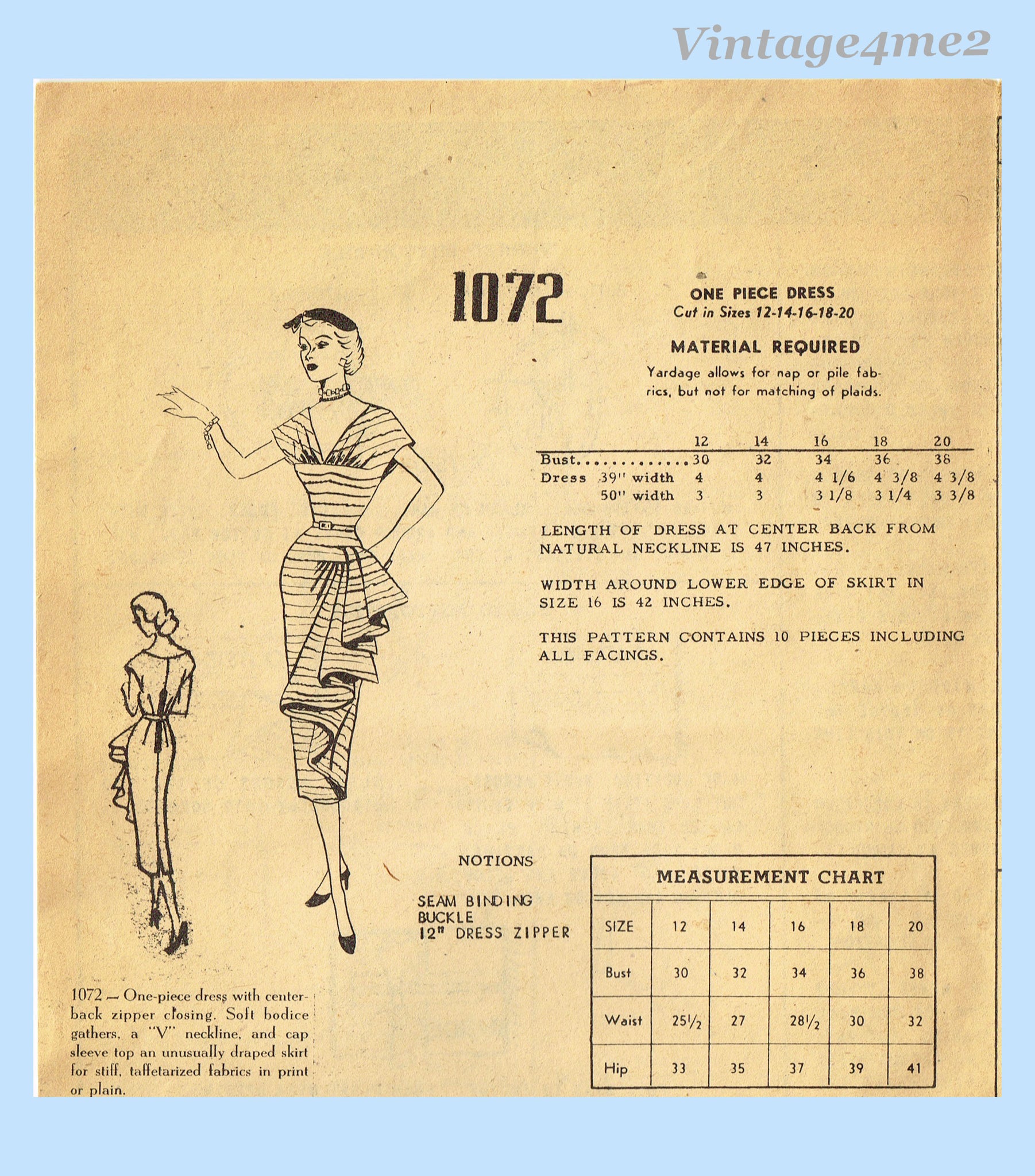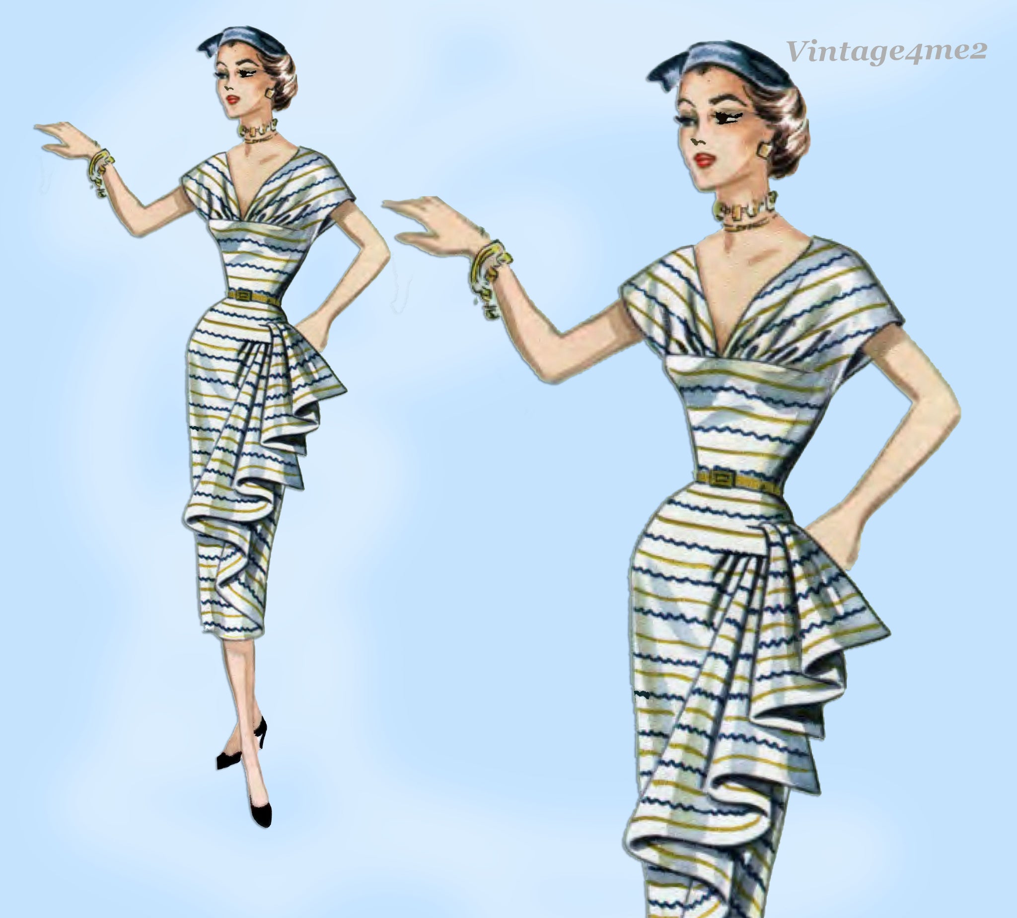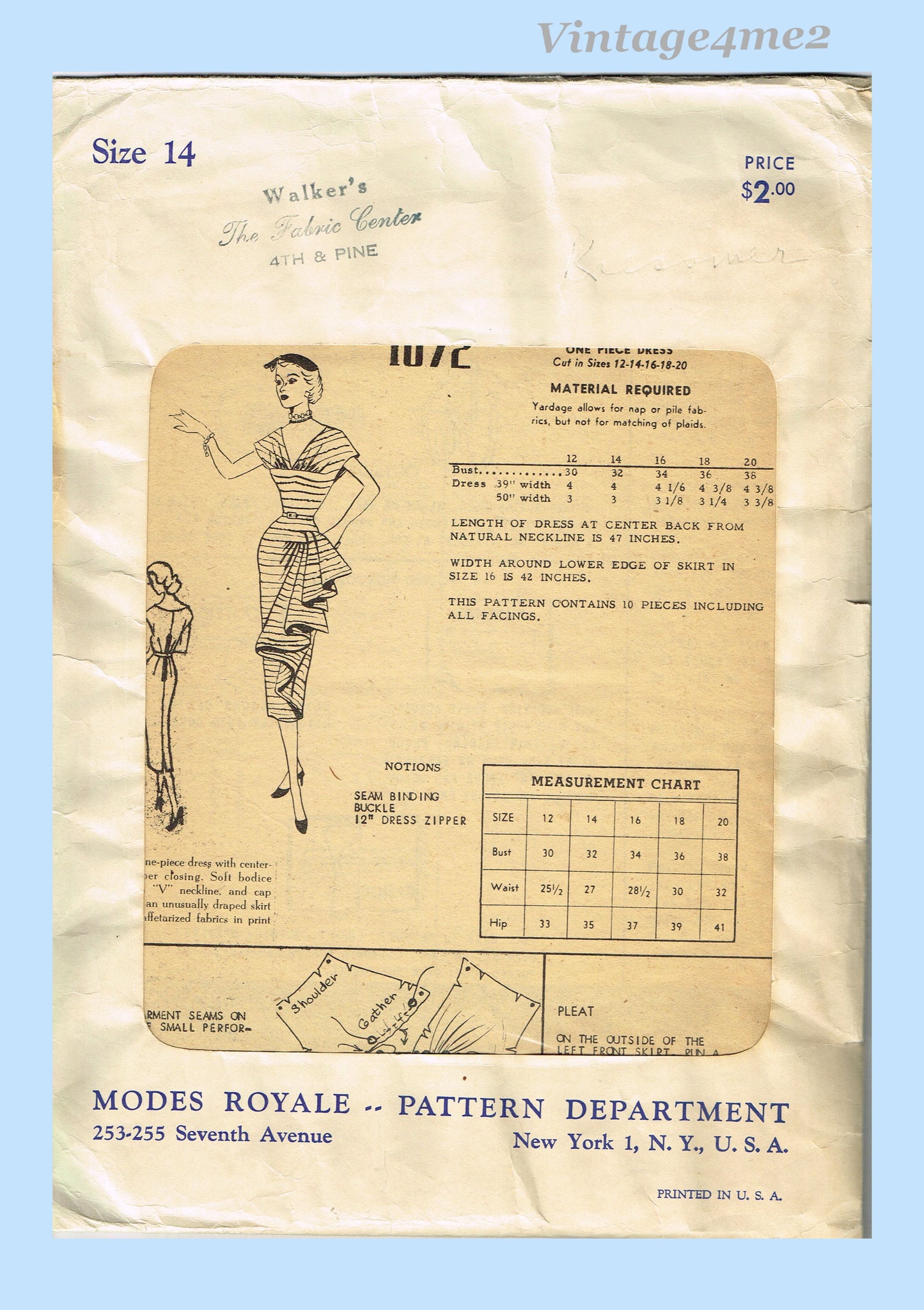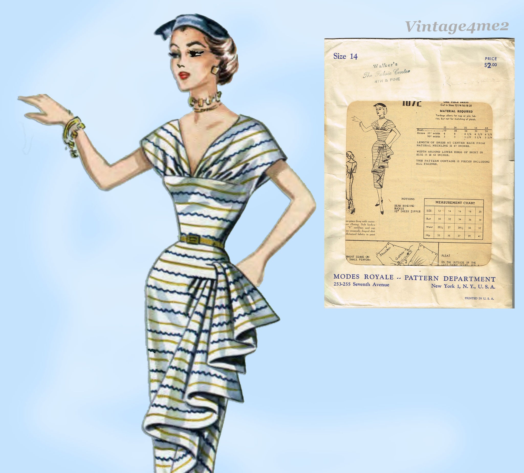 1950s Vintage Modes Royale Sewing Pattern 1072 Sexy Draped Panel Dress Sz 14