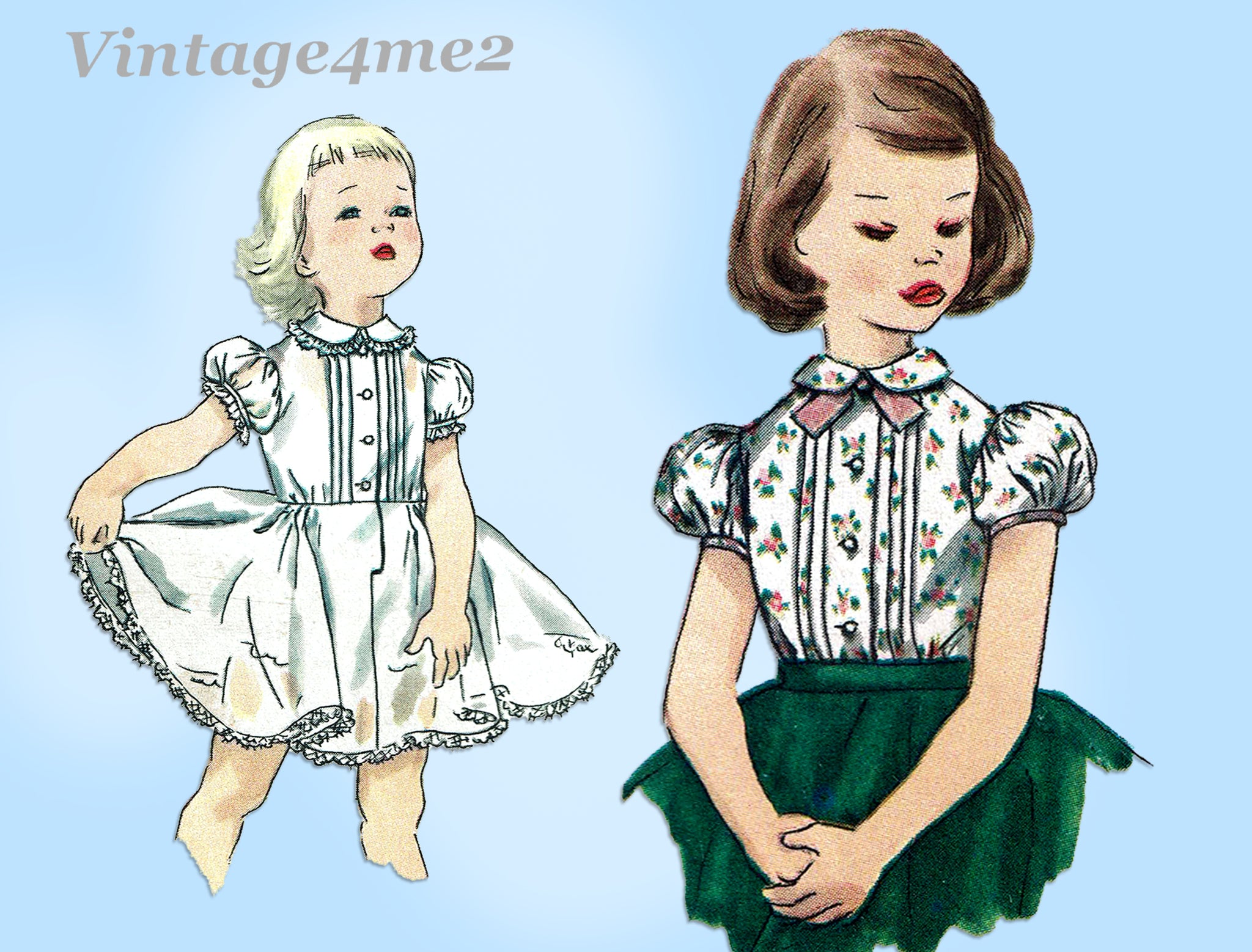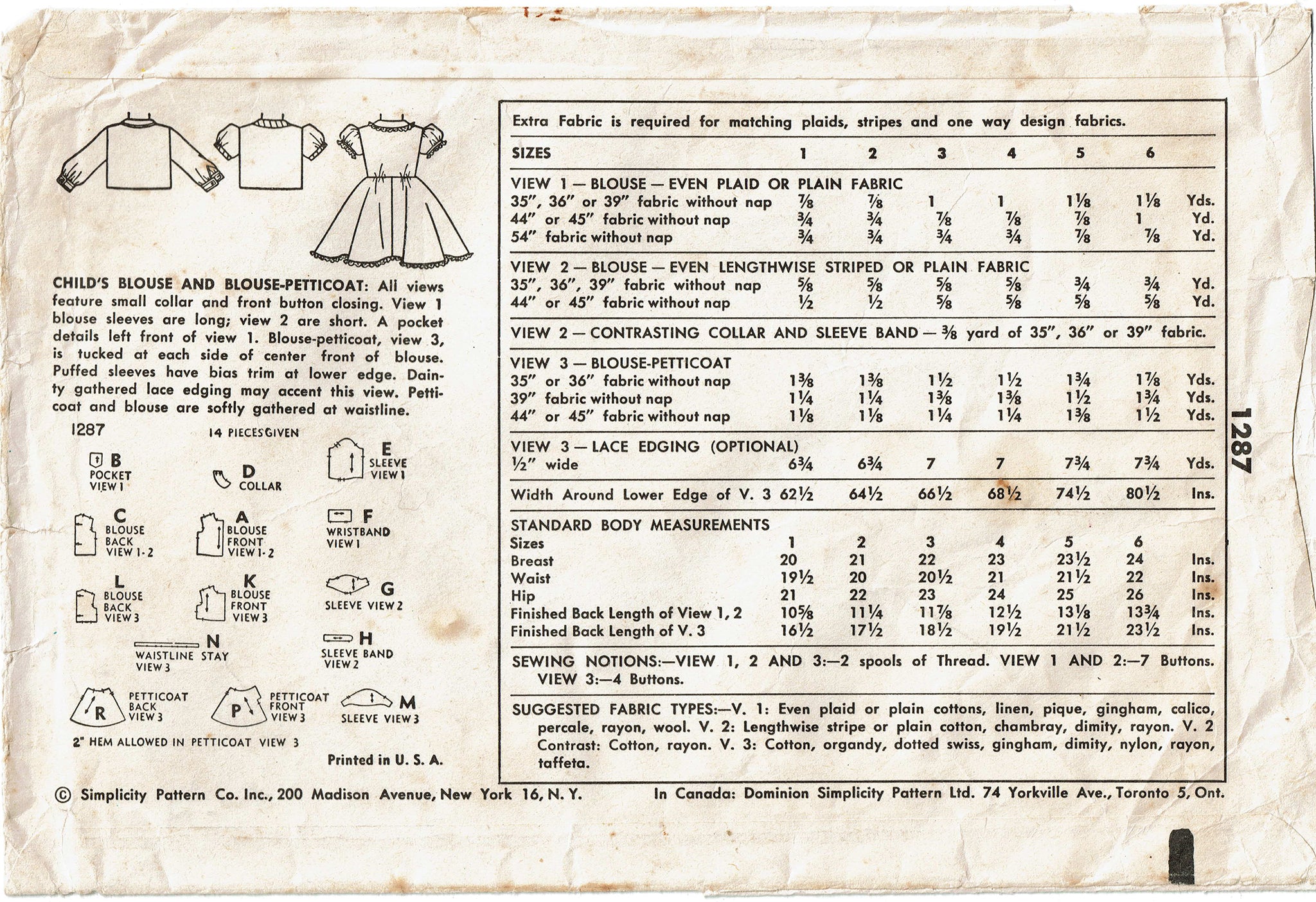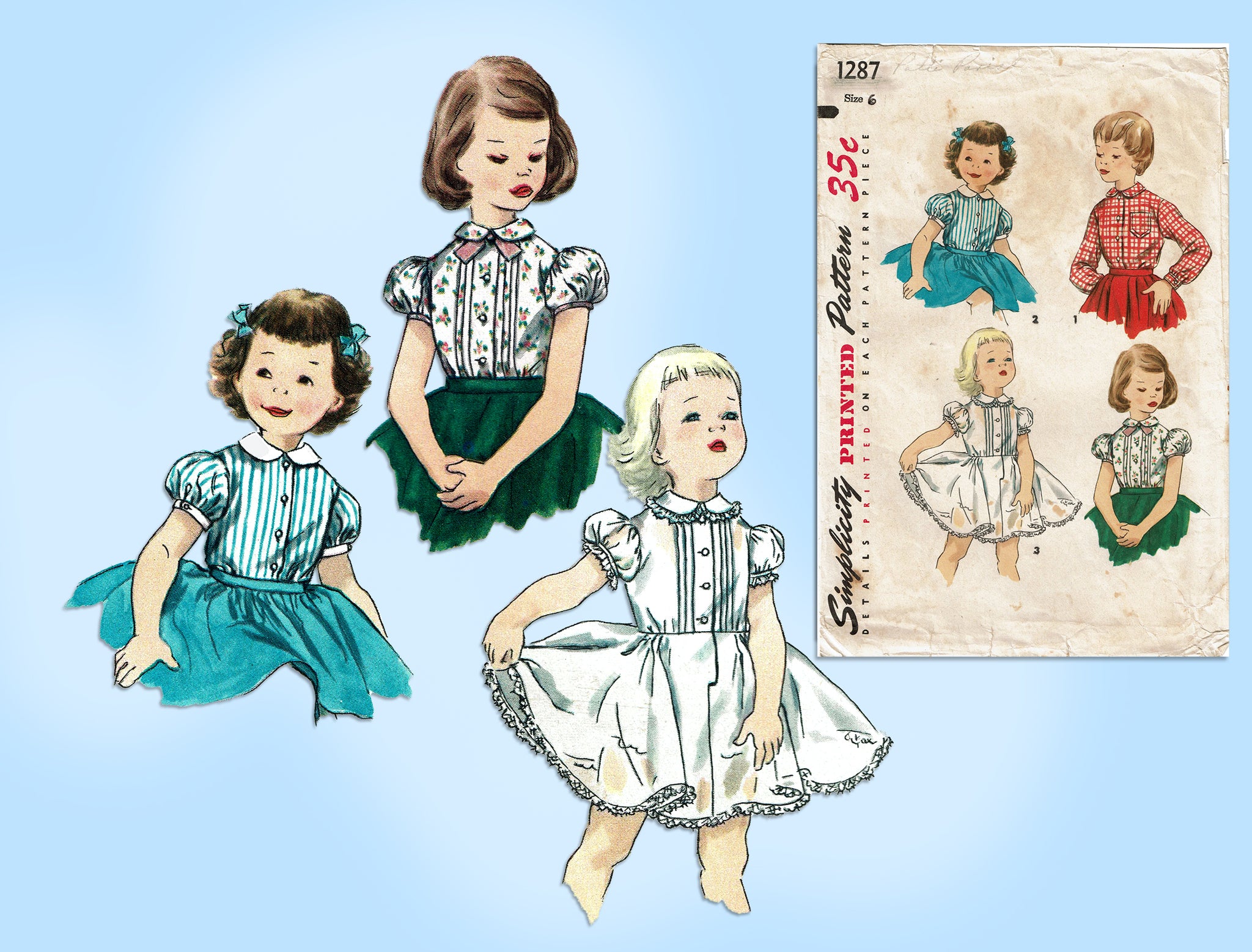 1950s Vintage Simplicity Sewing Pattern 1287 Cute Toddler Girls Petti Blouse Sz 6
