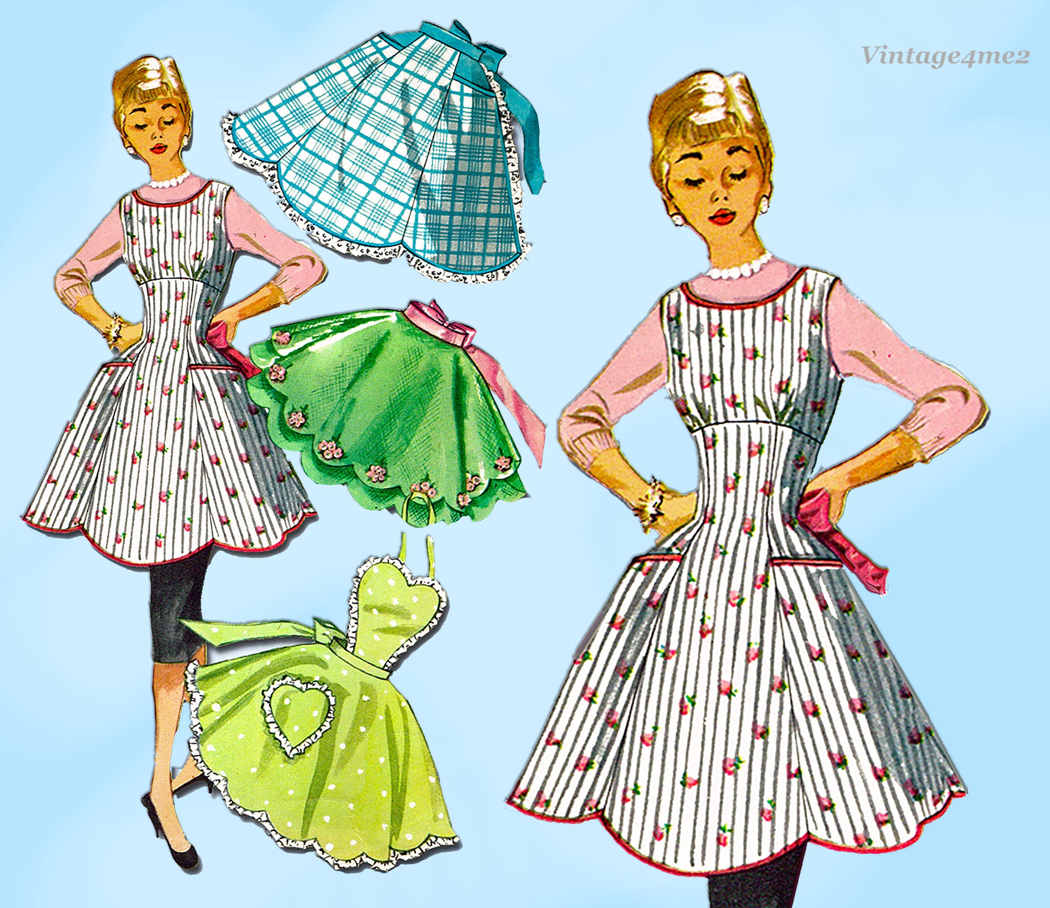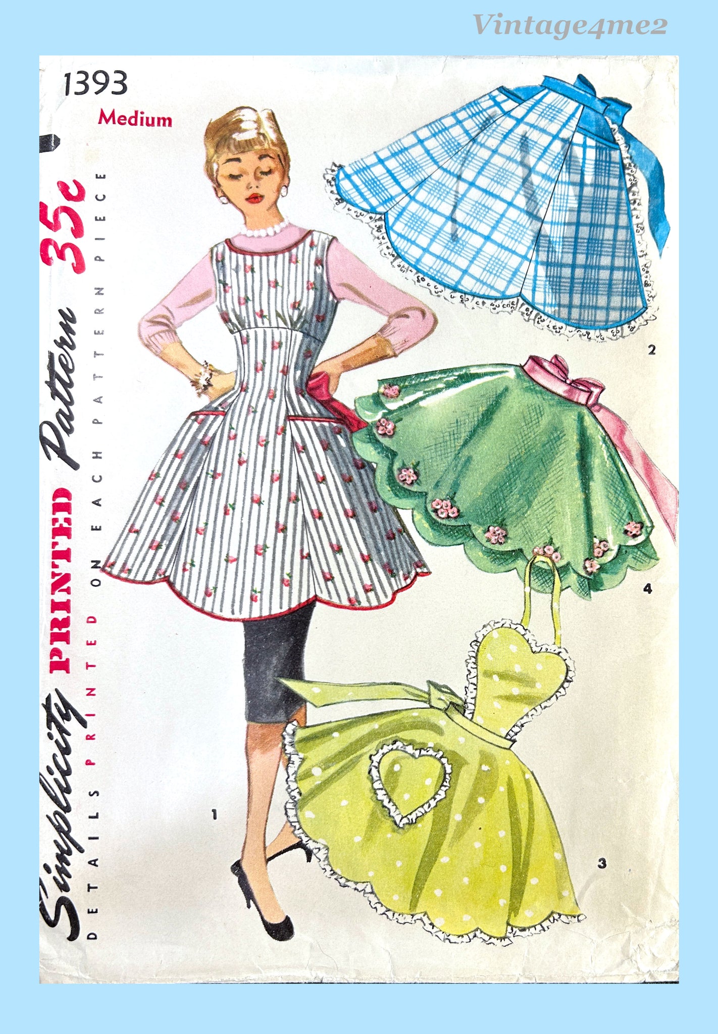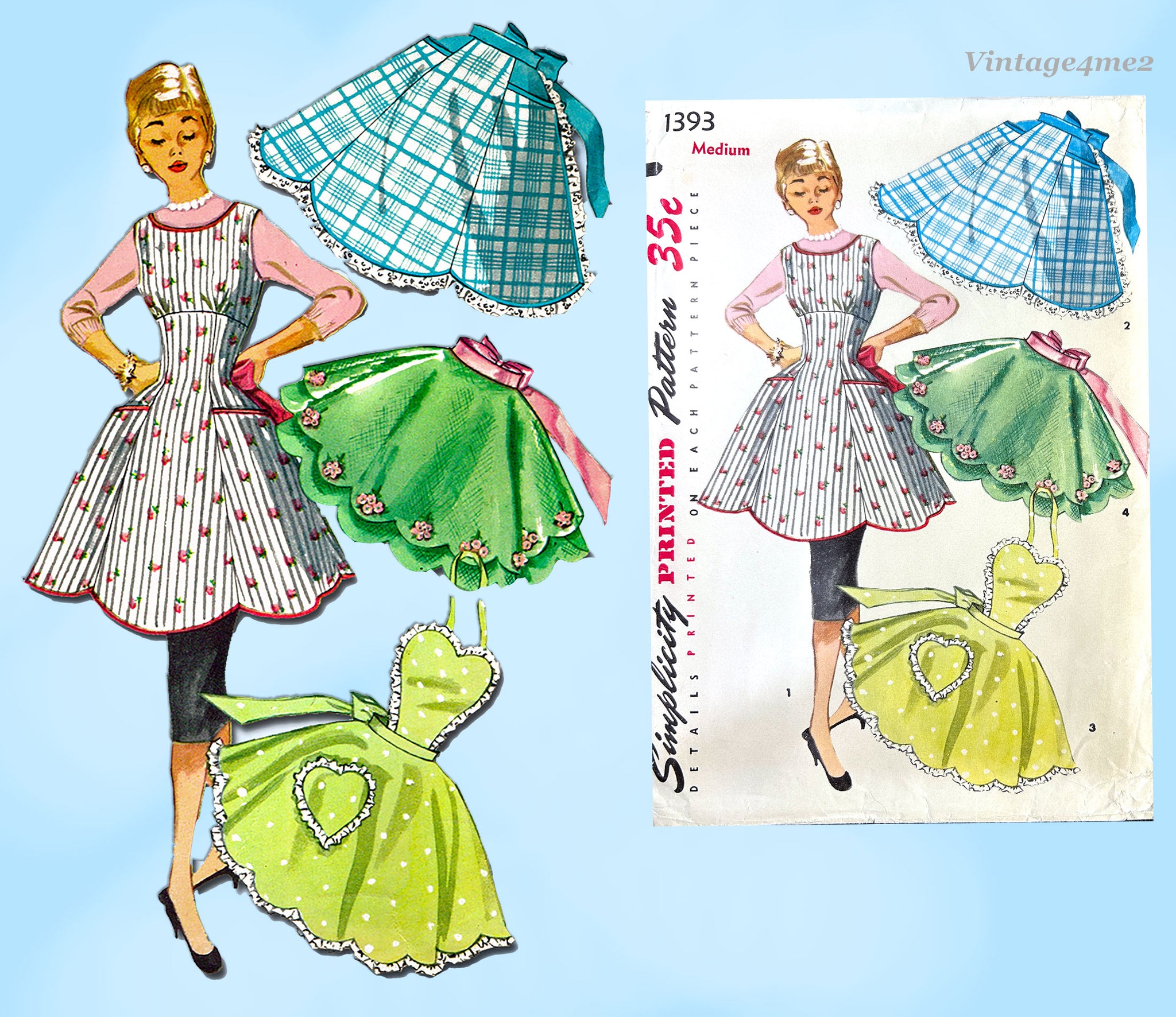 1950s Vintage Simplicity Sewing Pattern 1393 Misses Fitted Bib Apron Darling