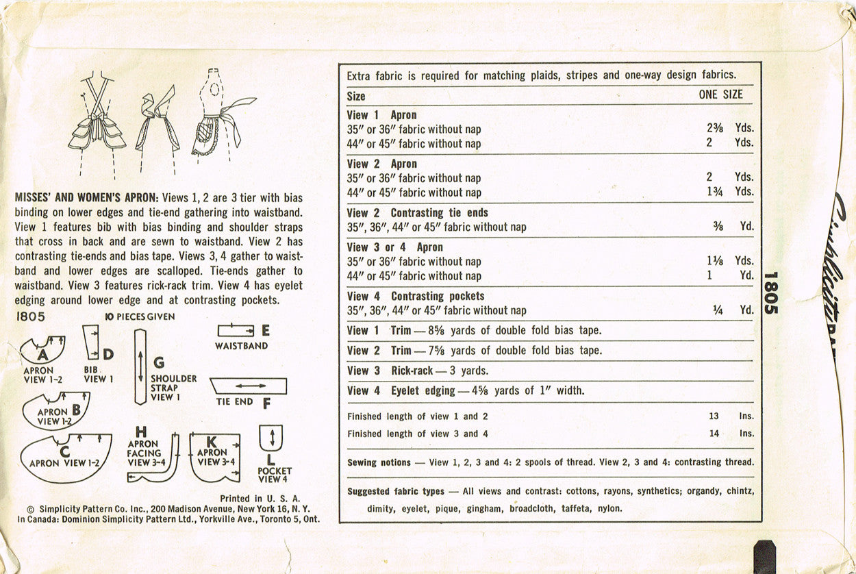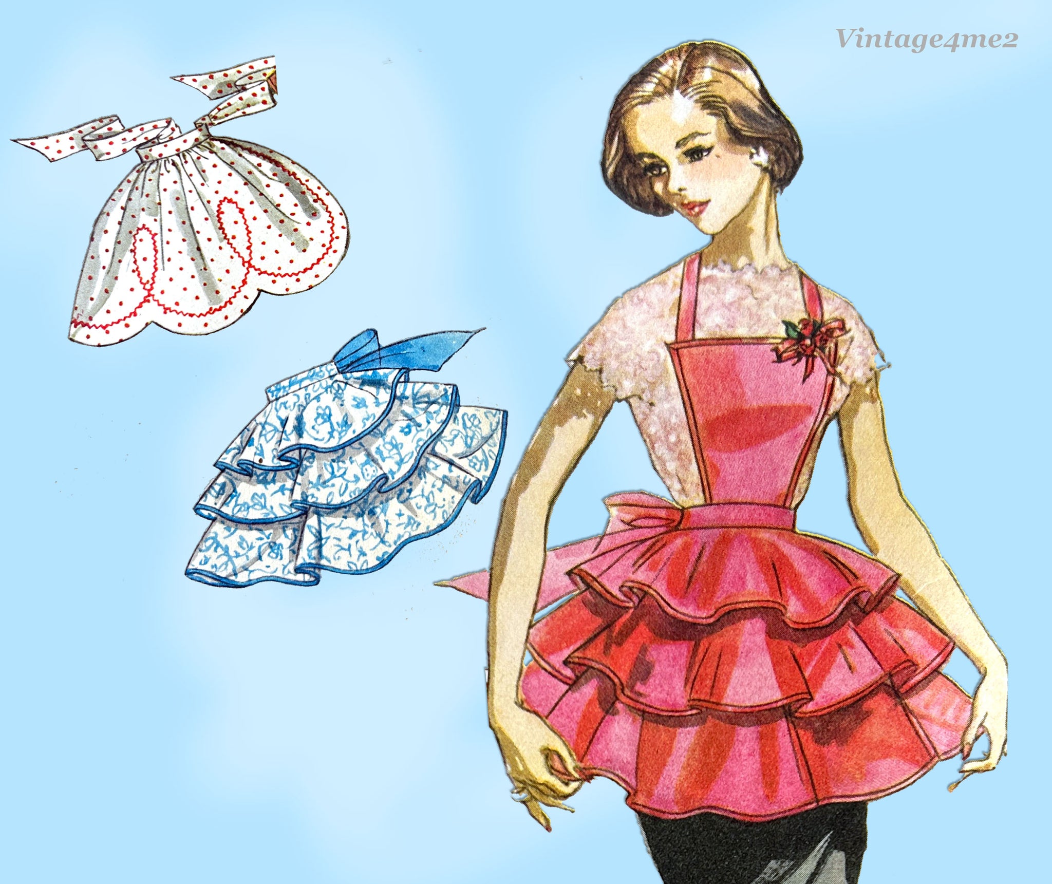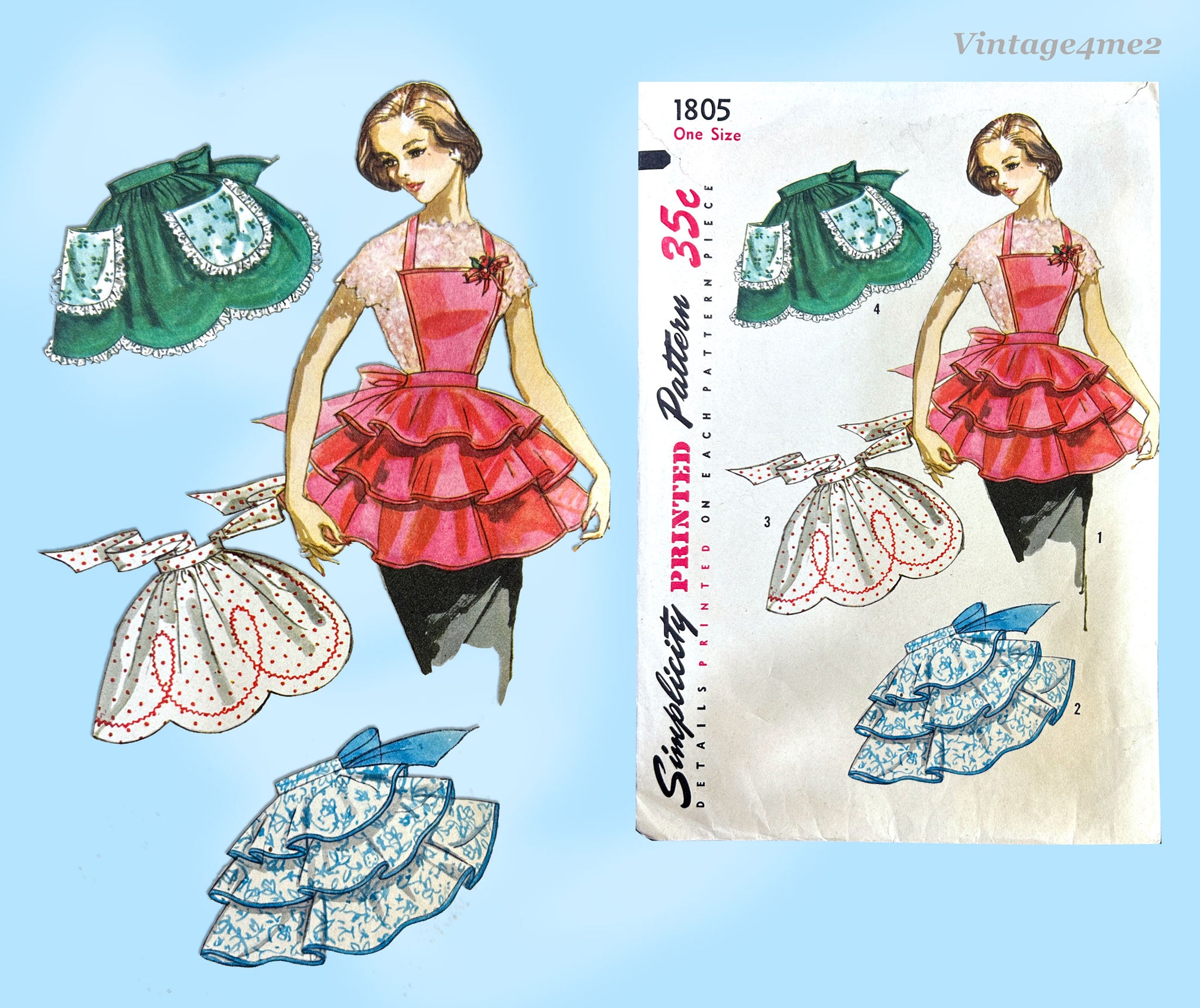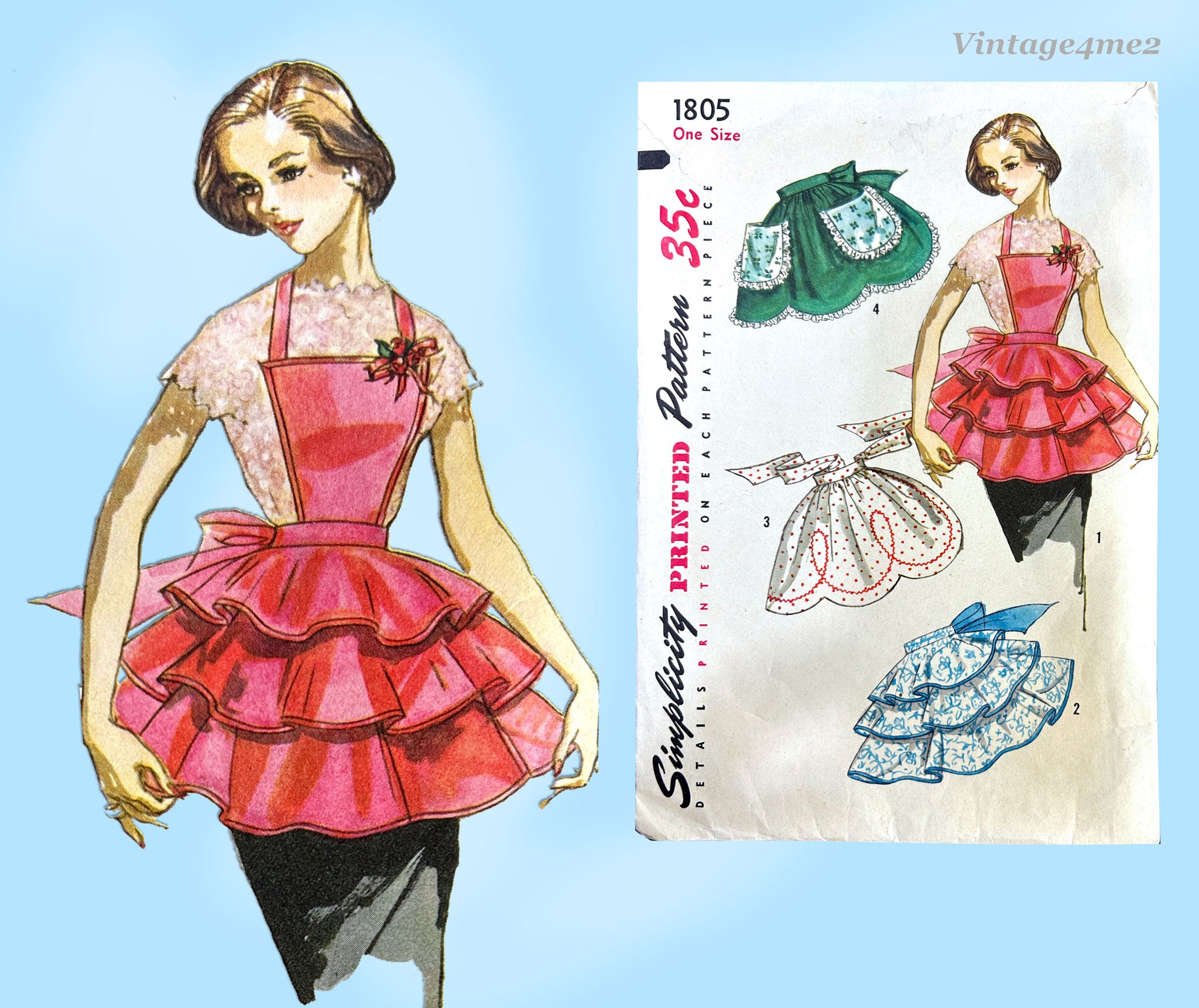 1950s Vintage Simplicity Sewing Pattern 1805 Misses Tiered Party Apron Fits All