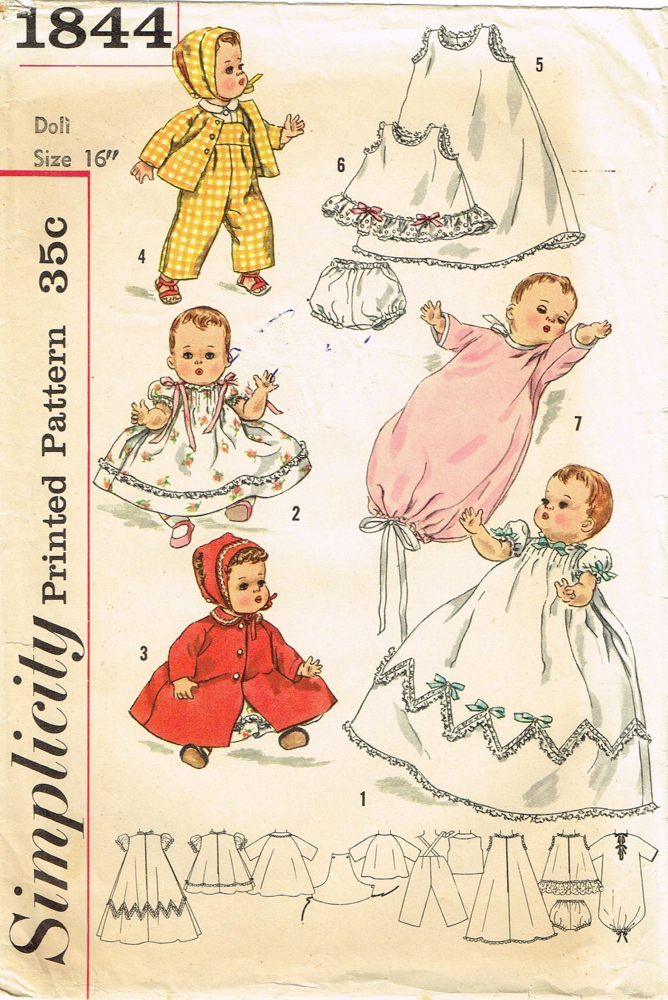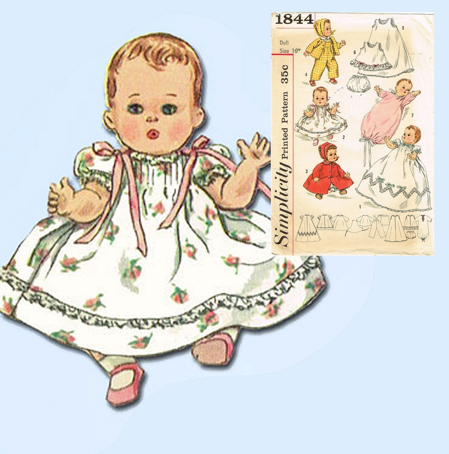 1950s Vintage Simplicity Sewing Pattern 1844 Tiny Tears 16 Inch Doll Clothes