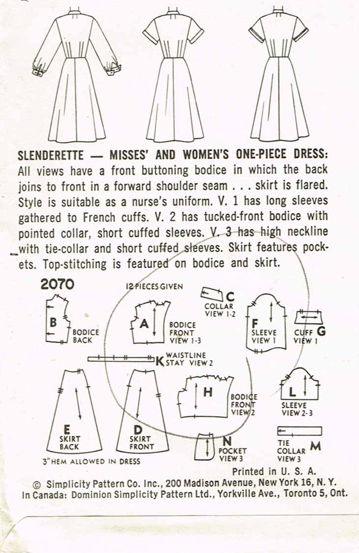 1950s Vintage Simplicity Sewing Pattern 2070 FF Misses Slenderette Dress Sz 12