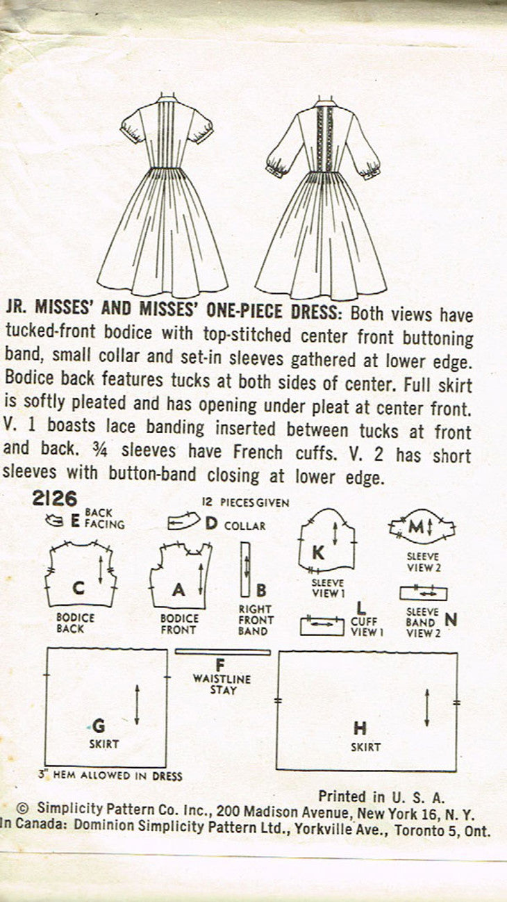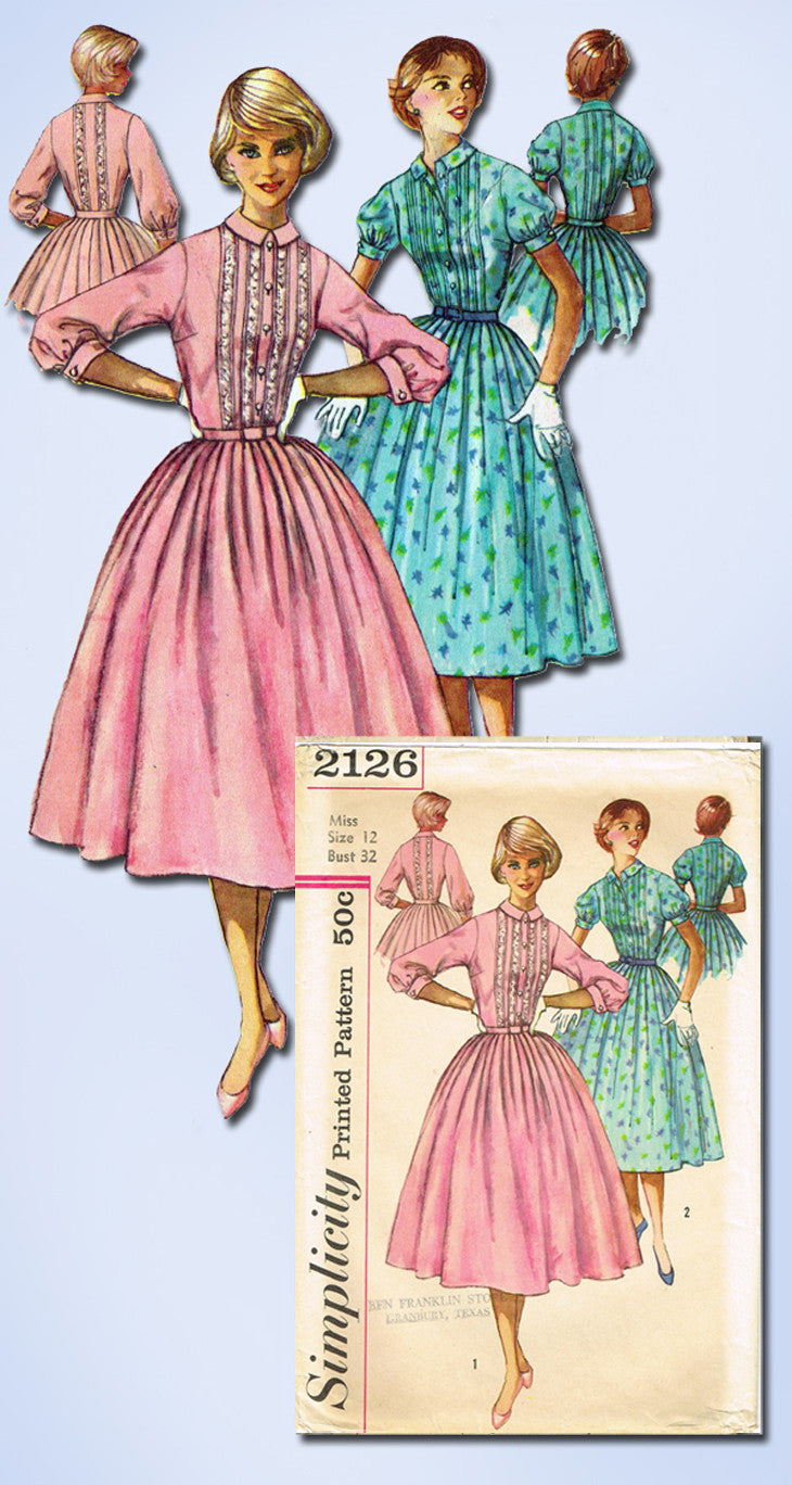 1950s Vintage Simplicity Sewing Pattern 2126 Uncut Misses Shirtwaist Dress Sz 32