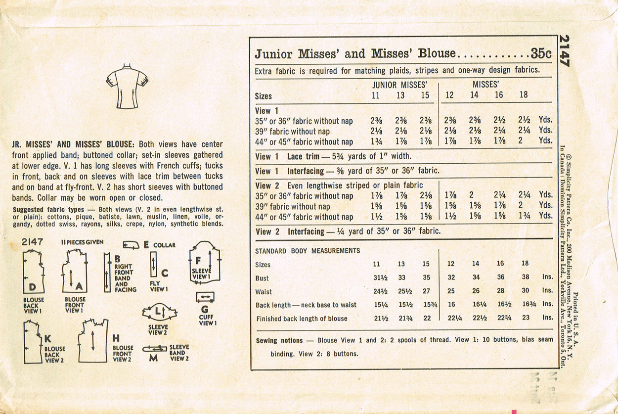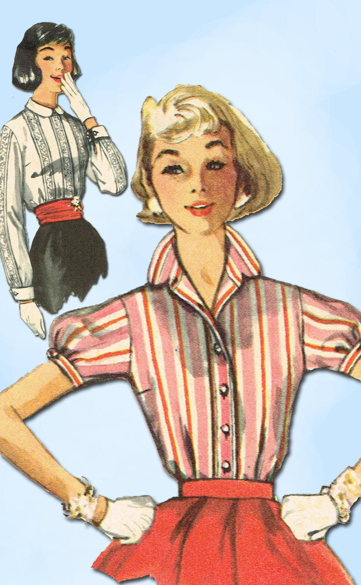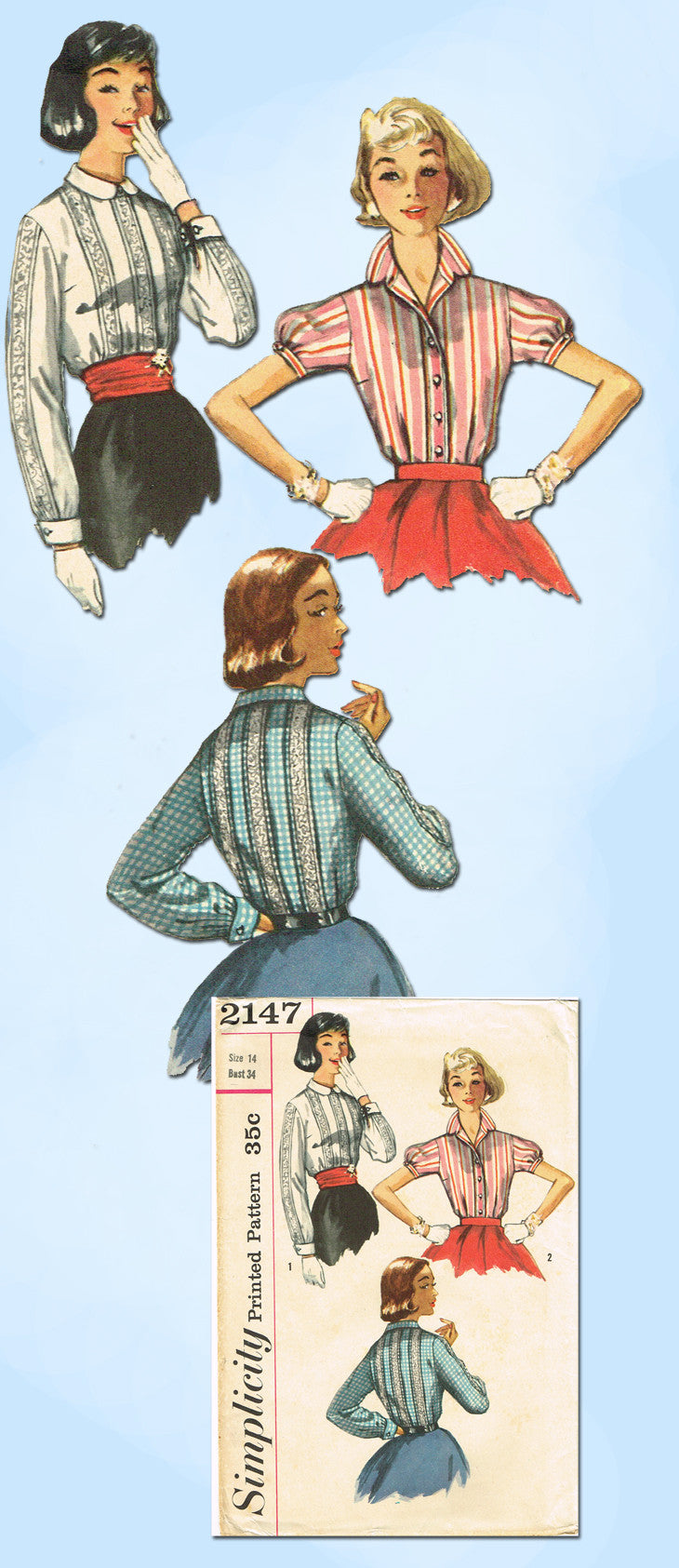 1950s Vintage Simplicity Sewing Pattern 2147 Uncut Misses Tucked Blouse Sz 34 B