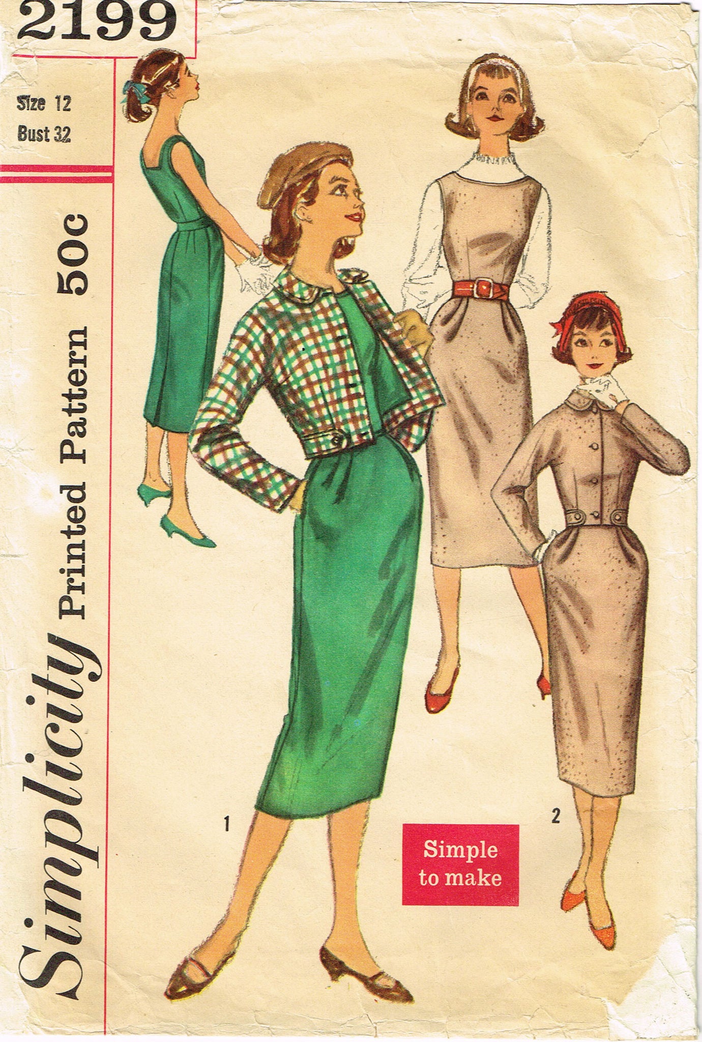 1950s Vintage Simplicity Sewing Pattern 2199 Uncut Misses Dress & Jacket Sz 32 B