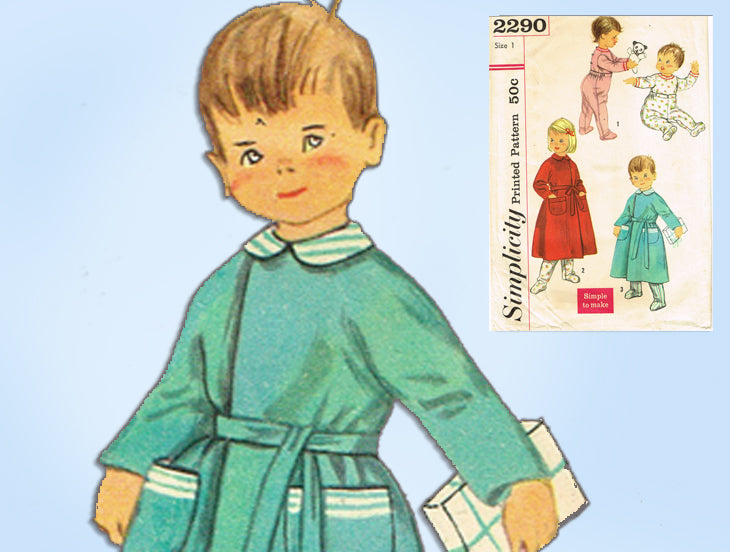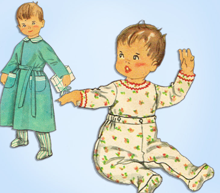 1950s Vintage Simplicity Sewing Pattern 2290 Easy Baby Girls Pajamas & Robe Sz 1